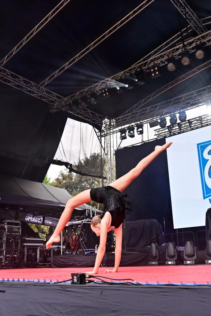 Prawdziwe akrobatyczne show zaprezentowały podopieczne Stowarzyszenia na Rzecz Społeczności Lokalnej Regionalni: występy solo wykonały Alicja, Oliwia i Ewa, a następnie grupa dziewczynek zaprezentowała figury o różnym stopniu trudności.