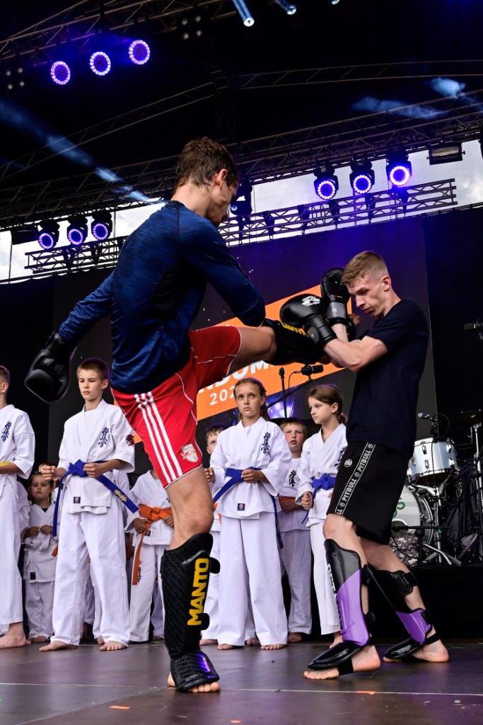 Następnie odbył się pokaz w wykonaniu karateków z Klubu Karate ,,Trójka” Sandomierz pod kierunkiem sensei Tomasza Ciżyńskiego – publiczność mogła podziwiać nie tylko dynamikę i precyzję ciosów, ale też dyscyplinę i skupienie.