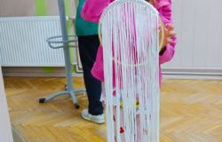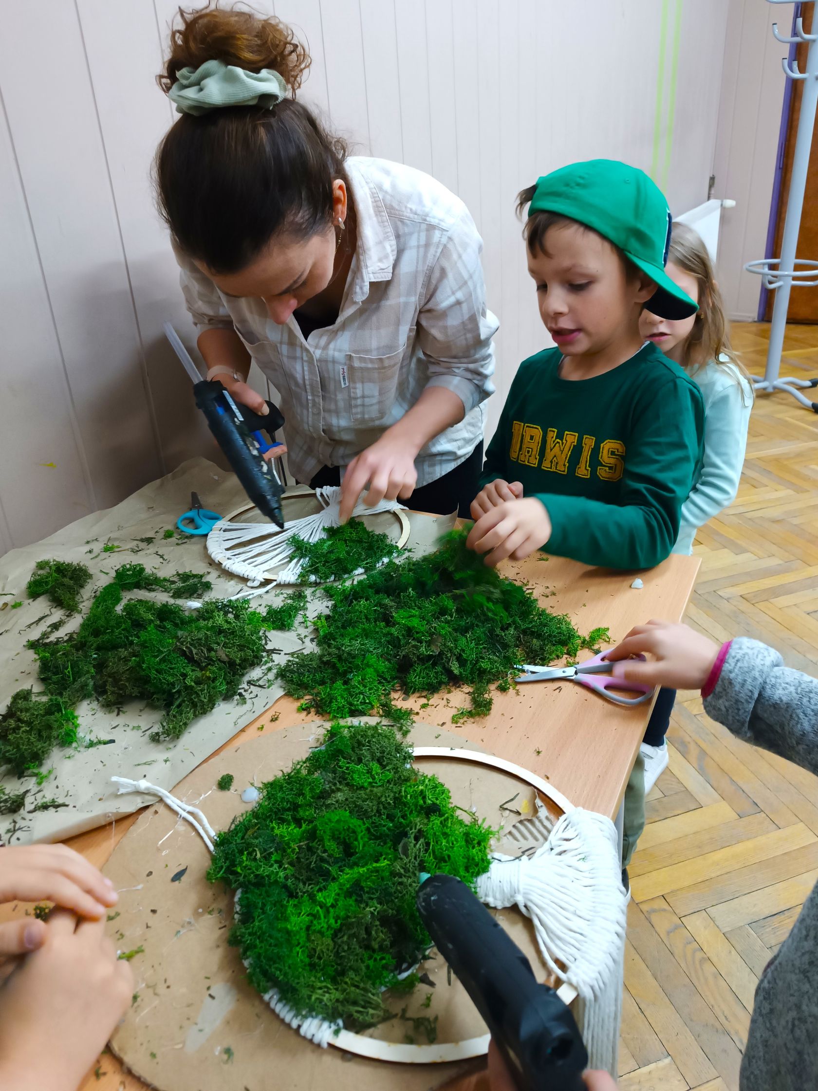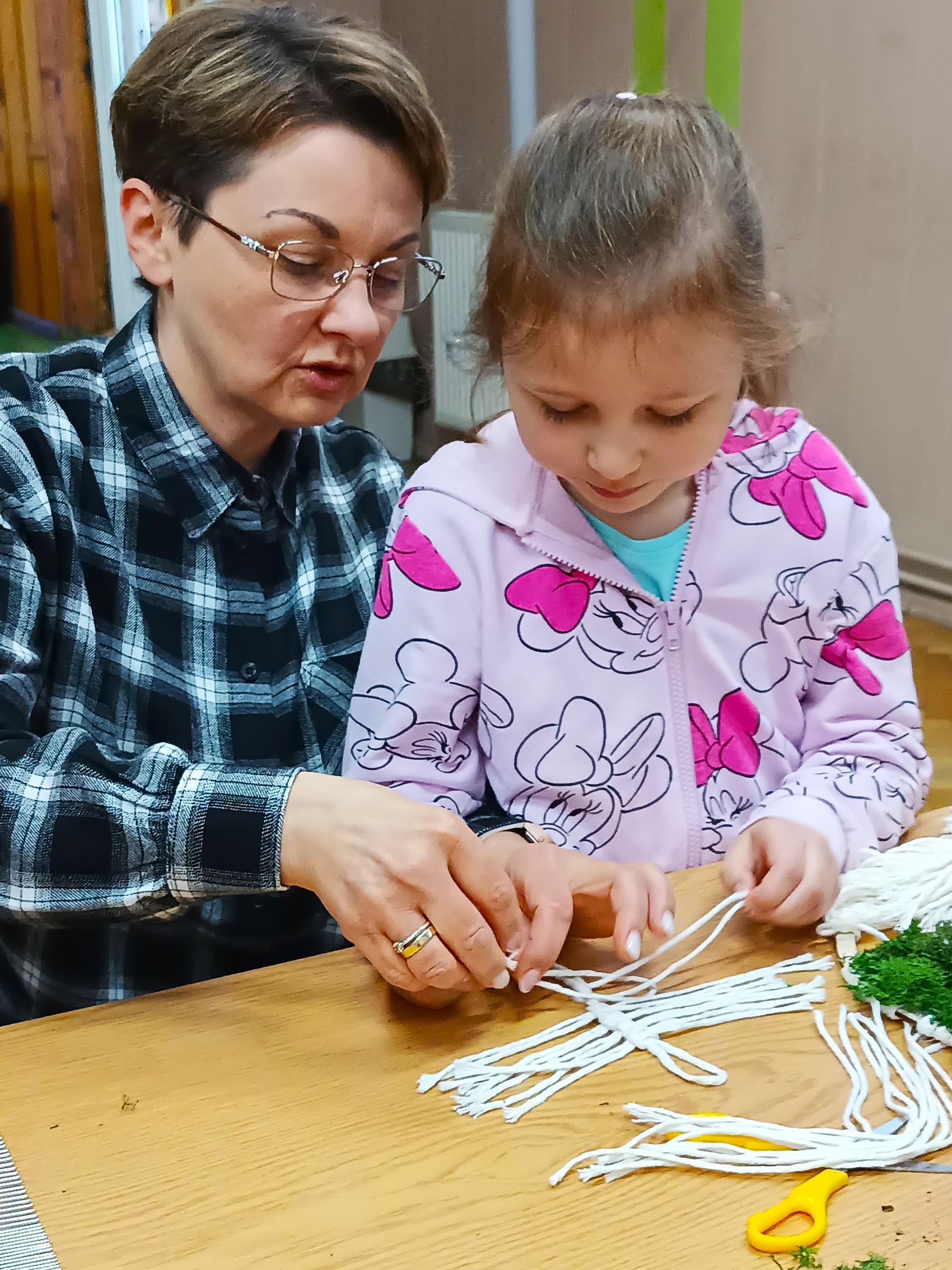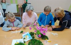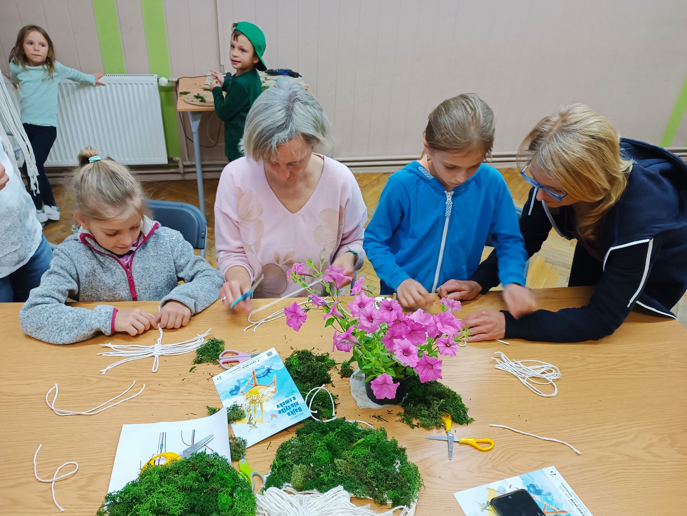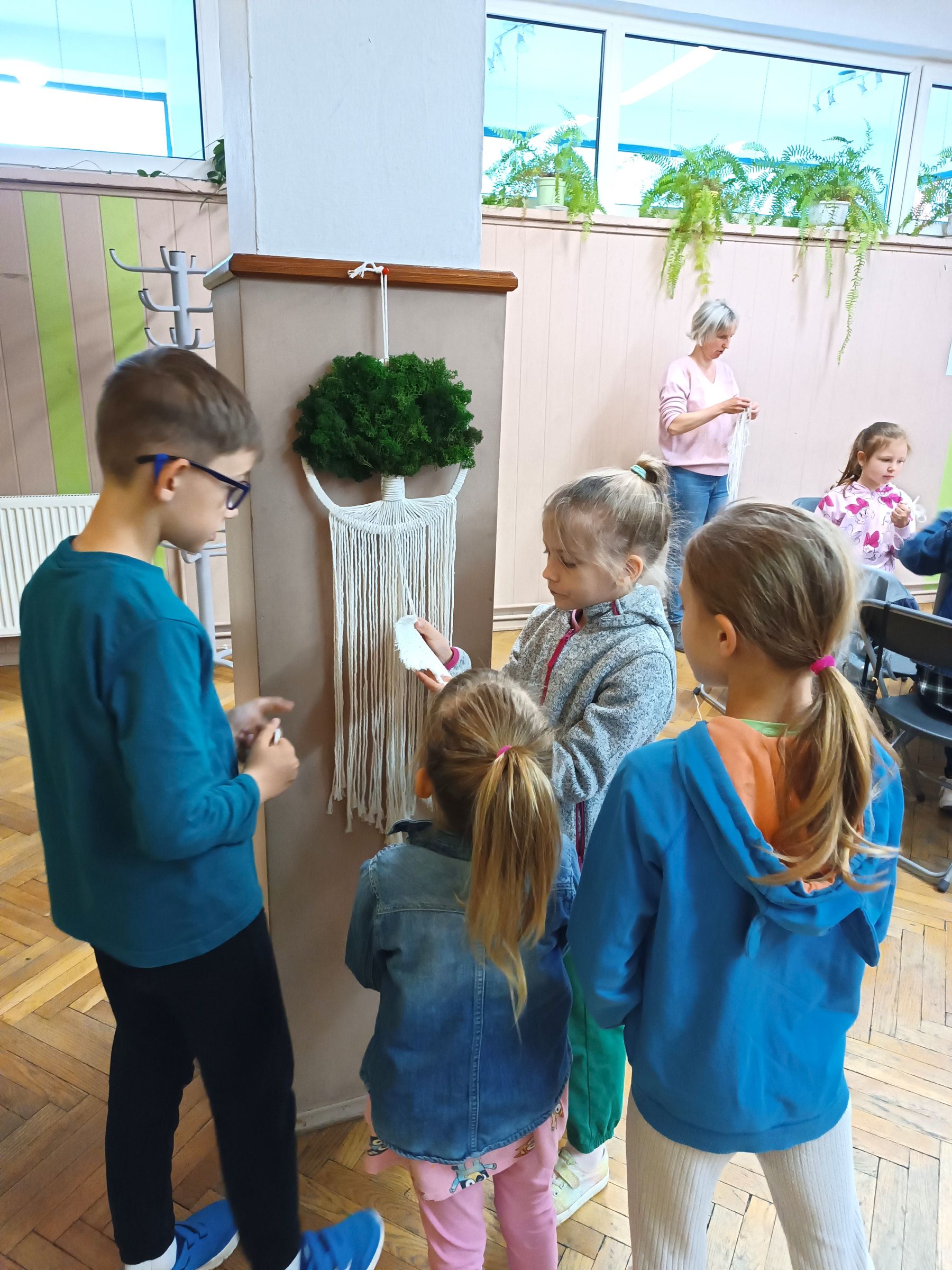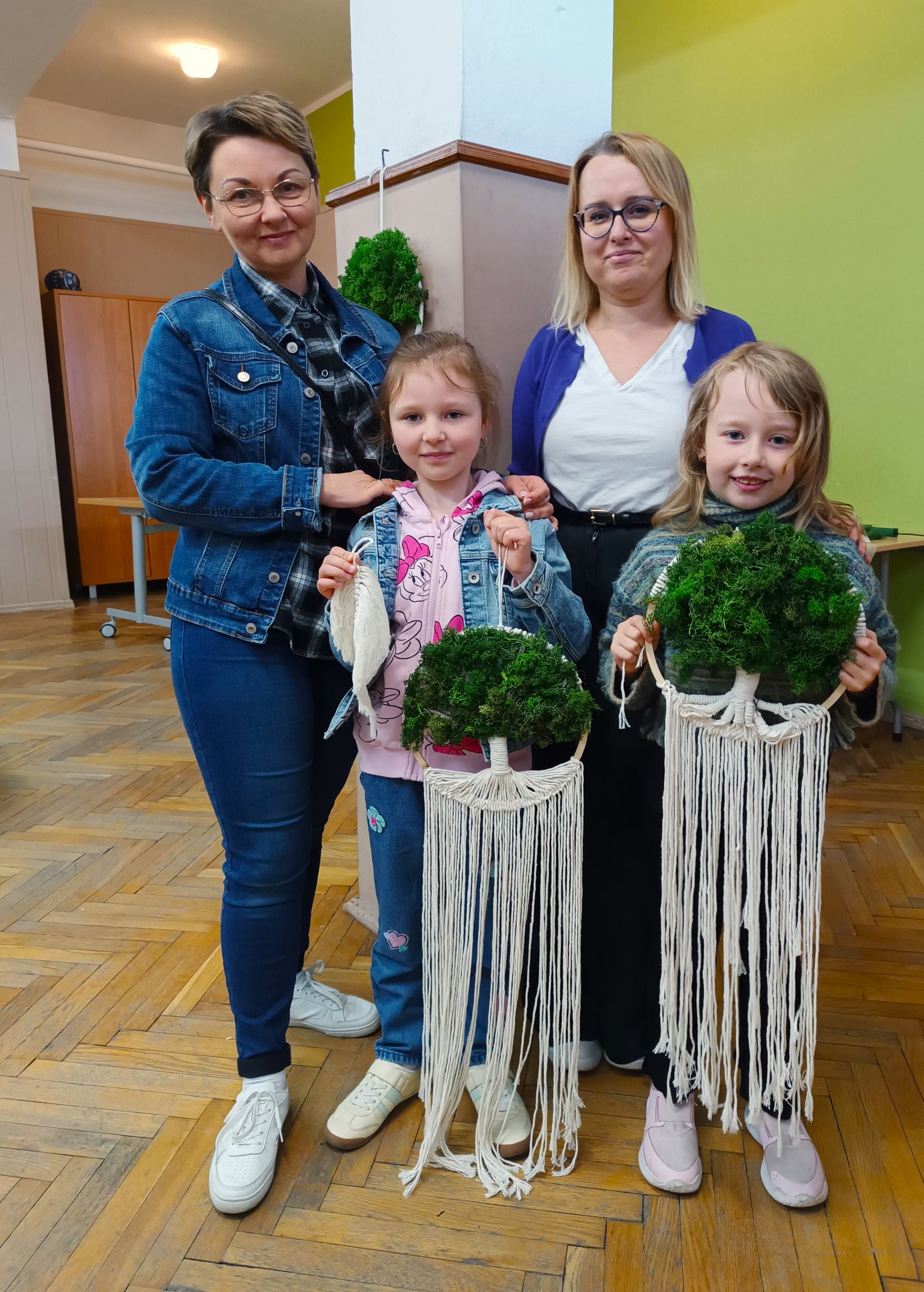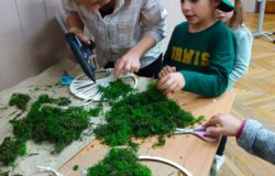 Prace wykonywane były z dużą starannością i cierpliwością, a efekt końcowy ozdobiono zielonym mchem chrobotkiem, który nadał kompozycjom wyjątkowego uroku. Powstałe dekoracje nie tylko stanowiły oryginalne upominki dla Mam, ale przede wszystkim były symbolem wspólnie spędzonego czasu i rodzinnej bliskości.