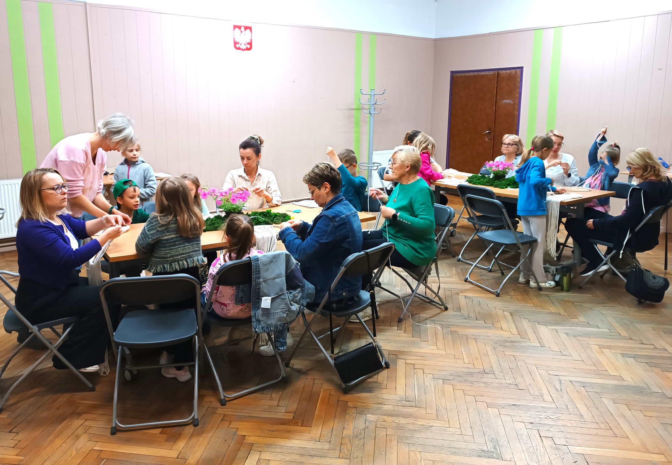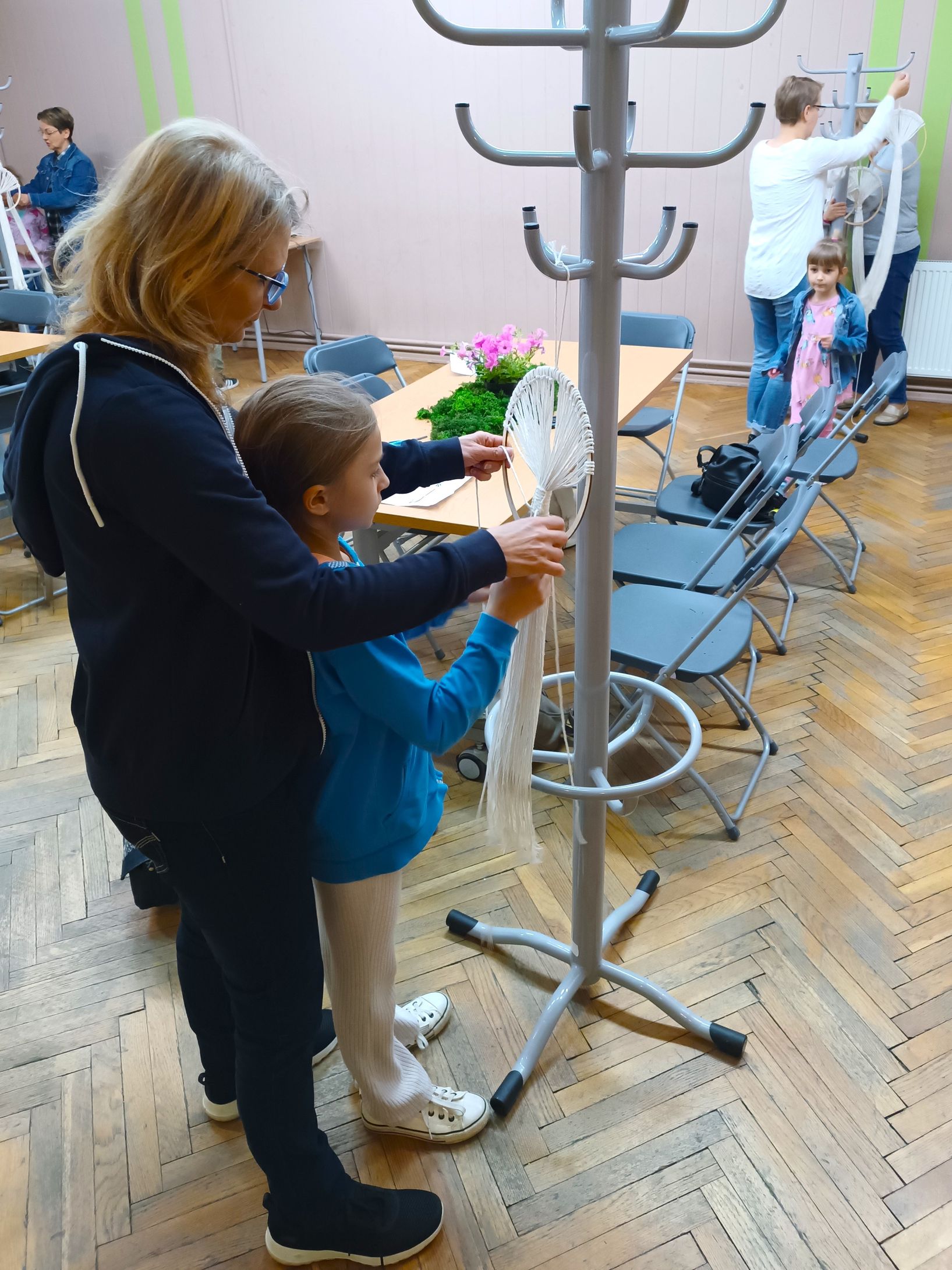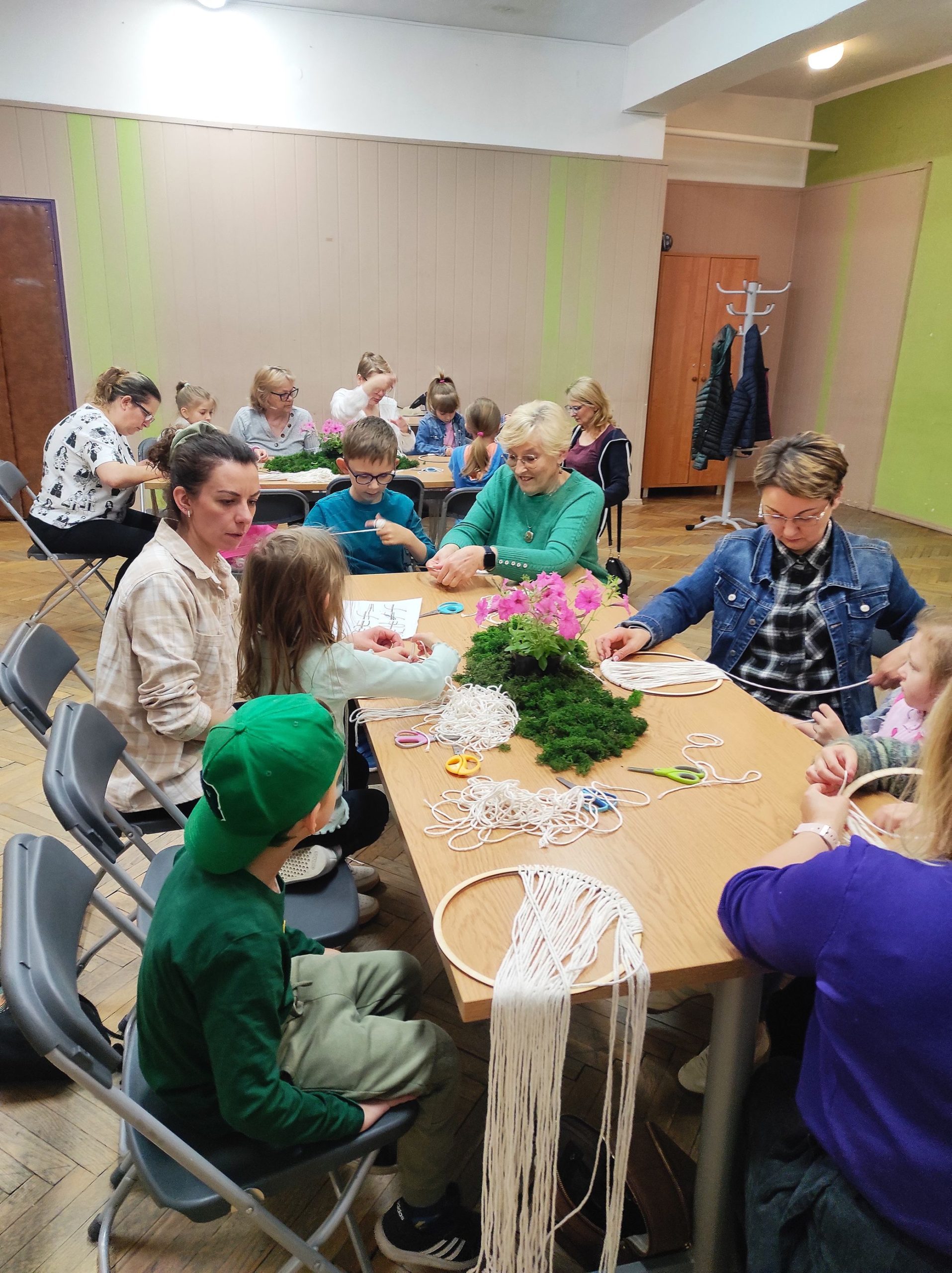 W sobotnie przedpołudnie, 24 maja 2025 r., w Ośrodku Promocji Aktywności Kulturalnej odbyły się rodzinne warsztaty artystyczne z okazji Dnia Matki. Uczestniczki i uczestnicy – dzieci wraz z opiekunami – wspólnie tworzyli dekoracyjne „Drzewka Szczęścia” w technice makramy.