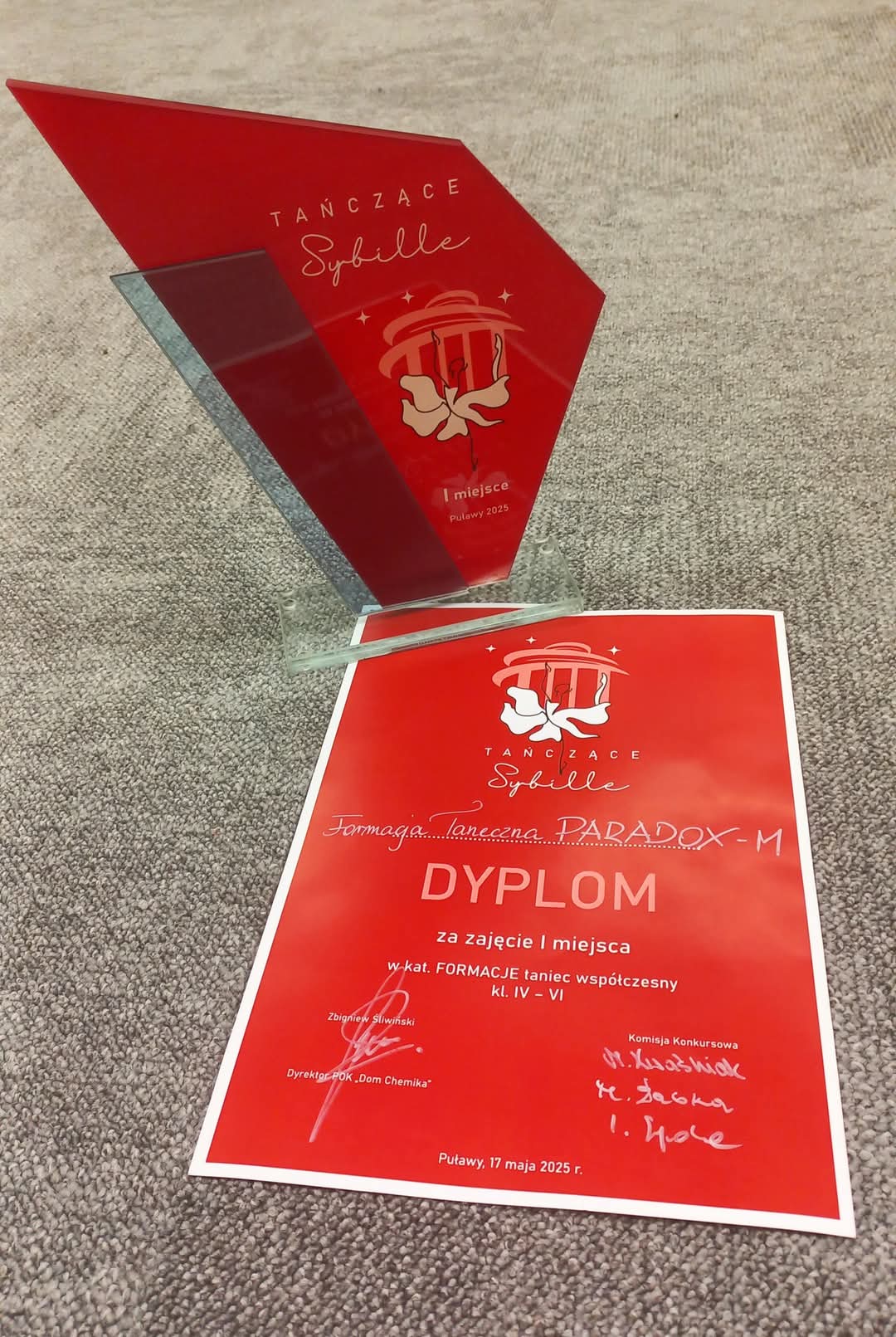 Z radością informujemy, że Formacja Taneczna PARADOX M zdobyła I miejsce w kategorii Taniec Współczesny (klasy IV–VI) podczas II edycji Festiwalu „Tańczące Sybille”, który odbył się 17 maja 2025 roku w Puławskim Ośrodku Kultury „Dom Chemika” .