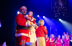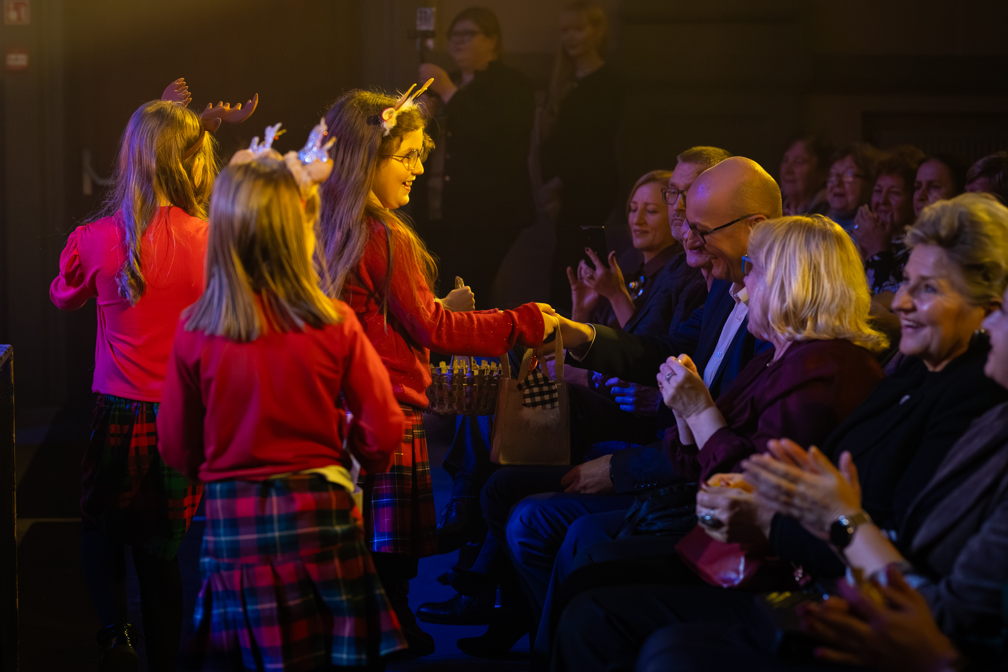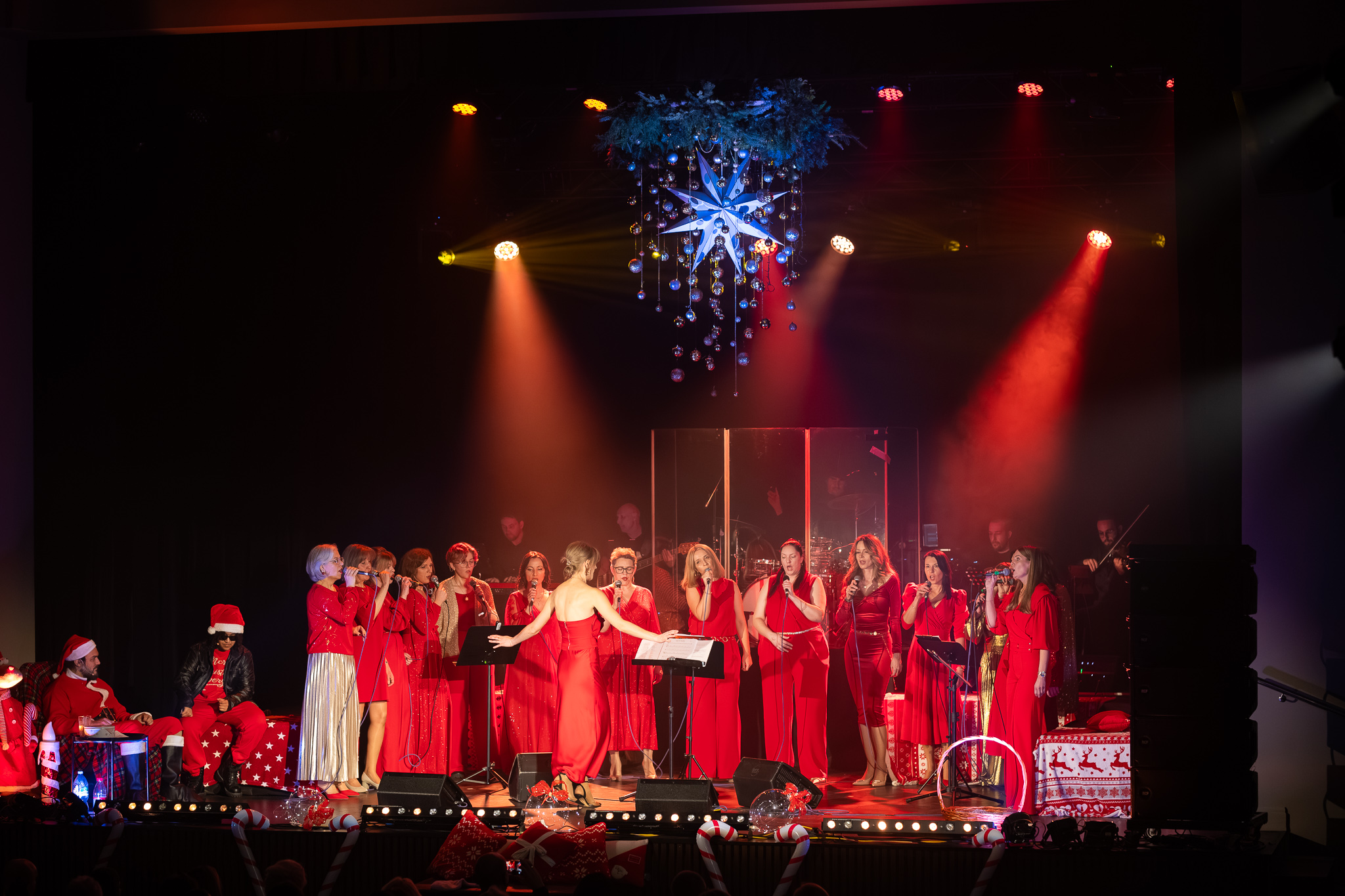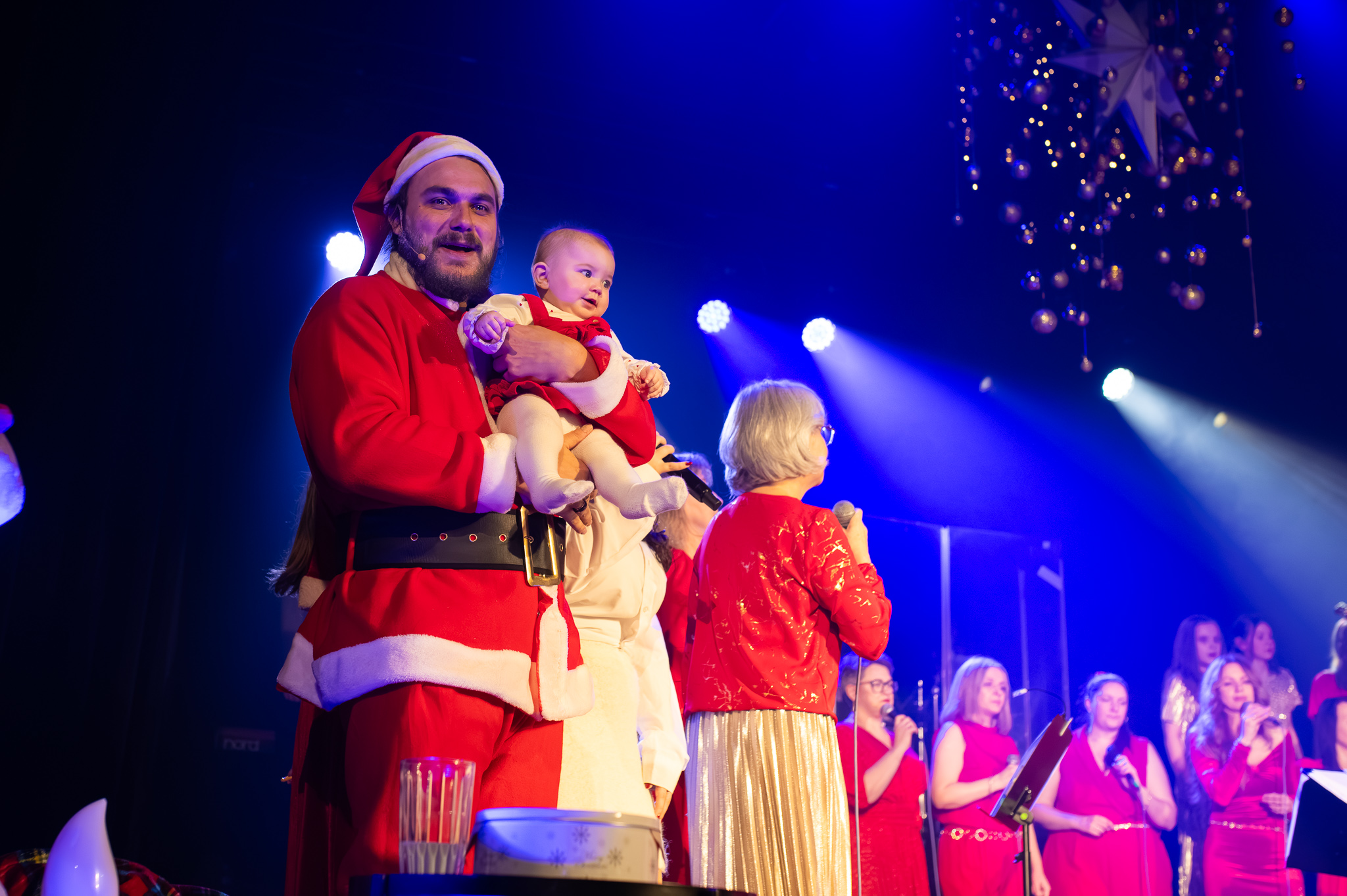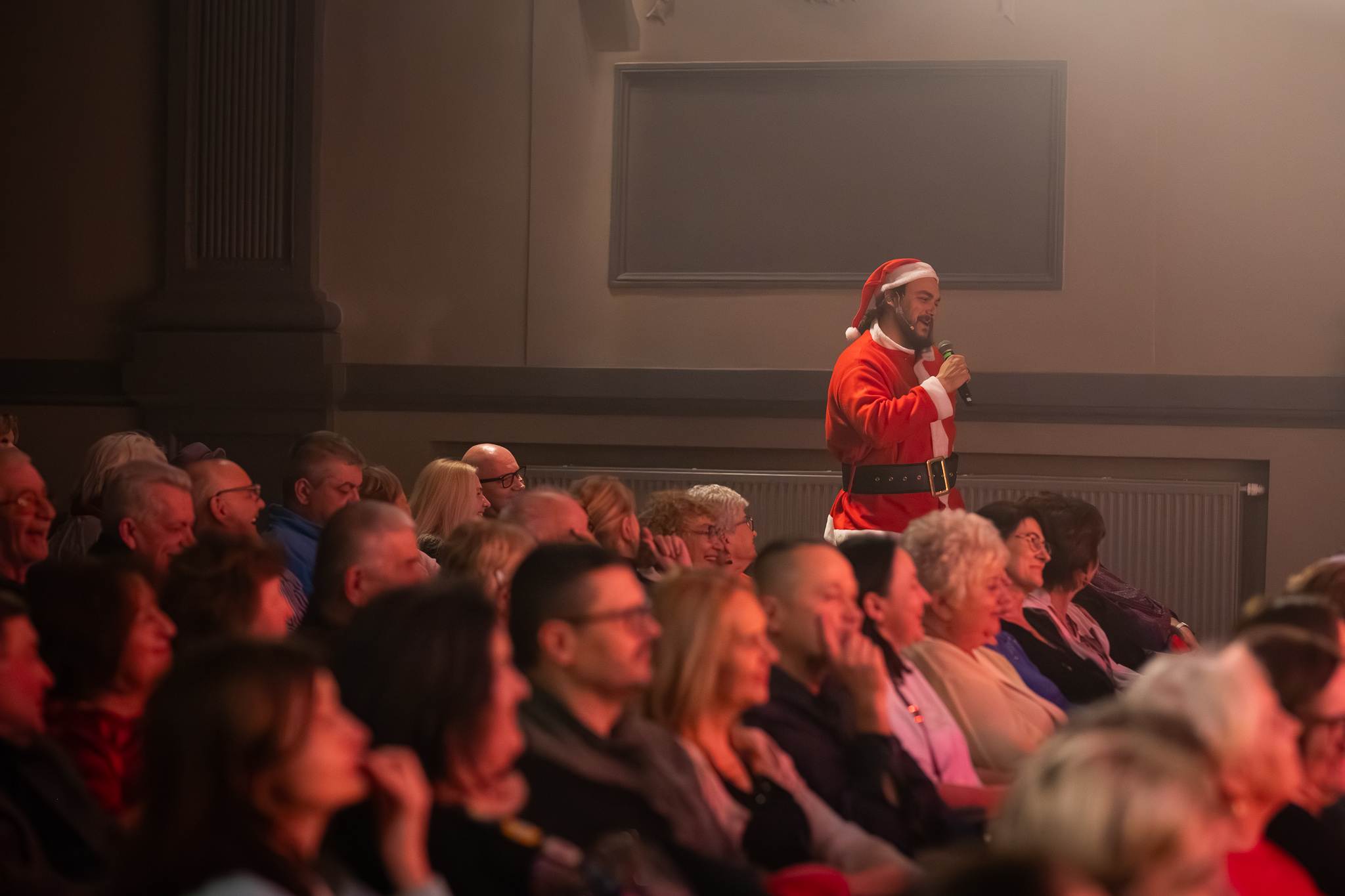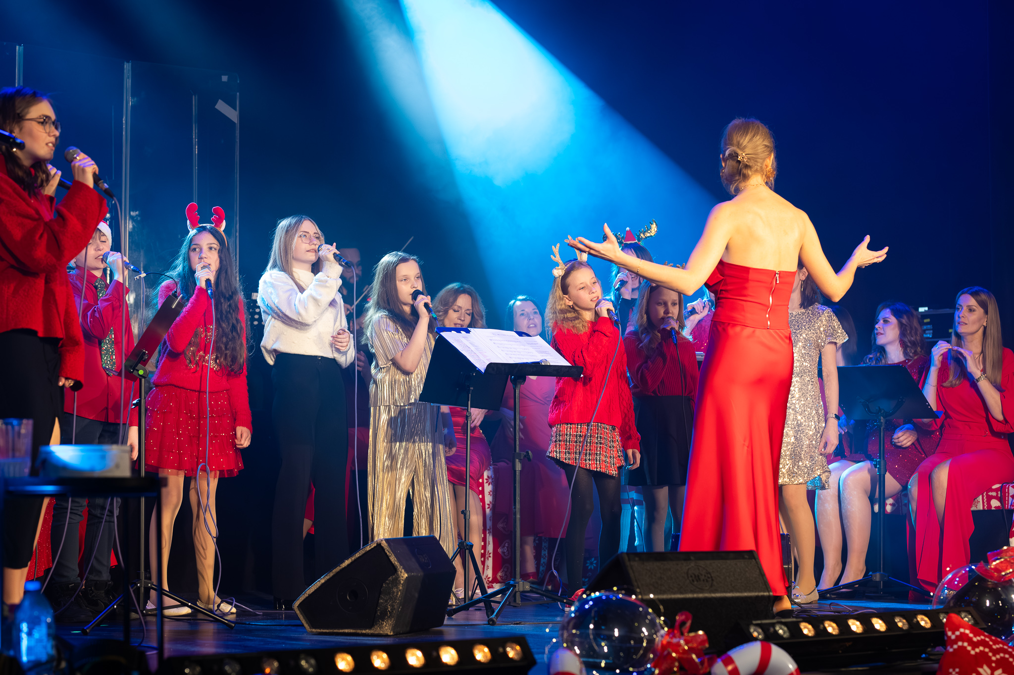 Nie zabrakło również elementów, które wywołały uśmiech i wzruszenie – na scenie pojawił się Święty Mikołaj, w którego rolę wcielił się Karol Teter, a towarzyszył mu jego niezastąpiony pomocnik Michael (w tej roli Giul Kpogomou). Jako prowadzący koncert, wprowadzili publiczność w pełną ciepła, świątecznej radości i humoru atmosferę.