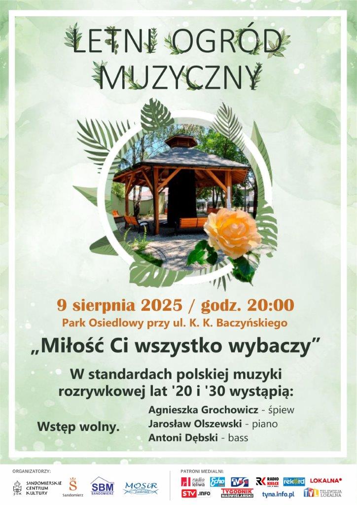 Serdecznie zapraszamy na koncert pn. „Miłość Ci wszystko wybaczy” w ramach Letniego Ogrodu Muzycznego. Koncert odbędzie się w sobotę 9 sierpnia o godz. 20:00. Tym razem w zielonej przestrzeni Parku osiedlowego przy ul. Baczyńskiego, wysłuchamy standardów polskiej muzyki rozrywkowej lat ‘20 i ’30 w autorskich aranżacjach w wykonaniu:
