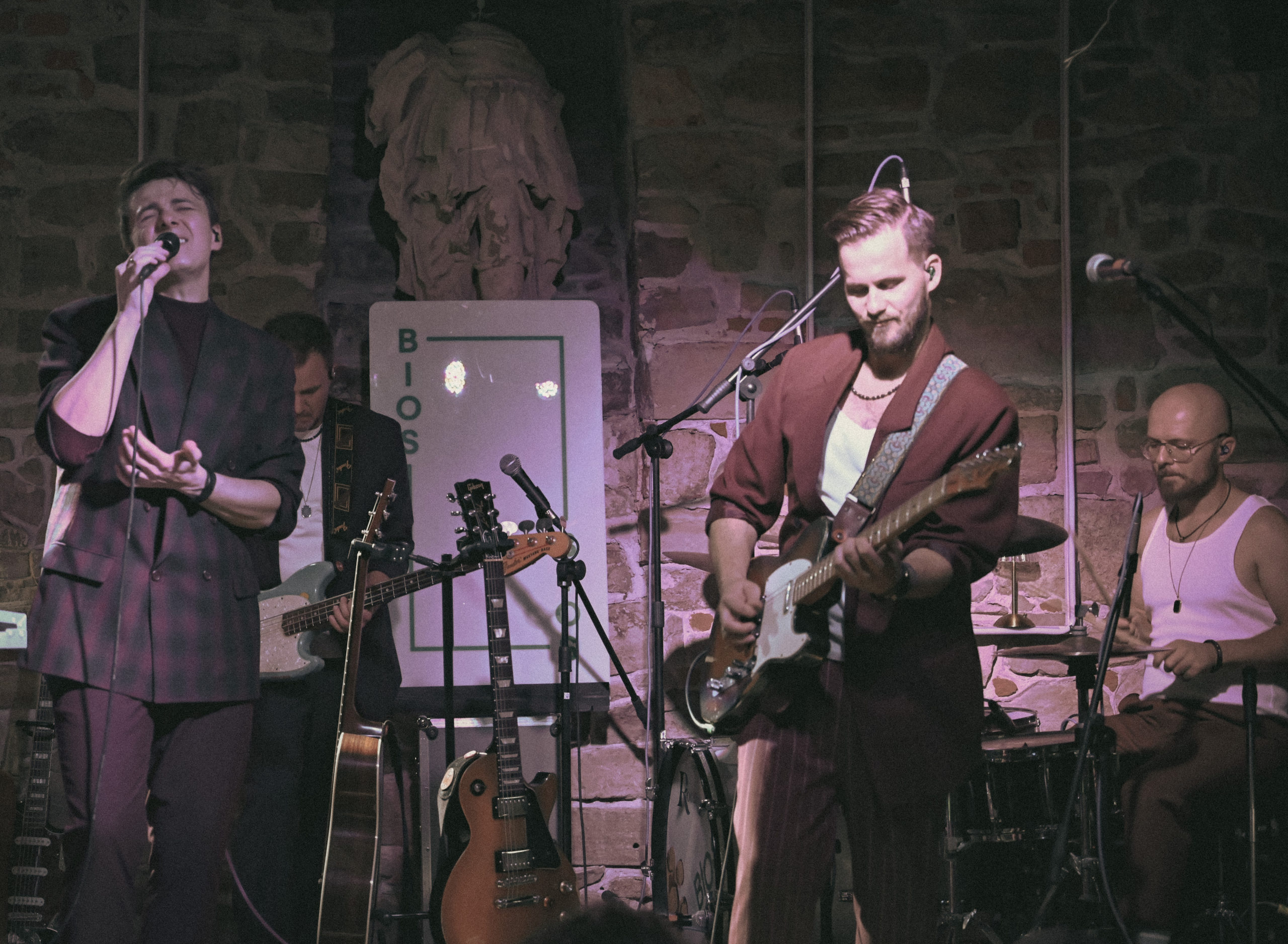 Wisienką na torcie niedzielnego wieczoru był koncert znakomitego zespołu BIOS, który odbył się o godz. 18:00 w Lapidarium pod Ratuszem. Zespół działa od 2023r., w tym roku wydał debiutancki album (co ciekawe, również na płycie winylowej!) pt. „pierwsze rozdanie” i rozpoczął swoją pierwszą trasę koncertową, o tym samym tytule. W skład zespołu wchodzą znani i utalentowani muzycy, na co dzień współpracujący z topowymi polskimi gwiazdami sceny muzycznej, m.in. Kayah, Mrozem, O.S.T.R.’ym czy Darią Zawiałow: Kamil Bijoś, Kacper Stolarczyk, Daniel Kapustka, Wojtek Famielec i Artur Michalski. Ich piosenki zachwyciły publiczność niezwykłymi aranżacjami, tworząc wyjątkową atmosferę. Wśród kompozycji znajdują się zarówno refleksyjne, jak i energetyczne utwory.