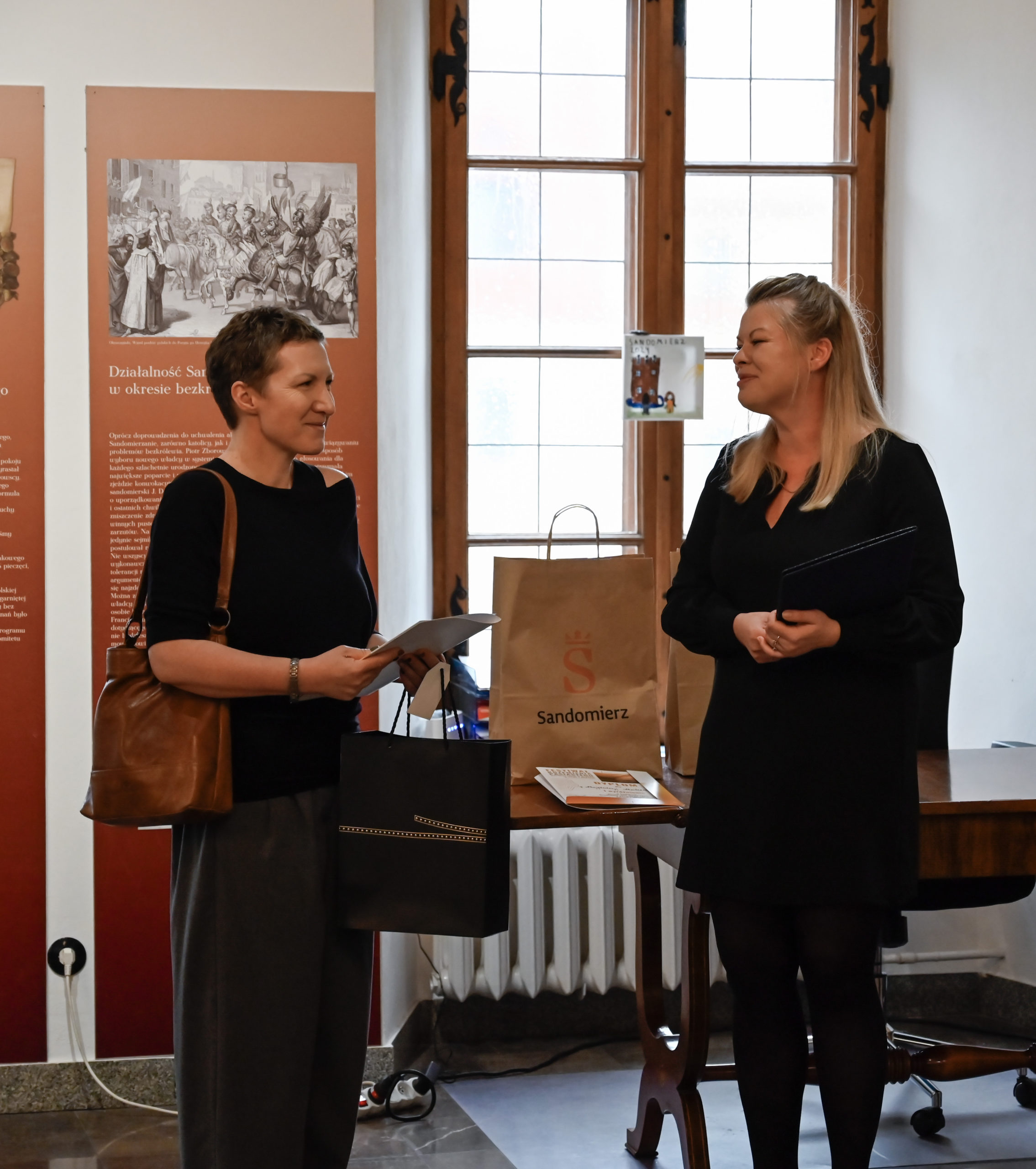 W niedzielę, 6. października 2024, o godz. 17.00 w Sali Ekspozycyjnej Ratusza odbył się finisaż niezwykłej wystawy konkursowej pn. „Biżuteryjna forma życia krzemienia pasiastego – w stronę korzeni i ziemi”. To wydarzenie oficjalnie zwieńczyło tegoroczną edycję Festiwalu Krzemienia Pasiastego i przyciągnęło – mimo deszczowej pogody – miłośników biżuterii. Zebrani mieli okazję po raz ostatni podziwiać prezentowane w Ratuszu wyroby jubilerskie, ale również porozmawiać z autorką zwycięskiej pracy, panią Agatą Tkaczyńską-Turbińską, której praca „Piaski czasu” zdobyła trzecie miejce. Wśród gości, którzy zaszczycili nas obecnością w tym dniu, były również pani Magdalena Maślerz, która uzyskała I wyróżnienie za pracę pt. „Kiedy życie daje ci krzemień bez pasków”, oraz pani Ryszarda Paralusz-Krzesimowska, ceniona sandomierska jubilerka i złotniczka, jurorka konkursu i fundatorka nagrody.