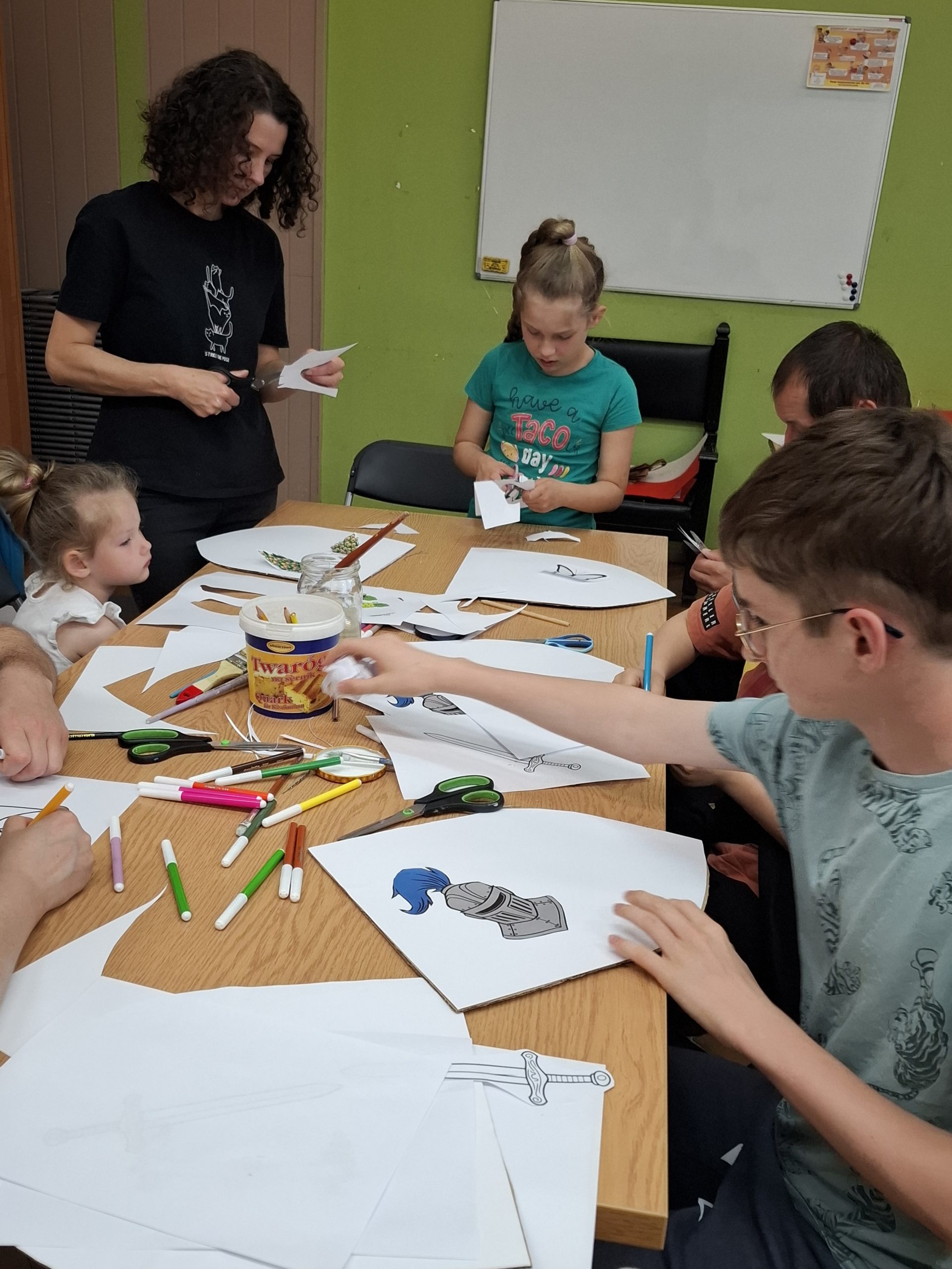 Dla rodzin i najmłodszych uczestników przygotowaliśmy warsztaty plastyczne z heraldyki, które odbyły się w naszej pracowni w Ośrodku Promocji Aktywności Kulturalnej. Dzieci wraz z opiekunami tworzyły własne herby rodowe, poznając jednocześnie podstawy symboliki i historii związanej z dawnymi znakami szlacheckimi. Kreatywność uczestników przerosła oczekiwania!