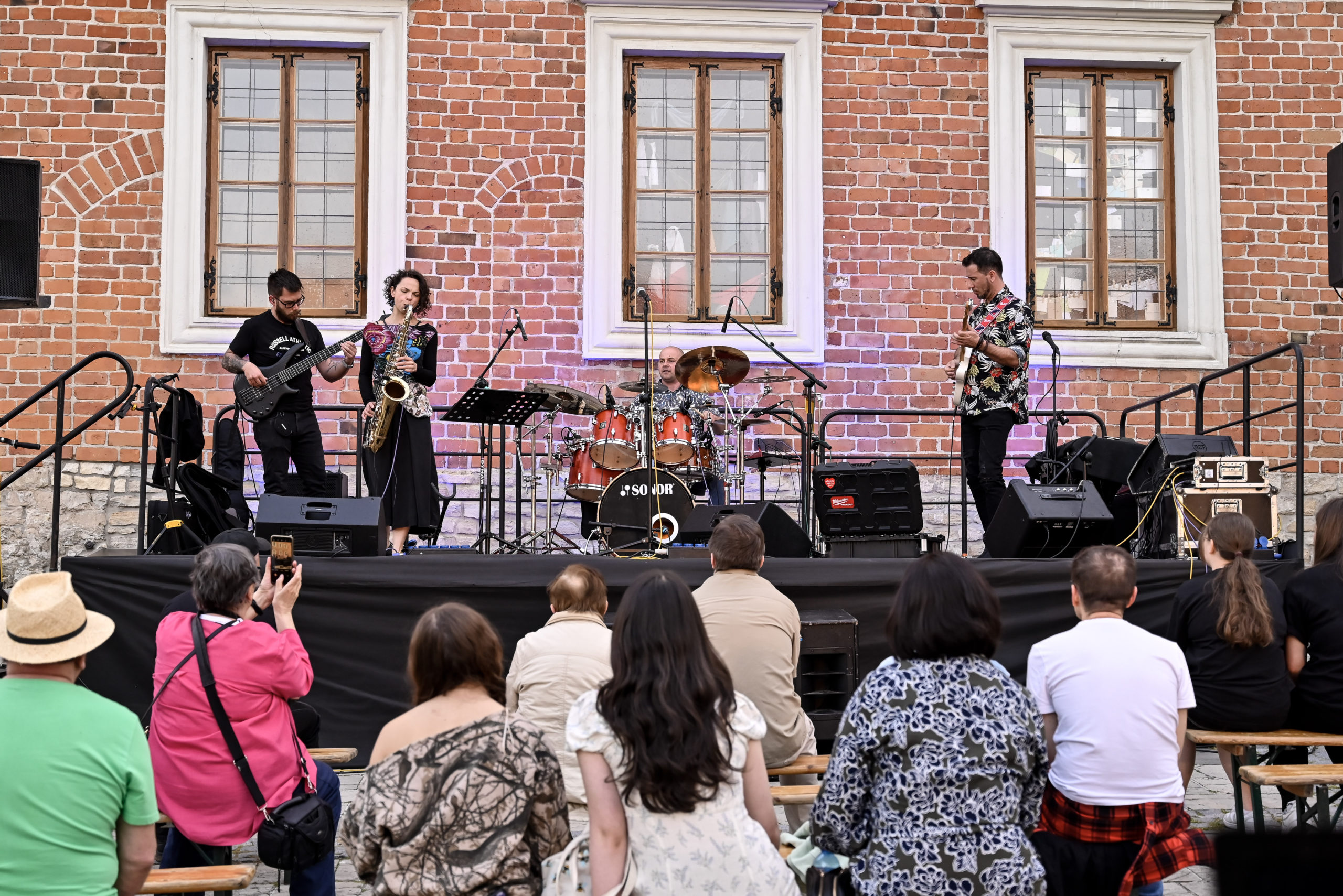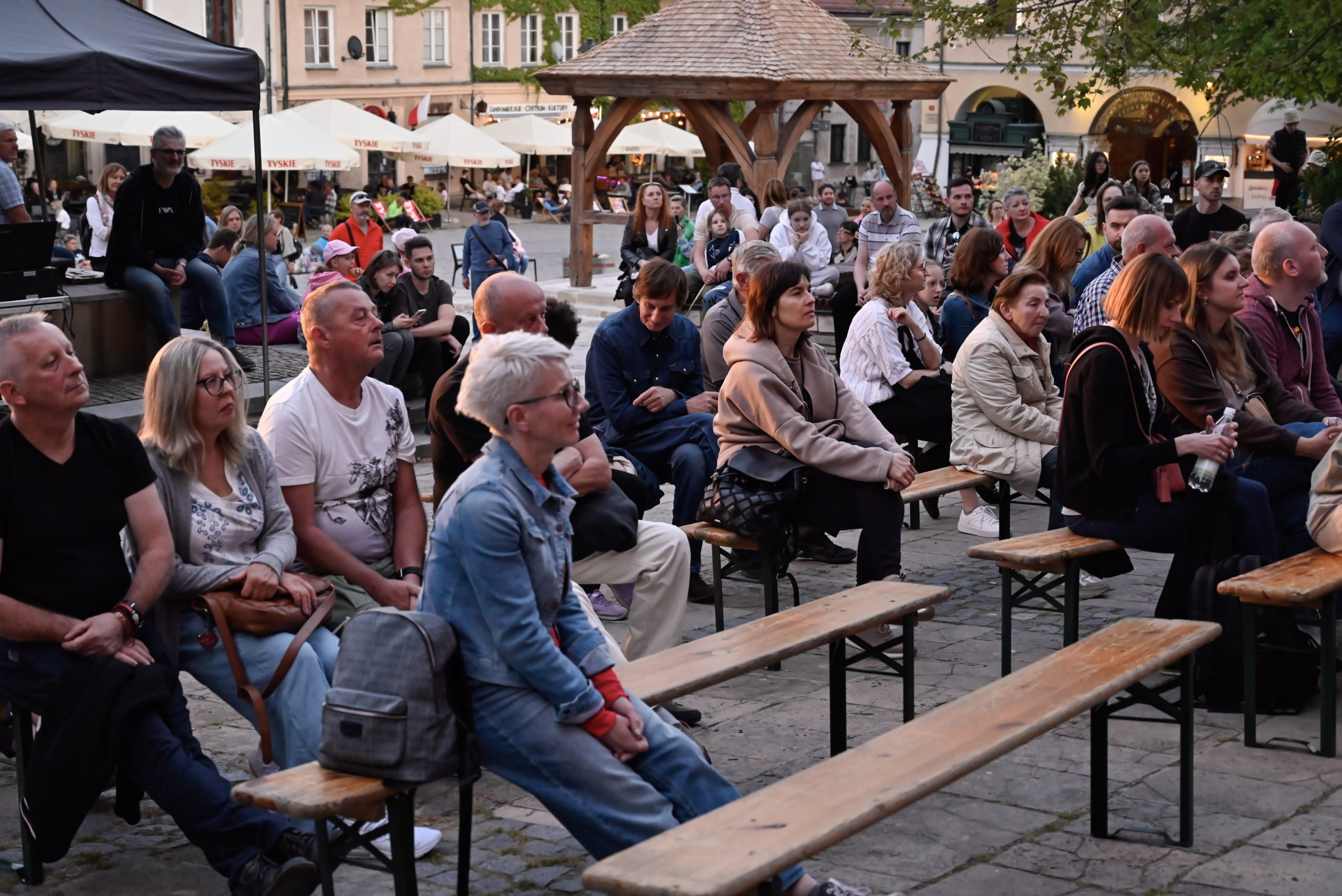 2 maja sandomierska Starówka ponownie rozbrzmiała muzyką – najpierw energetycznym jazzem w wykonaniu zespołu Jazzbeehappy, a następnie aksamitnym głosem Patrycji Zarychty, której na scenie towarzyszyli Gniewomir Tomczyk i Paweł Jabłoński. To był wieczór pełen muzycznych kontrastów i niezapomnianych wrażeń, który przyciągnął liczne grono zasłuchanych odbiorców.