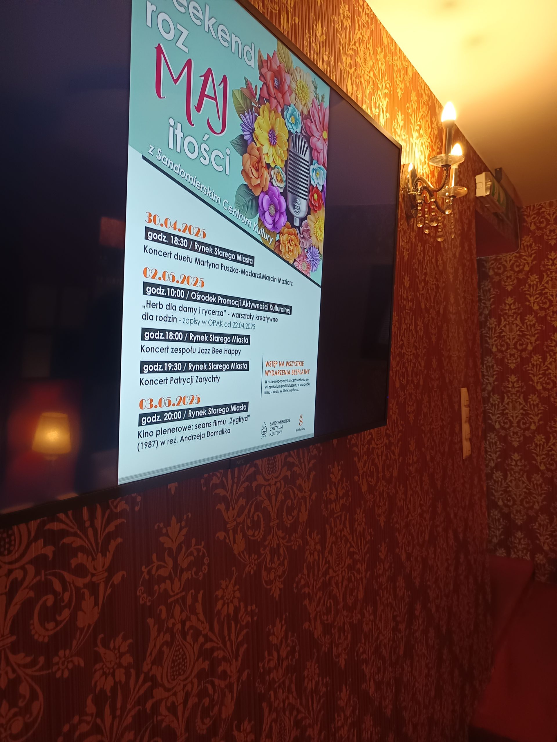Zwieńczeniem majówki był seans filmu „Zygfryd” w reżyserii Andrzeja Domalika – choć pierwotnie planowany jako pokaz plenerowy, ze względu na prognozowane warunki pogodowe został przeniesiony do Kina „Starówka”. Klasyczne dzieło z 1986 roku, oparte na opowiadaniu Jarosława Iwaszkiewicza i zrealizowane w Sandomierzu, przyciągnęło wielu miłośników kina i lokalnej historii.