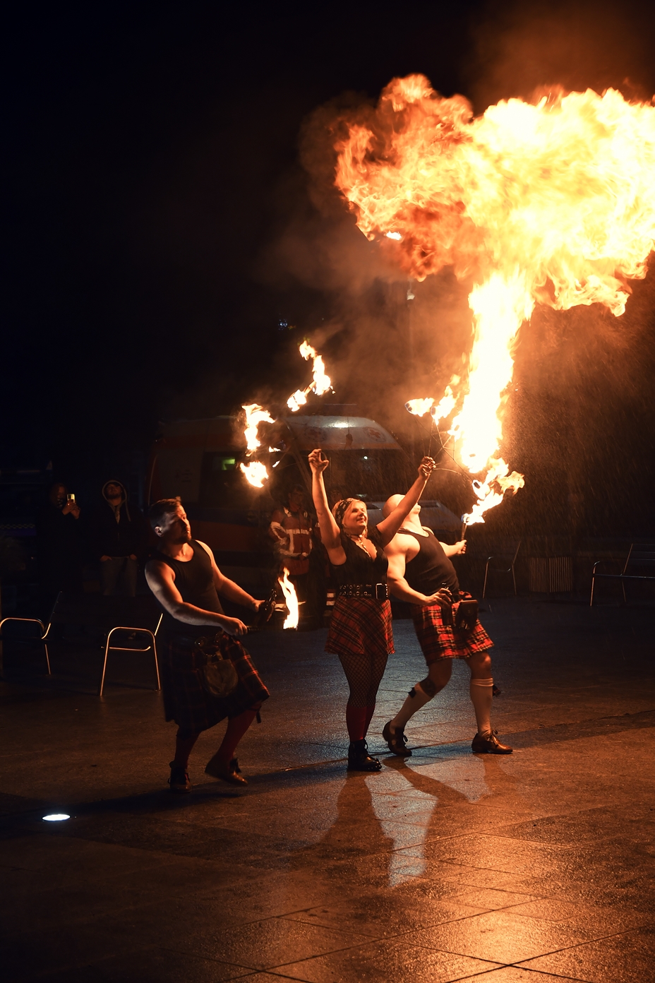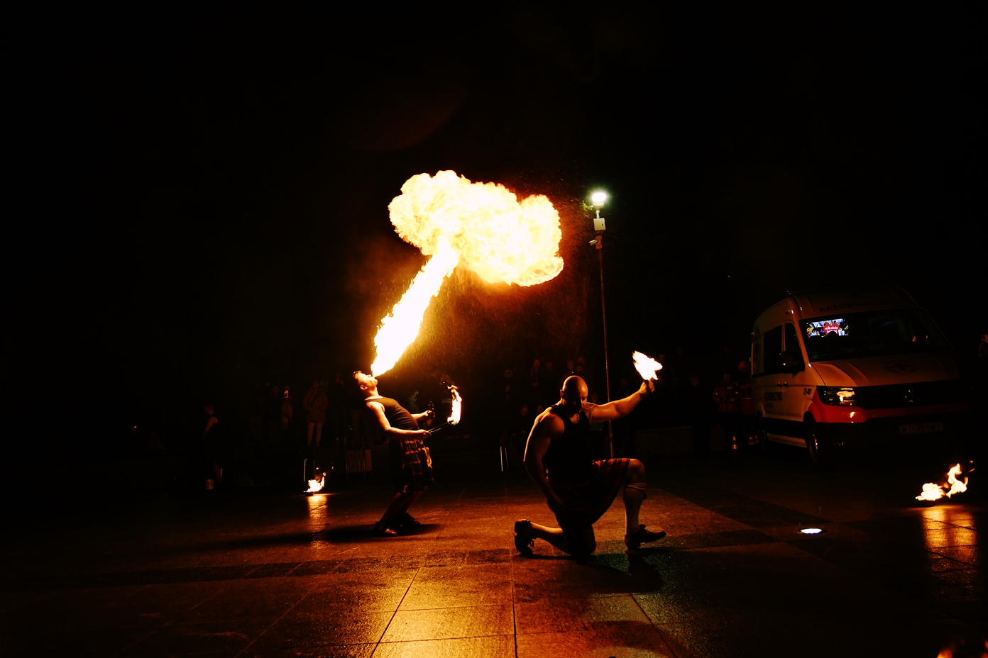 32 Finał WOŚP zakończyło Światełko do Nieba w wykonaniu KP PSP w Sandomierzu – w niebieskich światłach lamp, przy dźwięku syren, ku zdumieniu zebranych w górę poszybował wysięgnik z rozświetlonym koszem. Następnie można było obejrzeć zapierające dech w piersiach widowisko fireshow, które przygotował Teatr Ognia DRACO.