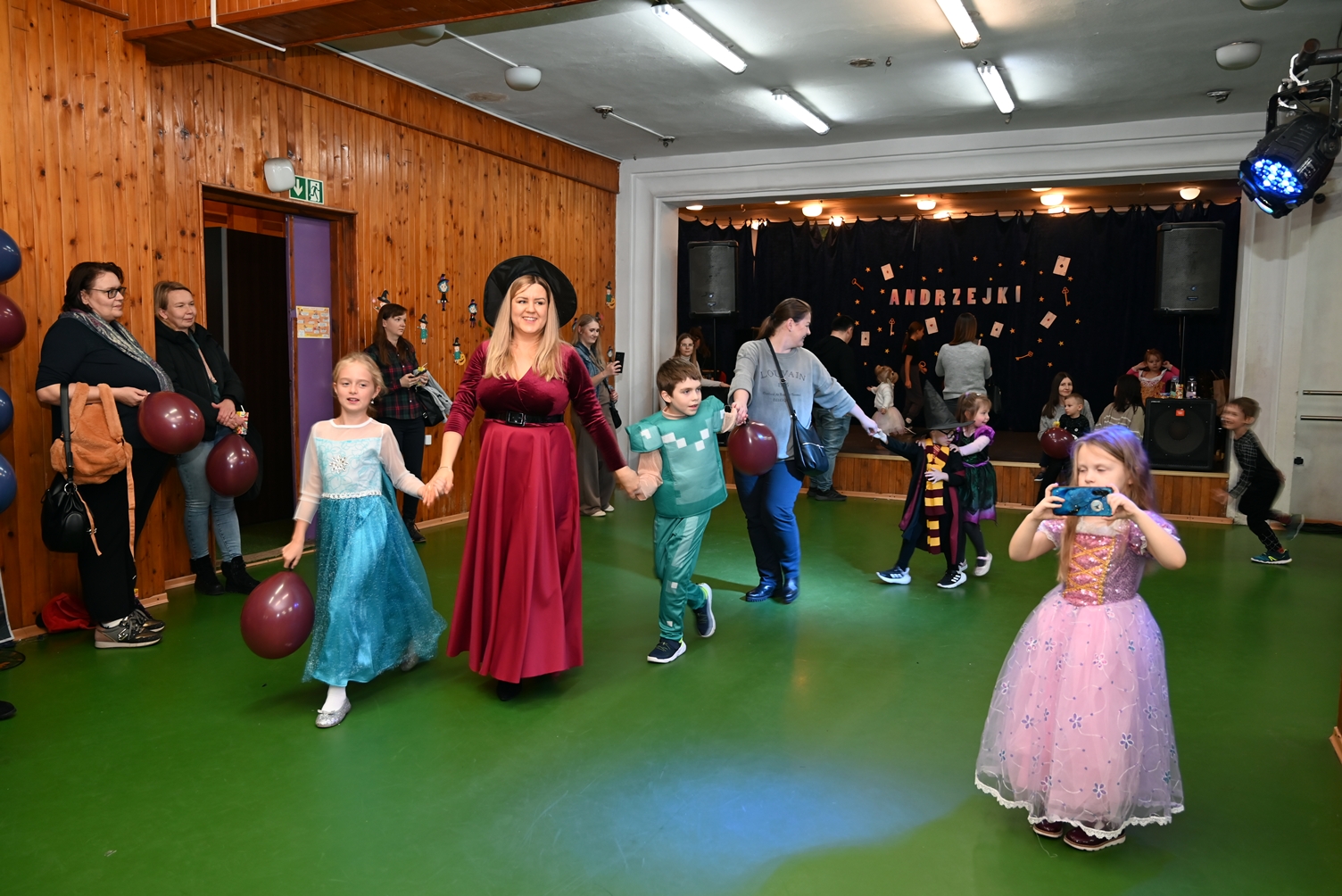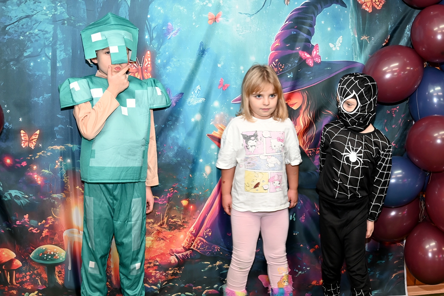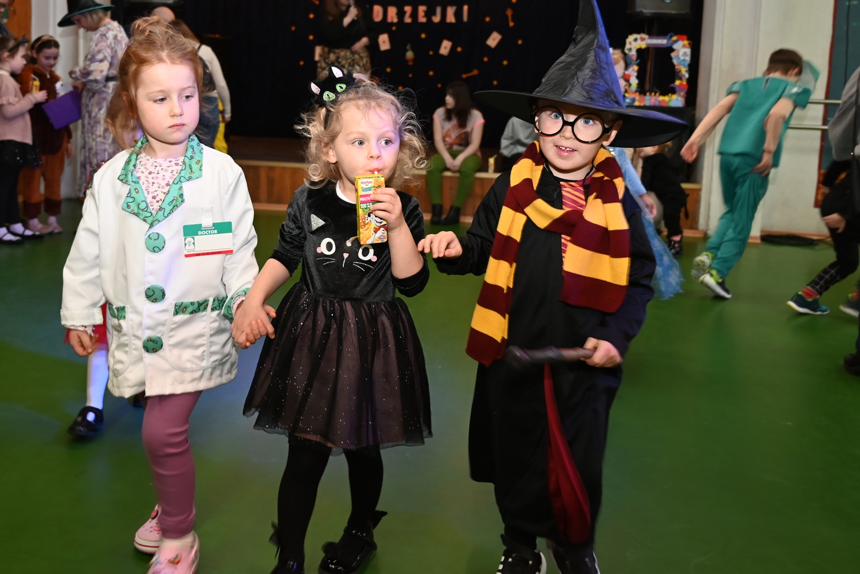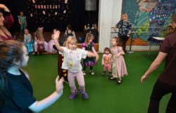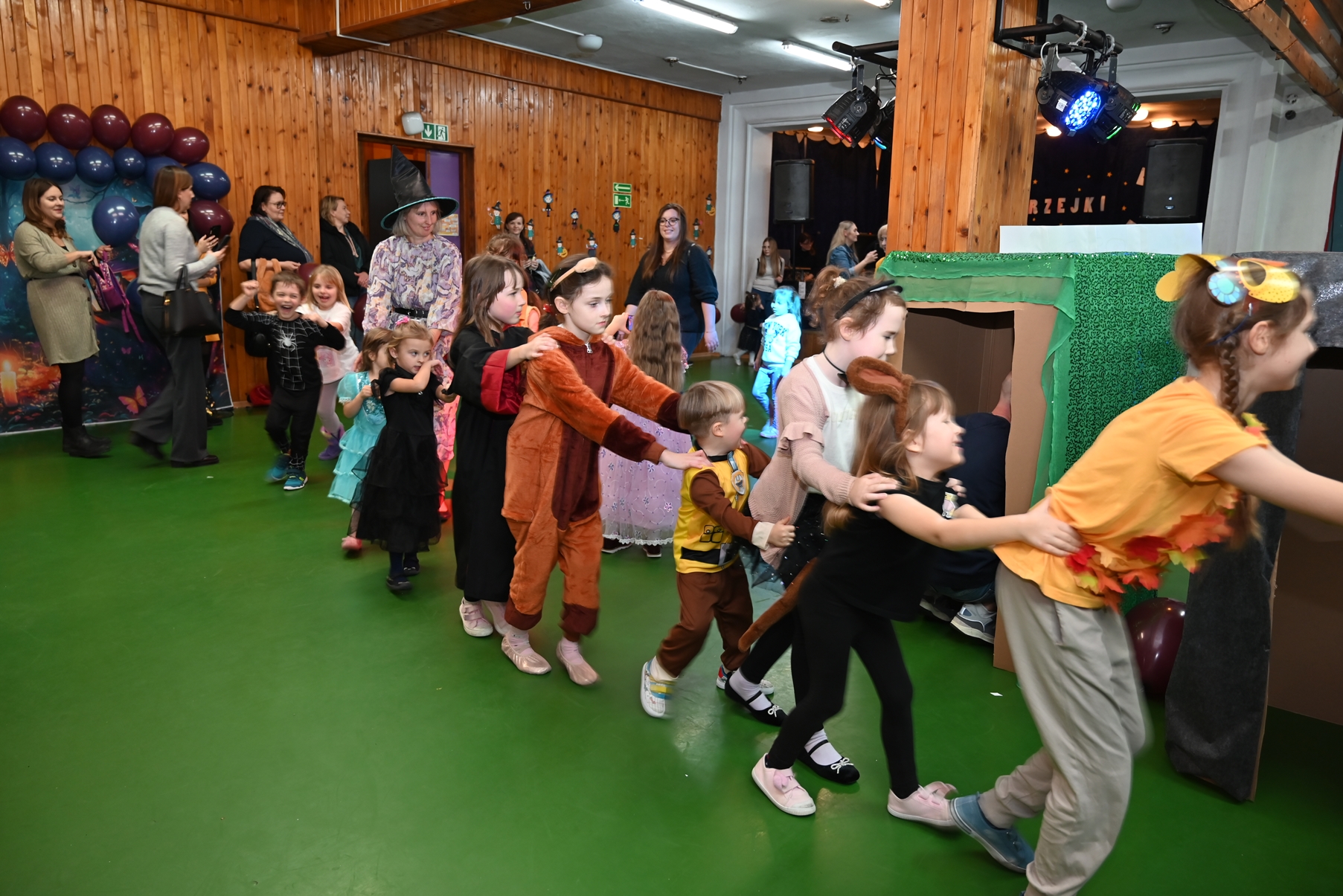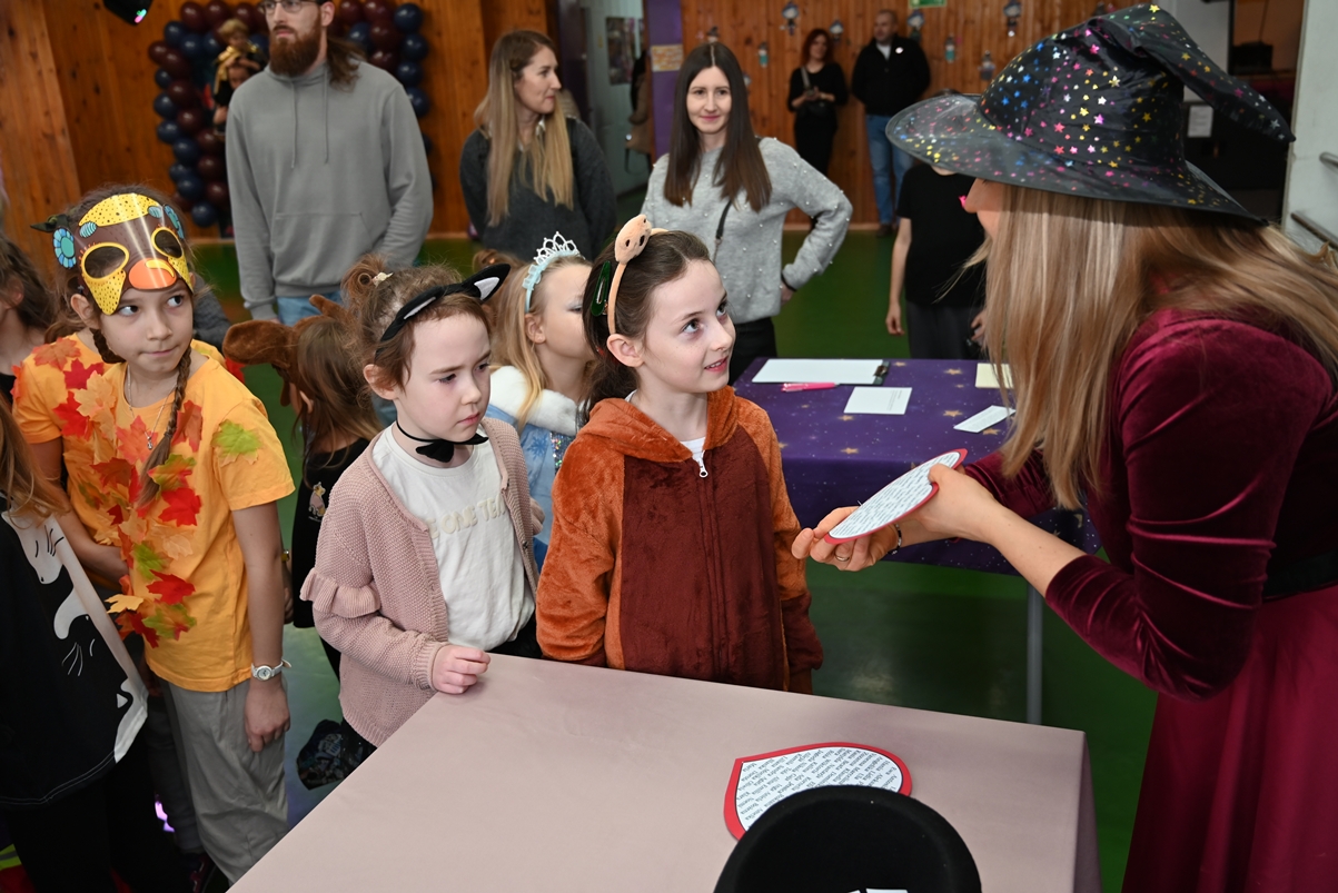 Bal dla dzieci rozpoczął się punktualnie o 14:00 i od pierwszych chwil emanował radością. Wróżby, tańce, wspólna zabawa i mnóstwo śmiechu sprawiły, że w sali panowała prawdziwie magiczna aura. Dzieci zachwyciły nas bajecznymi przebraniami – pojawiły się księżniczki, superbohaterowie, urocze zwierzaczki (absolutnym przebojem okazała się kapibara!) oraz piękna personifikacja jesieni.