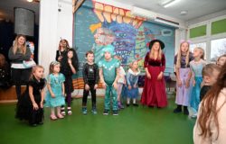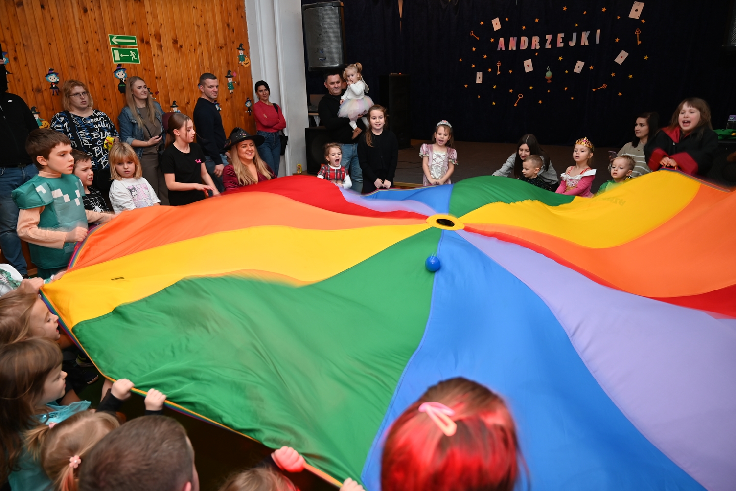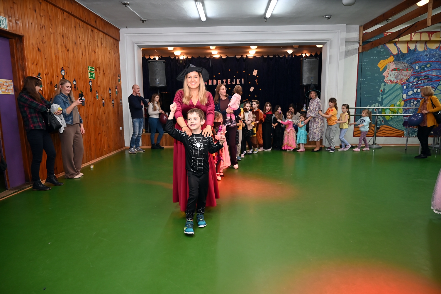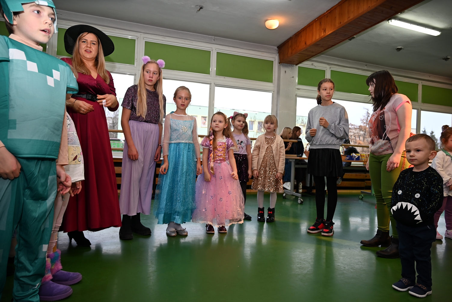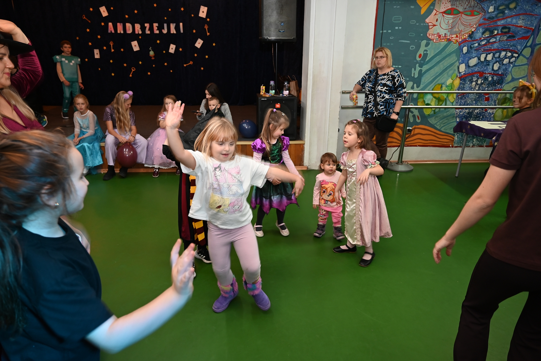Bal dla dzieci rozpoczął się punktualnie o 14:00 i od pierwszych chwil emanował radością. Wróżby, tańce, wspólna zabawa i mnóstwo śmiechu sprawiły, że w sali panowała prawdziwie magiczna aura. Dzieci zachwyciły nas bajecznymi przebraniami – pojawiły się księżniczki, superbohaterowie, urocze zwierzaczki (absolutnym przebojem okazała się kapibara!) oraz piękna personifikacja jesieni.