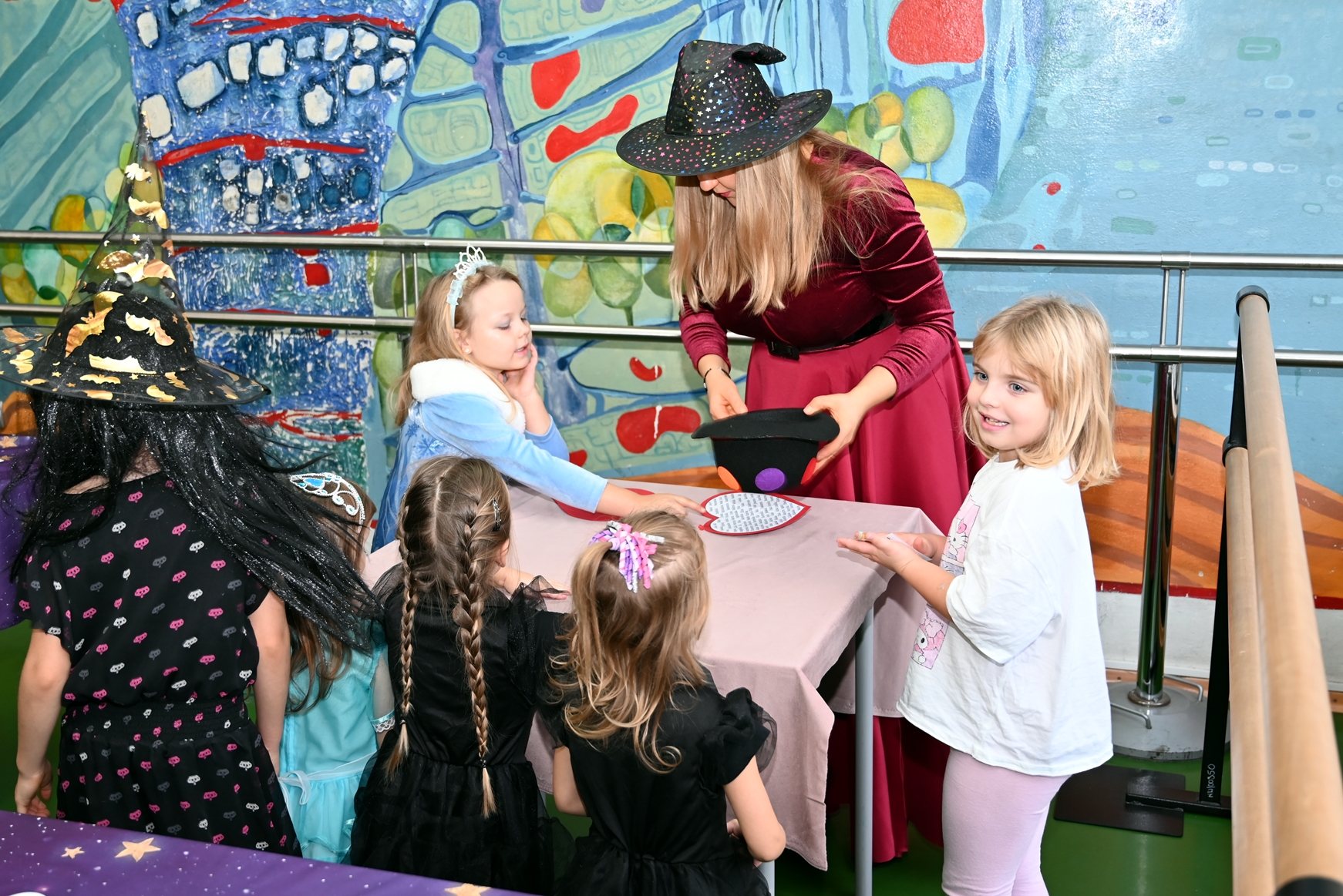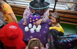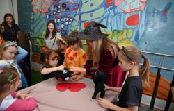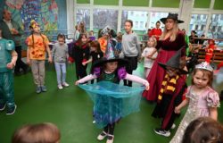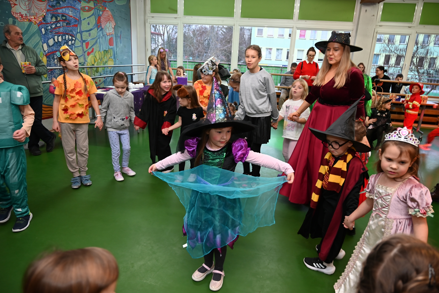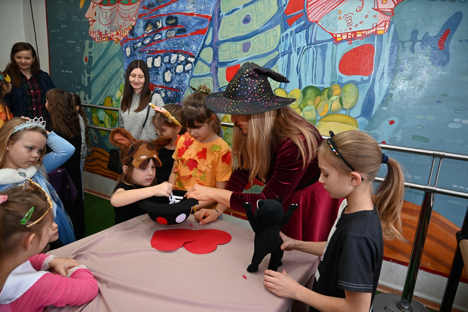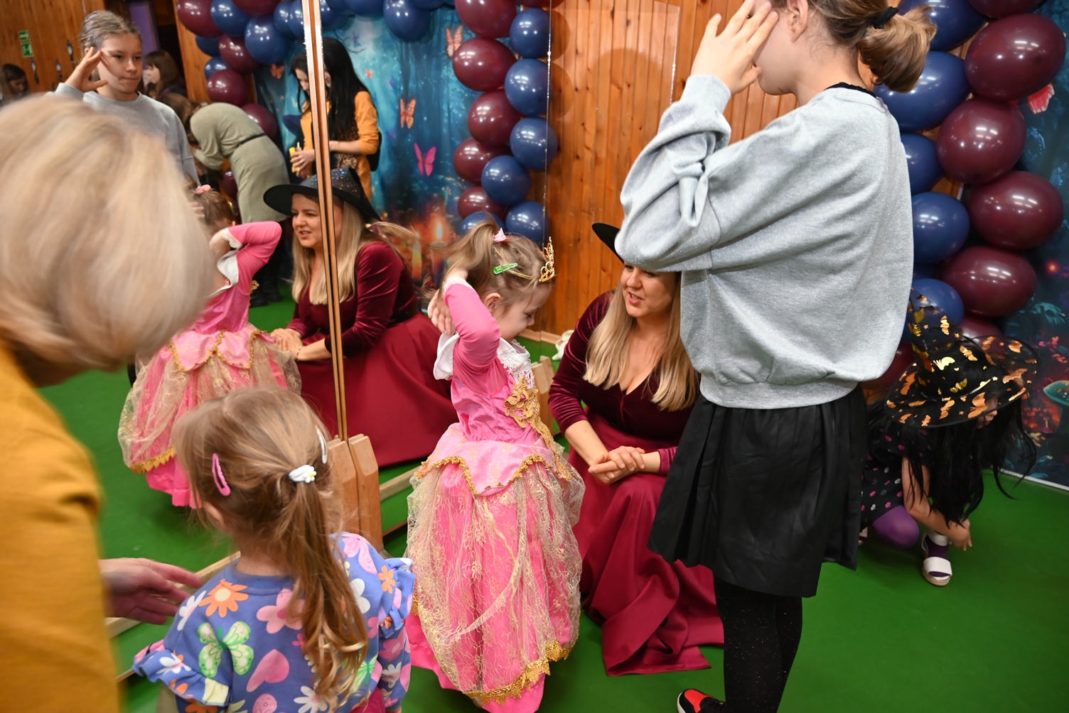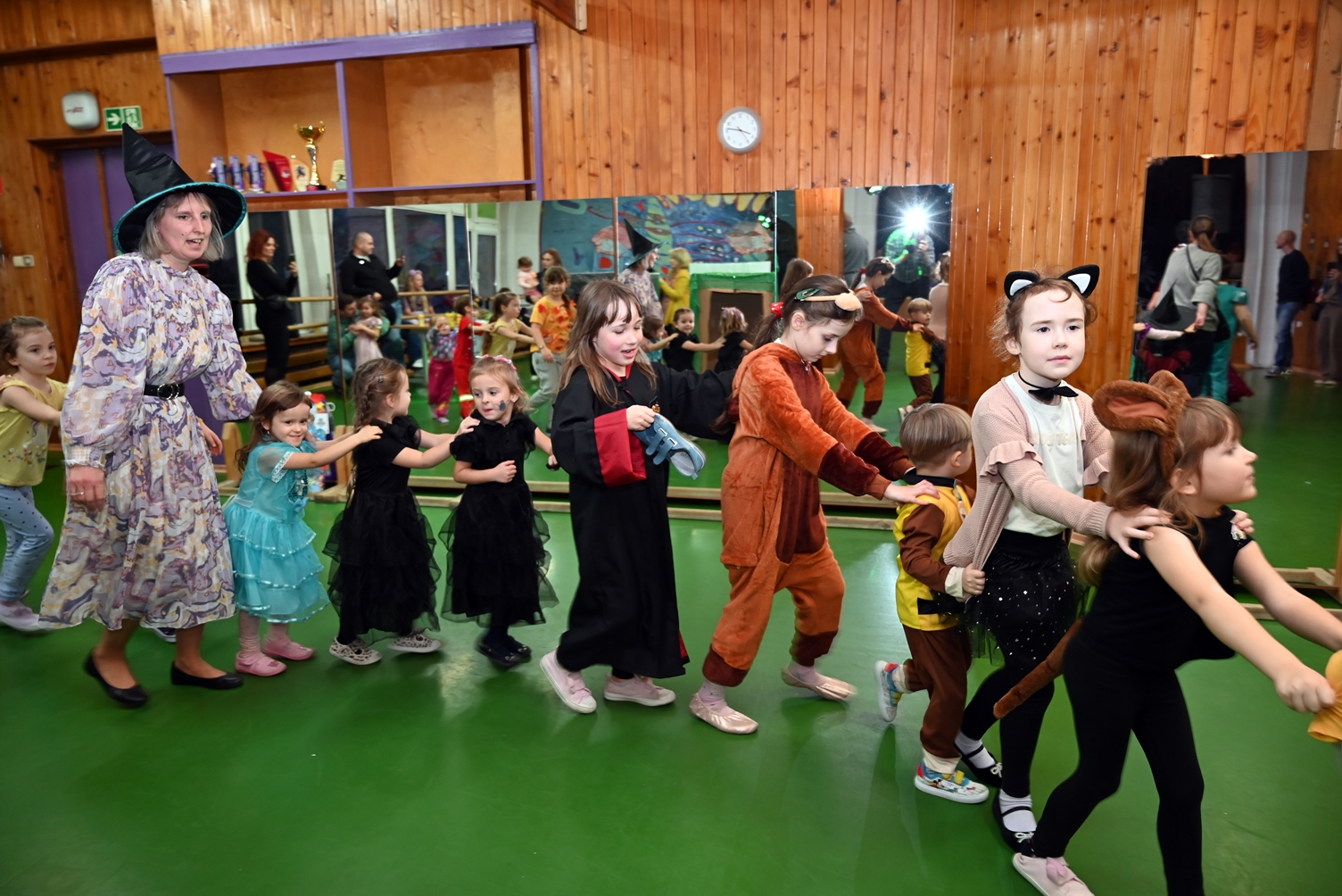 Bal dla dzieci rozpoczął się punktualnie o 14:00 i od pierwszych chwil emanował radością. Wróżby, tańce, wspólna zabawa i mnóstwo śmiechu sprawiły, że w sali panowała prawdziwie magiczna aura. Dzieci zachwyciły nas bajecznymi przebraniami – pojawiły się księżniczki, superbohaterowie, urocze zwierzaczki (absolutnym przebojem okazała się kapibara!) oraz piękna personifikacja jesieni.