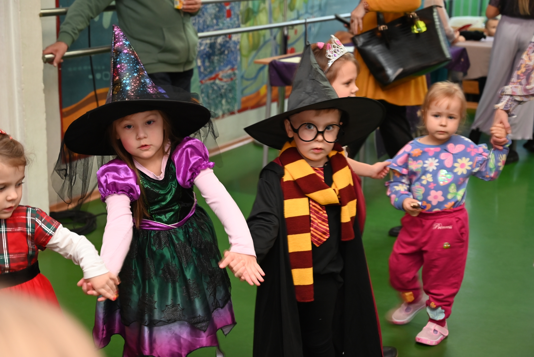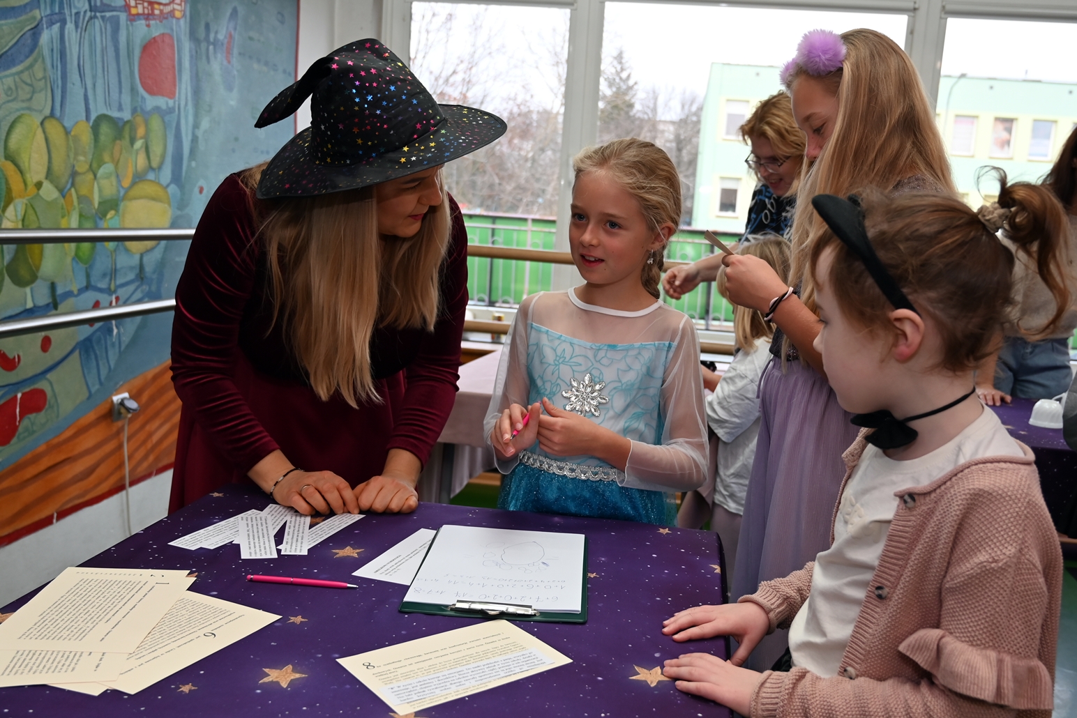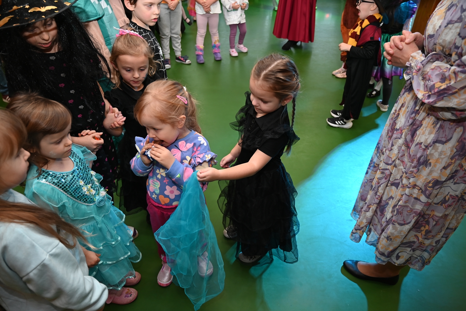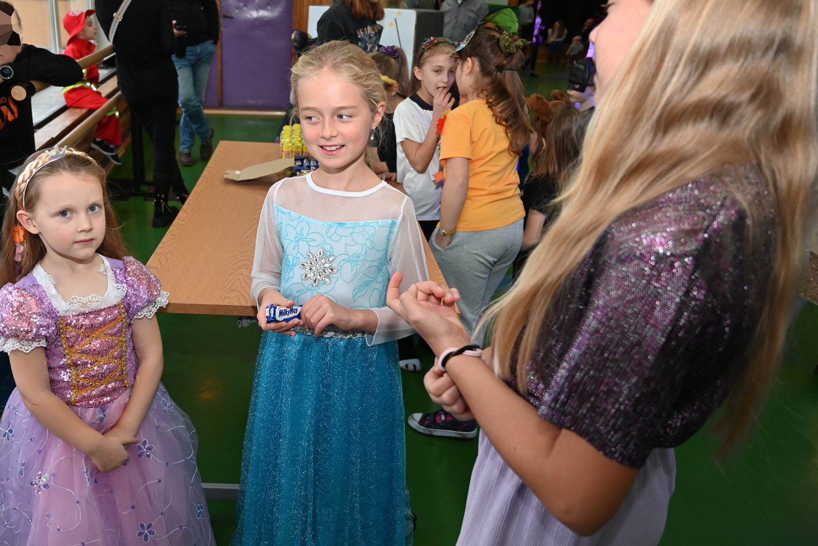 Bal dla dzieci rozpoczął się punktualnie o 14:00 i od pierwszych chwil emanował radością. Wróżby, tańce, wspólna zabawa i mnóstwo śmiechu sprawiły, że w sali panowała prawdziwie magiczna aura. Dzieci zachwyciły nas bajecznymi przebraniami – pojawiły się księżniczki, superbohaterowie, urocze zwierzaczki (absolutnym przebojem okazała się kapibara!) oraz piękna personifikacja jesieni.