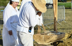 Część artystyczno-rozrywkowa imprezy rozpoczęła się o godz. 17:00 w Nadbrzeziu przy ul. Powiśle pokazem obrzędowym pn. „Od kłosa do chleba”. Pokaz specjalnie na tę okazję przygotowali członkowie „Stowarzyszeń Razem dla Nadbrzezia” i „Nasze Sioło”, zademonstrowali widzom jak sianokosy wyglądały w przeszłości. Następnie symbolicznie przekazali chleb Gospodarzom Dożynek, którzy podzielili się nim z publicznością. Burmistrz Miasta Sandomierza Paweł Niedźwiedź dokonał oficjalnego otwarcia, po czym nastąpiła dalsza część artystyczna wydarzenia na scenie.