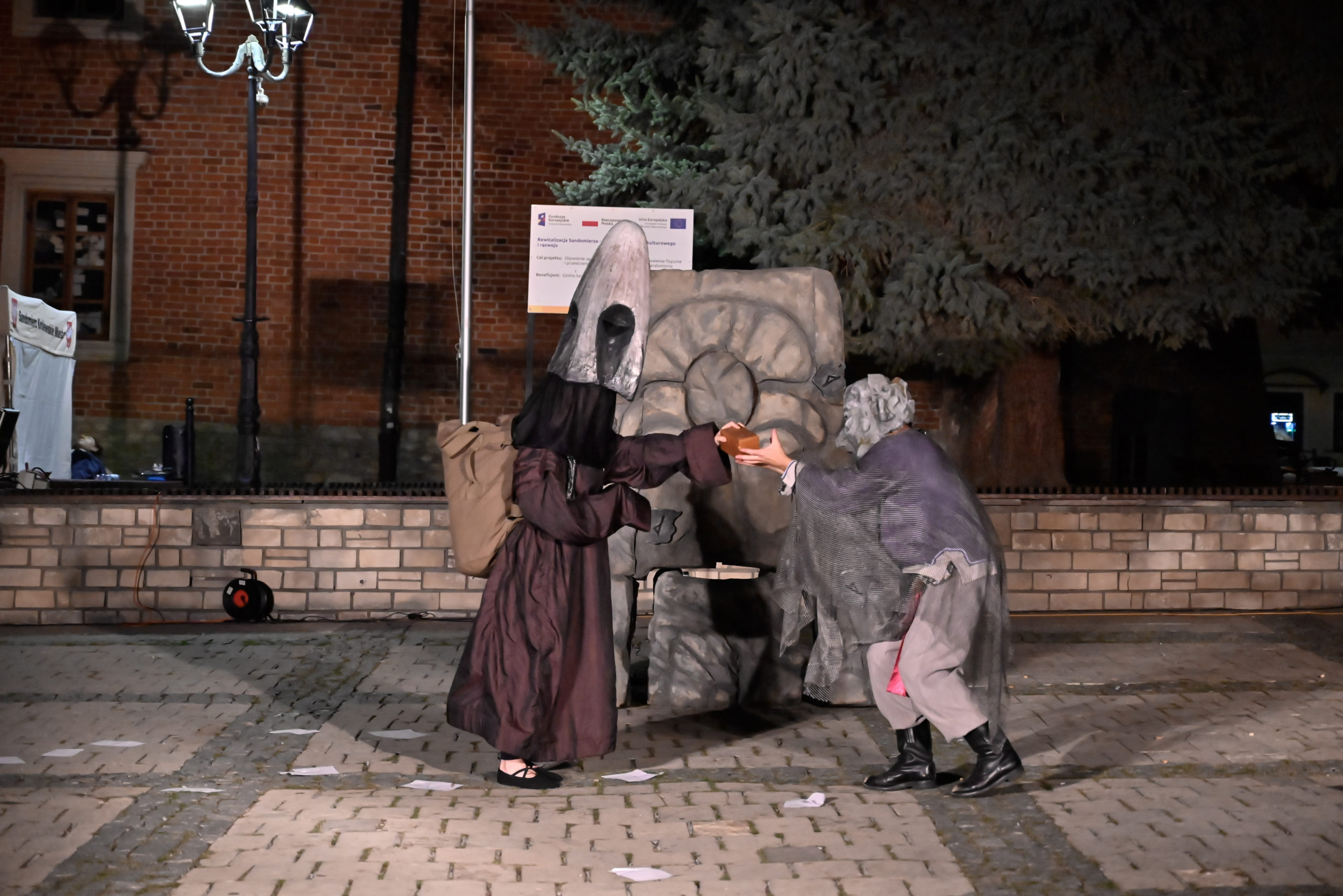 Na zakończenie dnia, na Rynku Starego Miasta, odbył się poruszający spektakl uliczny „Kamienny” w wykonaniu Krakowskiego Teatru Ulicznego „Scena Kalejdoskop”. Widowisko inspirowane słowiańskimi tradycjami i osnute wokół historii miłosnej w niezwykły sposób połączyło teatr, muzykę i symbolikę kamienia. Publiczność nagrodziła artystów gromkimi brawami.