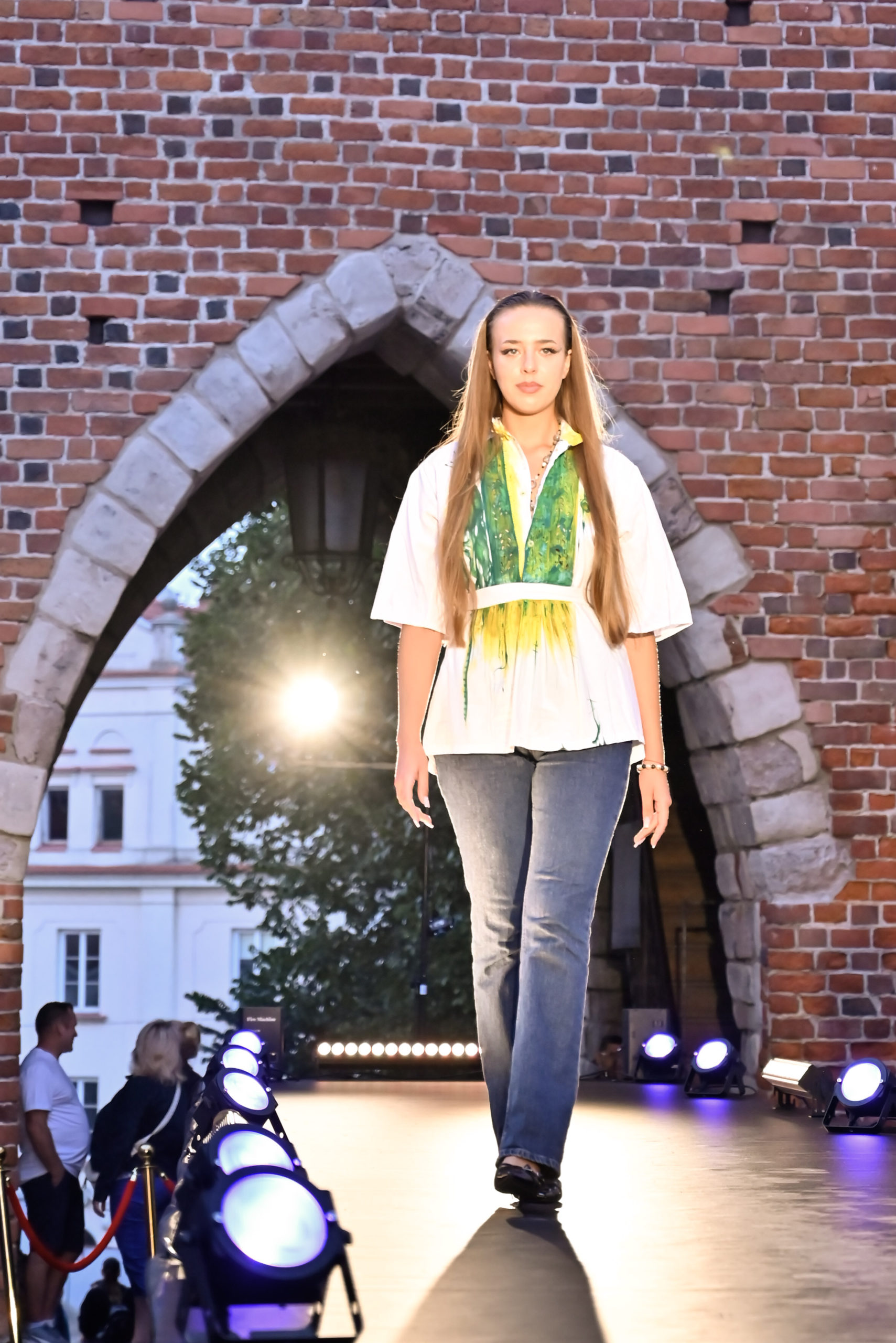 W wyjątkowej scenerii przy Bramie Opatowskiej odbył się pokaz mody przygotowany przez Justynę Wesołowską z Fundacji Artystycznej GA MON. Zjawiskowe kreacje inspirowane strukturą i barwą krzemienia pasiastego, szlachetne tkaniny oraz unikatowa biżuteria zachwyciły publiczność. W rolę prowadzącej znakomicie wcieliła się Justyna Kuchta, nadając wydarzeniu elegancji i energii. Ogromne podziękowania kierujemy również do mistrzów jubilerstwa – Cezarego Łutowicza i Ryszardy Krzesimowskiej, których niepowtarzalne prace dopełniły stylizacji i nadały im niepowtarzalnego charakteru.