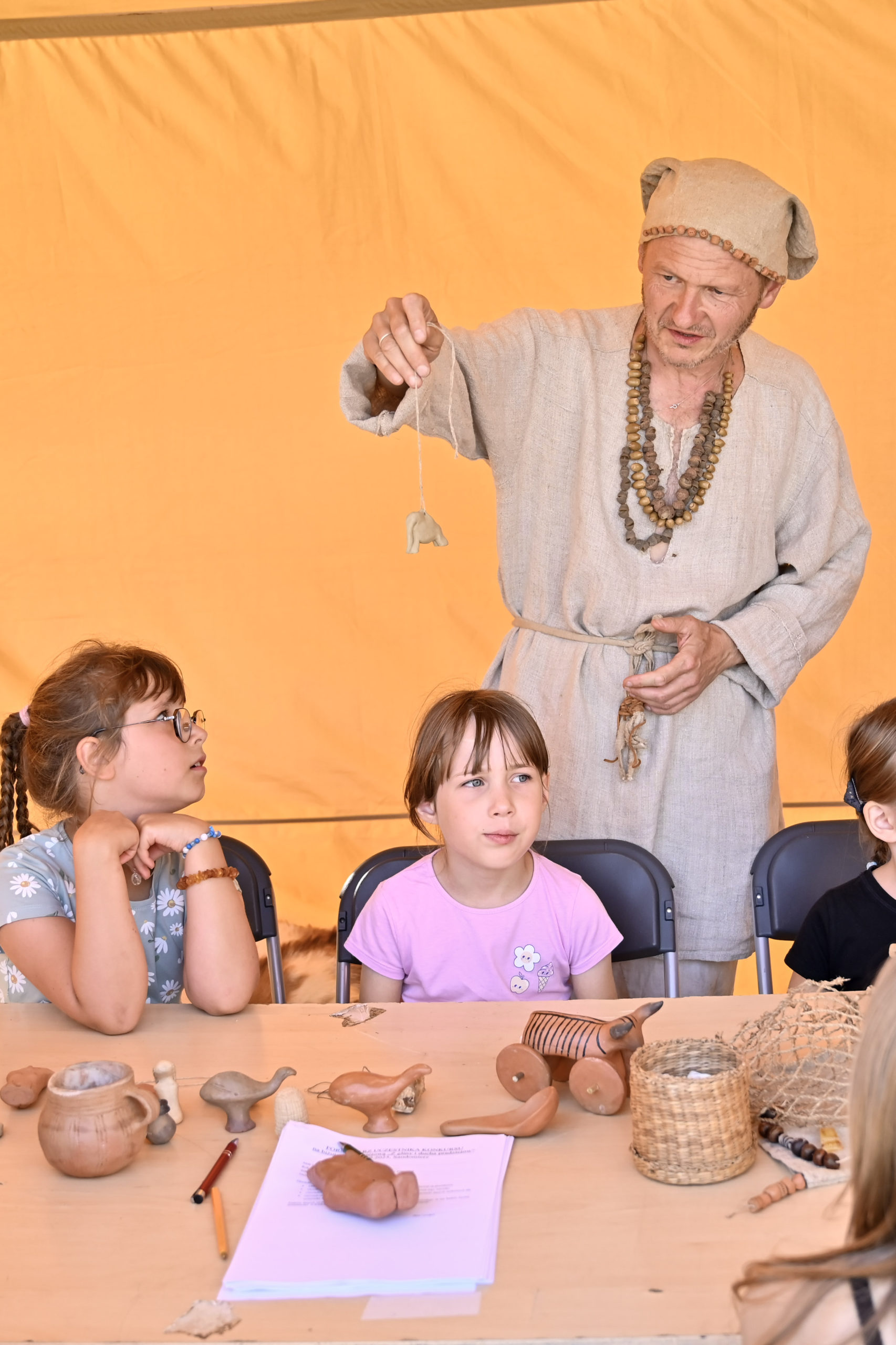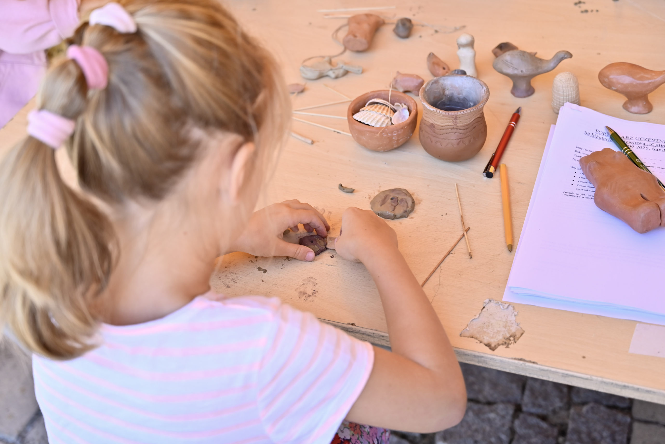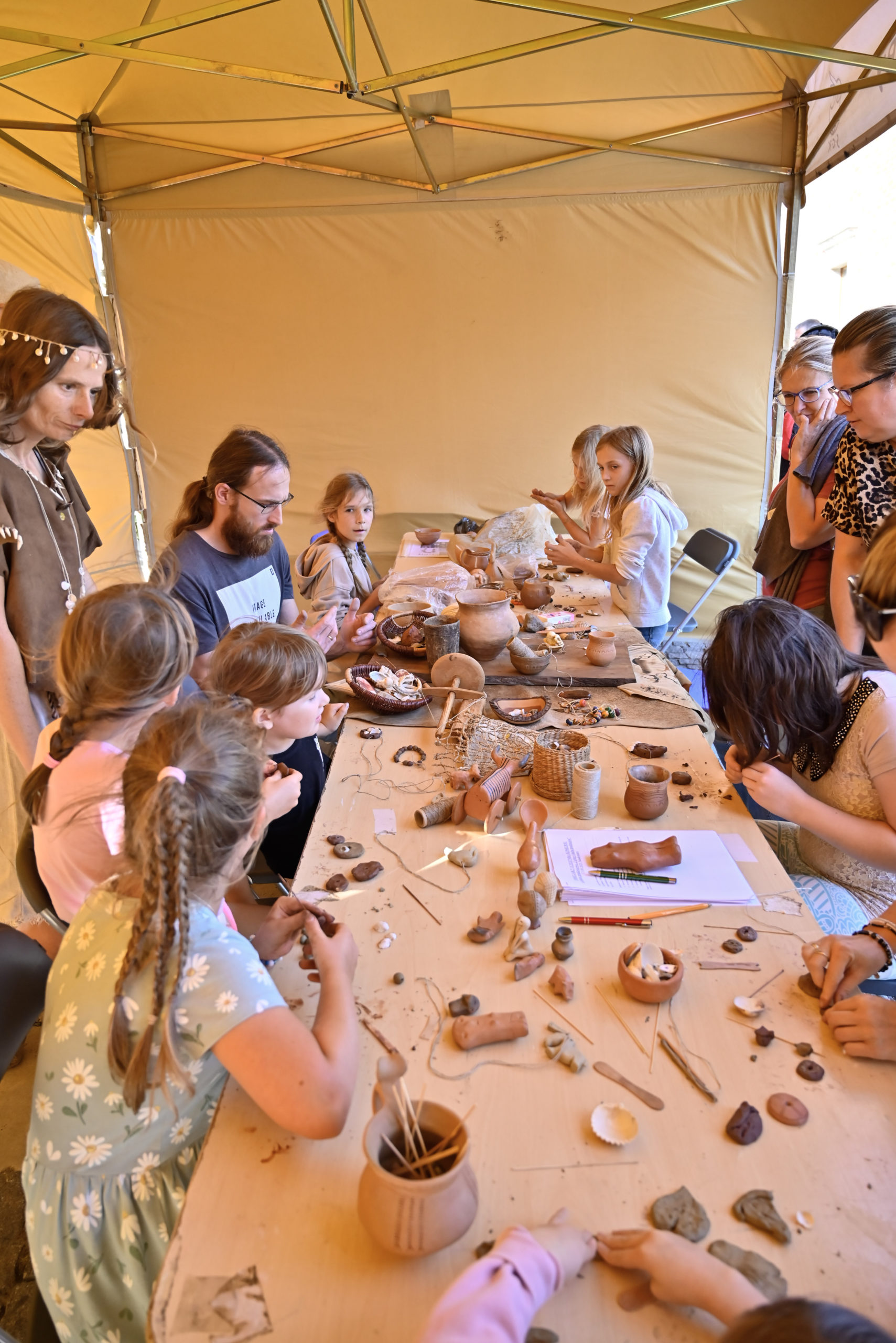 Kolejną atrakcją były warsztaty biżuterii pradziejowej, które poprowadzili Monika i Zbigniew Bajka z Pracowni Archeologicznej „Trzy Epoki”. Opowieści o dawnych ozdobach, repliki historycznych przedmiotów zdobniczych oraz możliwość stworzenia własnej biżuterii sprawiły, że każdy uczestnik mógł na chwilę przenieść się w świat pradawnych tradycji. Na zakończenie odbył się konkurs z nagrodami ufundowanymi przez Urząd Miejski w Sandomierzu, który dostarczył dzieciom i młodzieży wielu emocji i radości.
