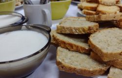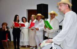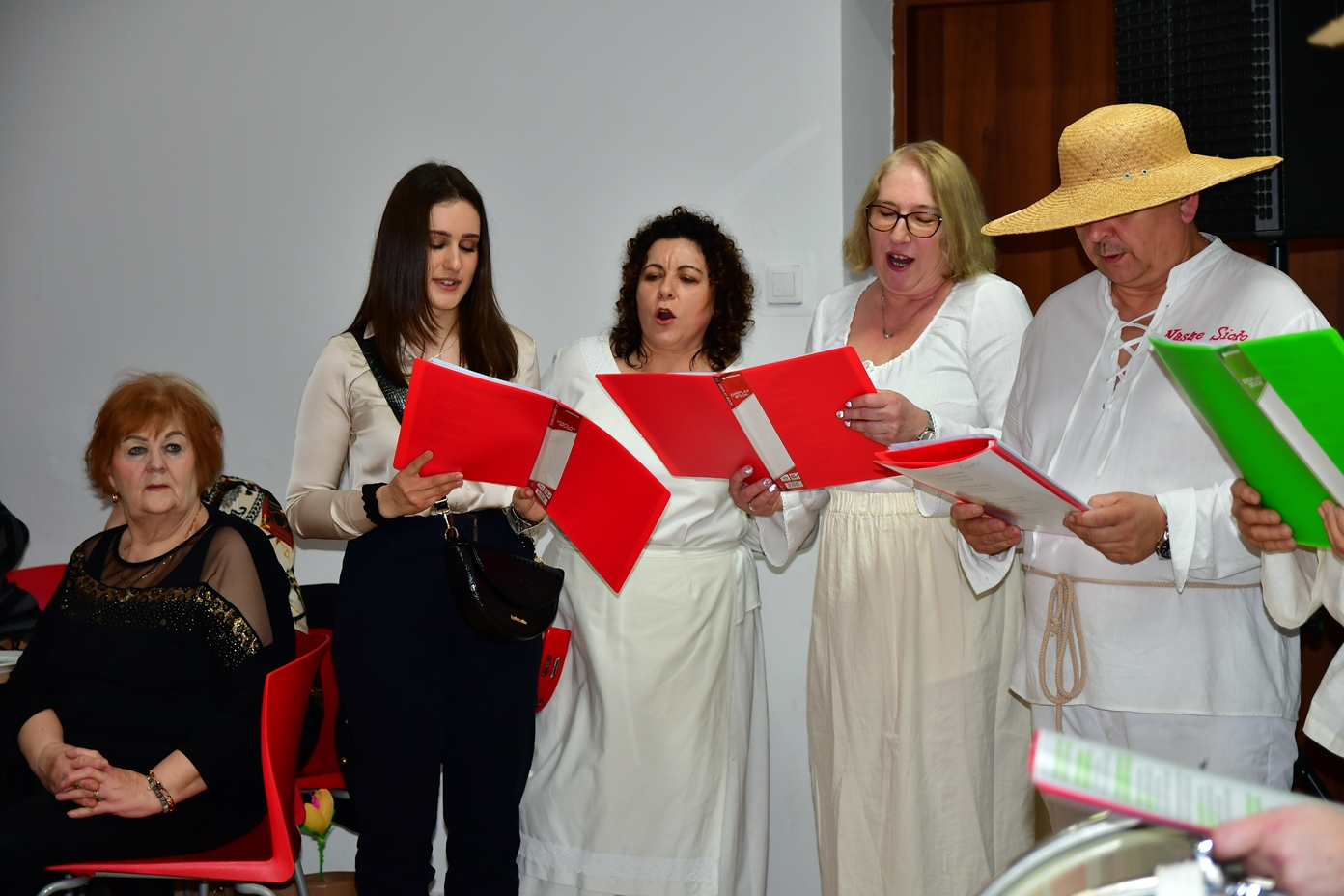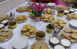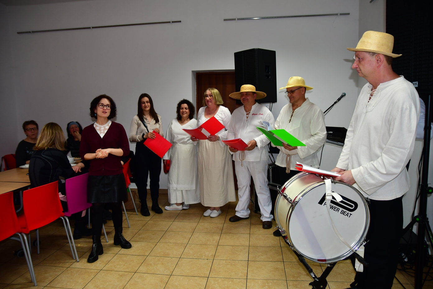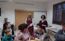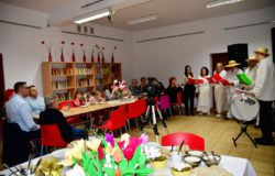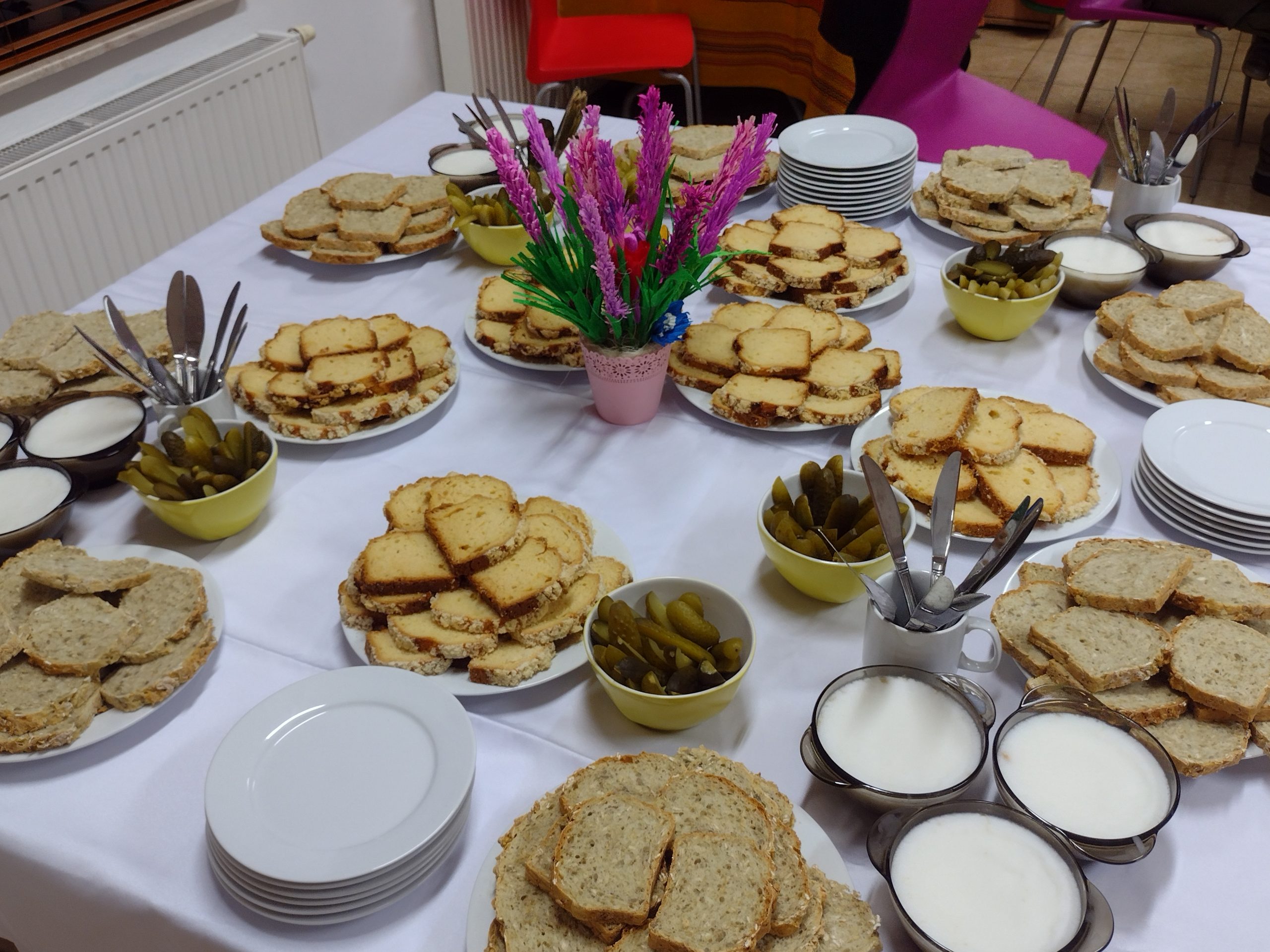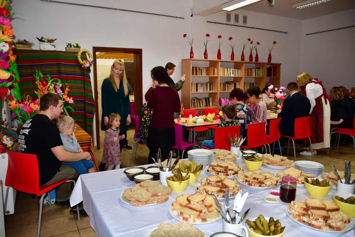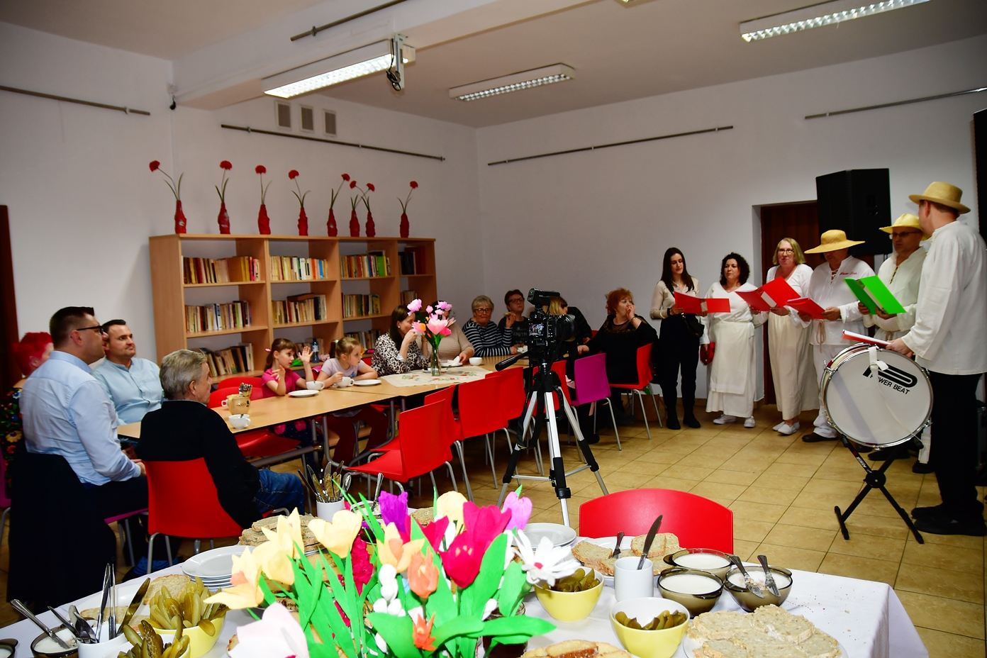 W dalszej części spotkania odbyła się biesiada z muzyką i śpiewem. O radosną atmosferę i skoczne przyśpiewki zadbała debiutująca grupa muzyczna powstała ze współpracy stowarzyszenia Nasze Sioło i Stowarzyszenia „Razem dla Nadbrzezia”. Nie zabrakło również pysznego poczęstunku – na stole pojawił się gorący i sycący bogracz, domowy chleb, smalec, ogórki kiszone, ciasto drożdżowe oraz miody.