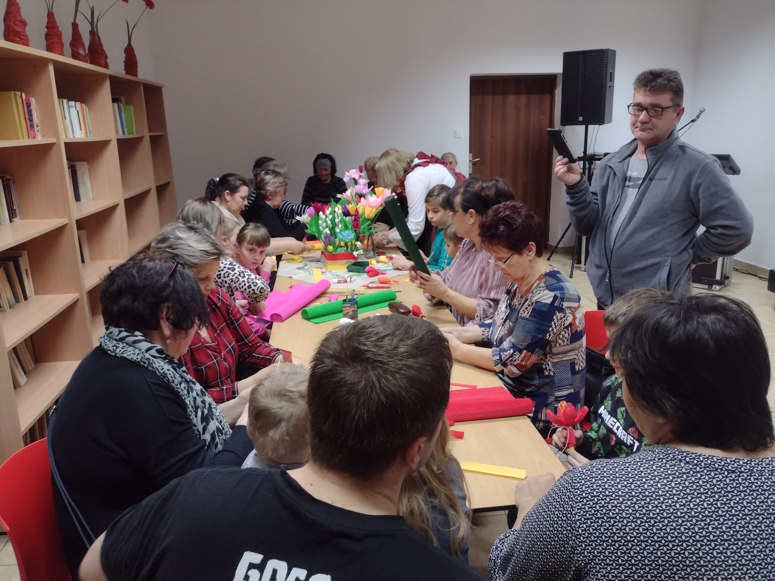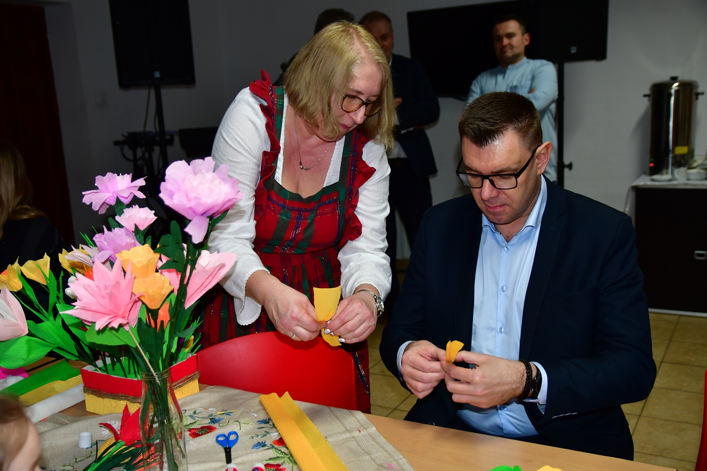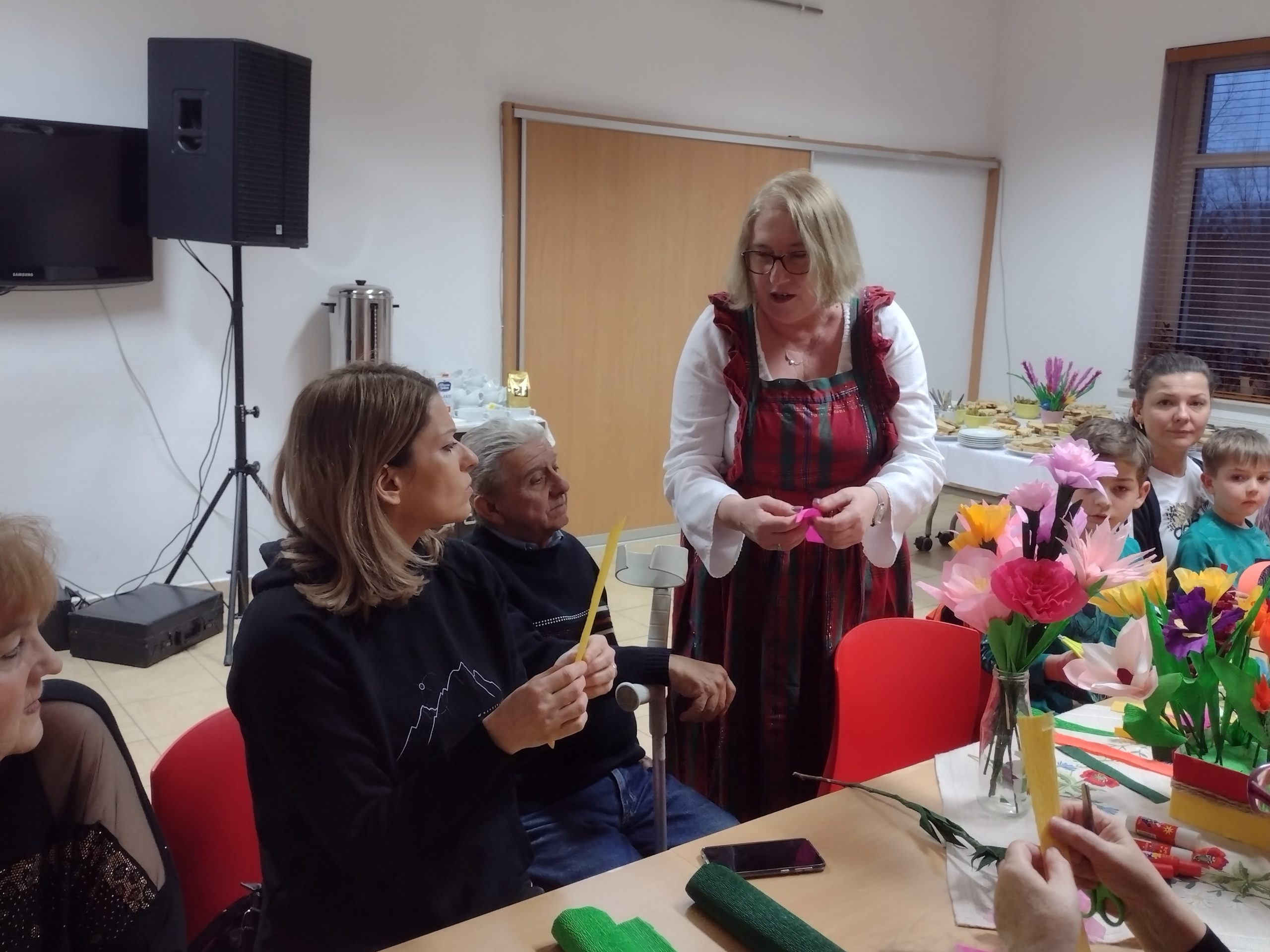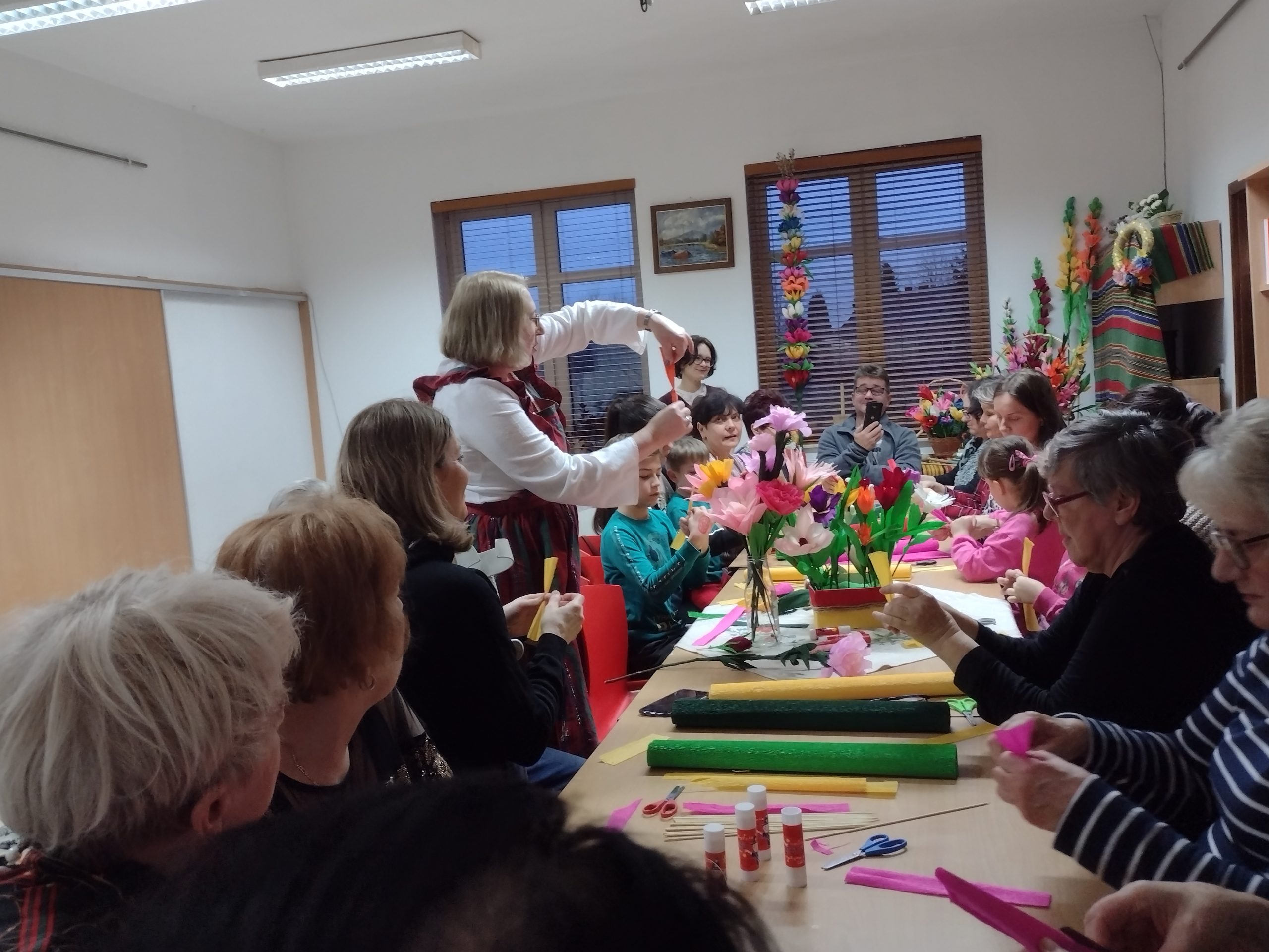 SCKW piątek, 23 lutego 2024, w Dworku Koćmierzów odbyło się wydarzenie pt. „Na ludową nutę” – spotkanie z tradycją. Rozpoczęło się ono od warsztatów rękodzielniczych, podczas których uczestnicy wykonywali kwiaty z kolorowej krepiny. Kwiaty te można wykorzystać do stworzenia własnej palmy wielkanocnej lub można je osadzić na piku i wykorzystać jako ozdobę do wazonu. Instrukcji, krok po kroku, udzielała pani Celina Chmiel, działająca w Stowarzyszeniu „Razem dla Nadbrzezia” i Nasze Sioło.