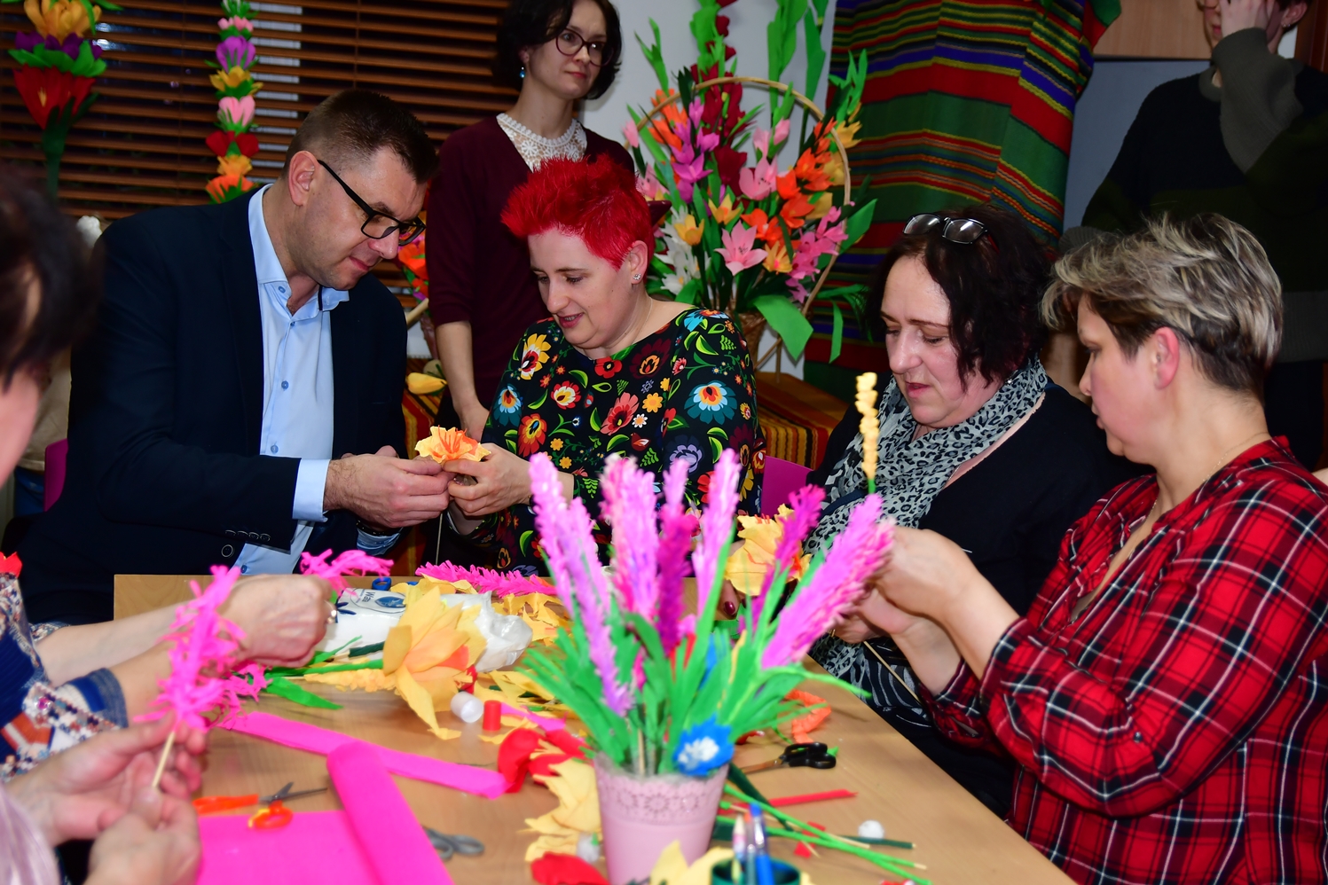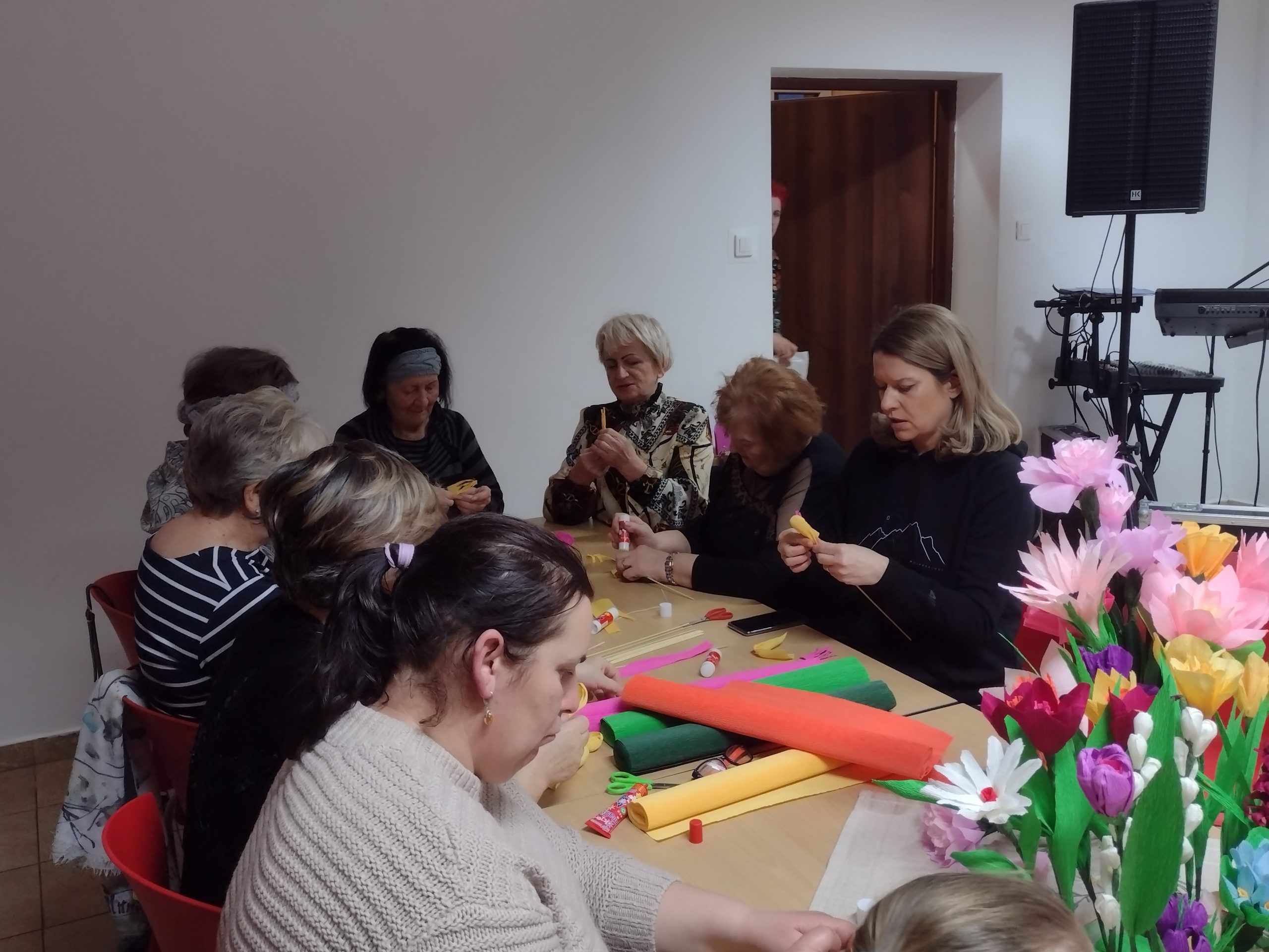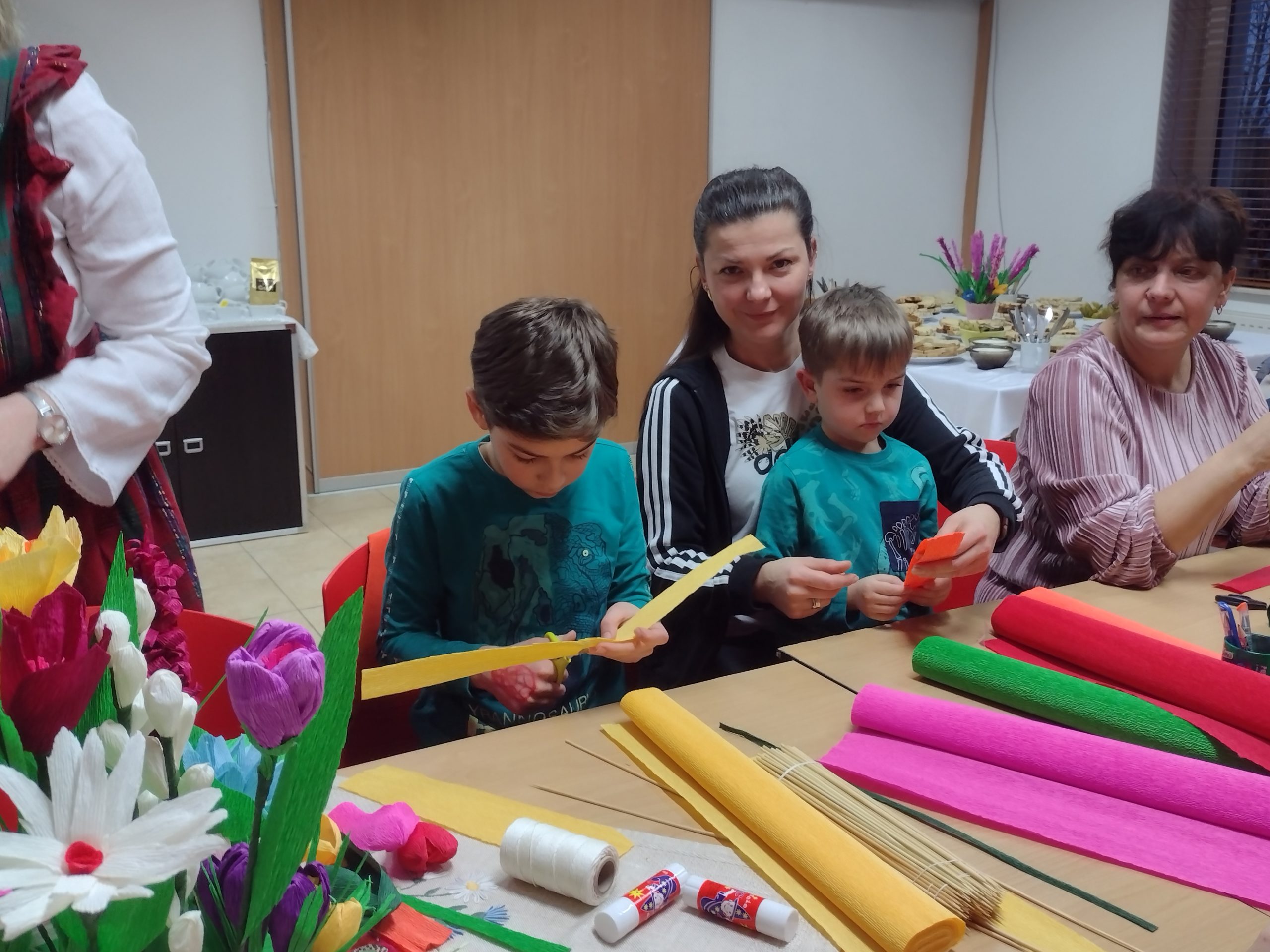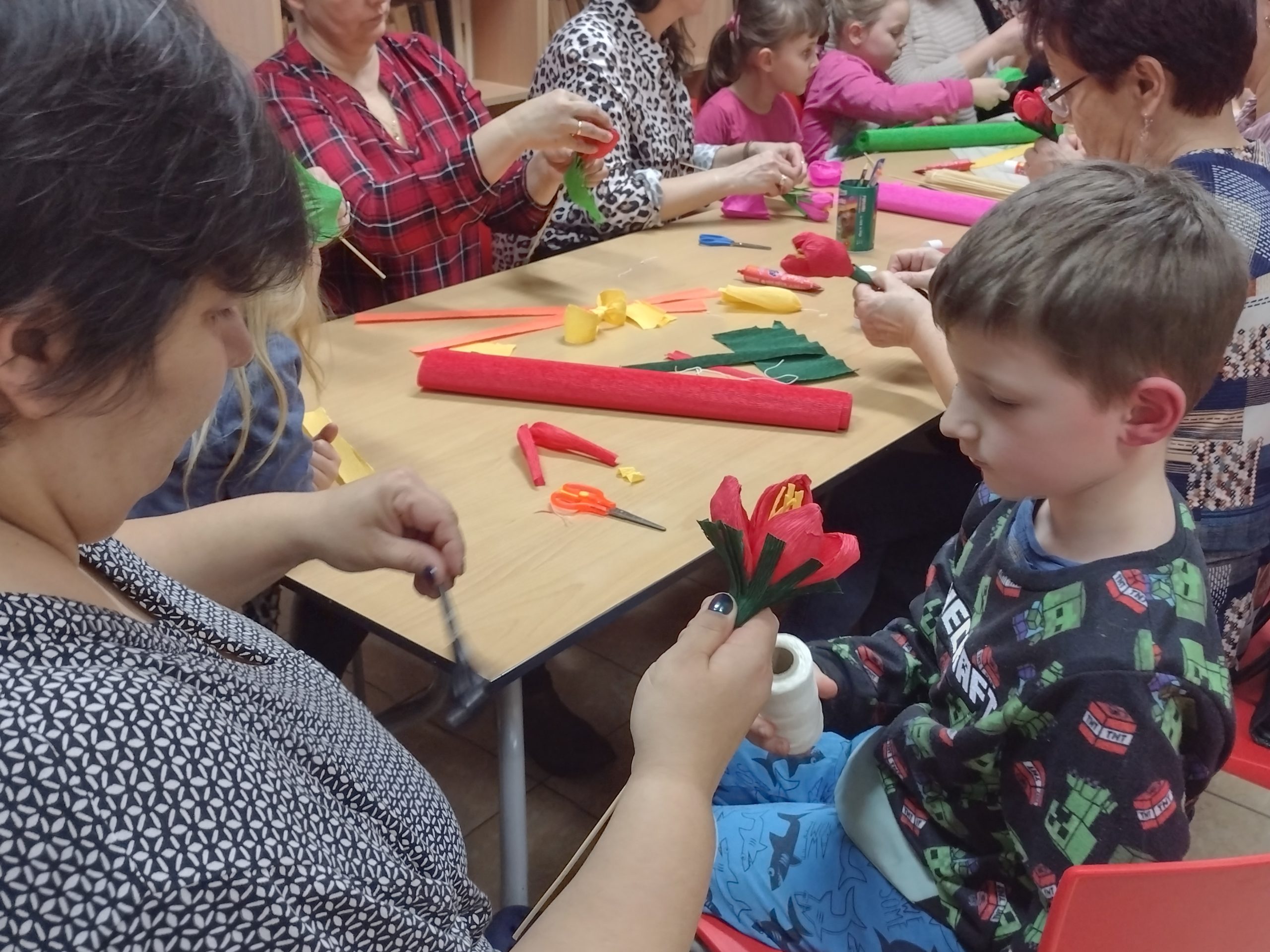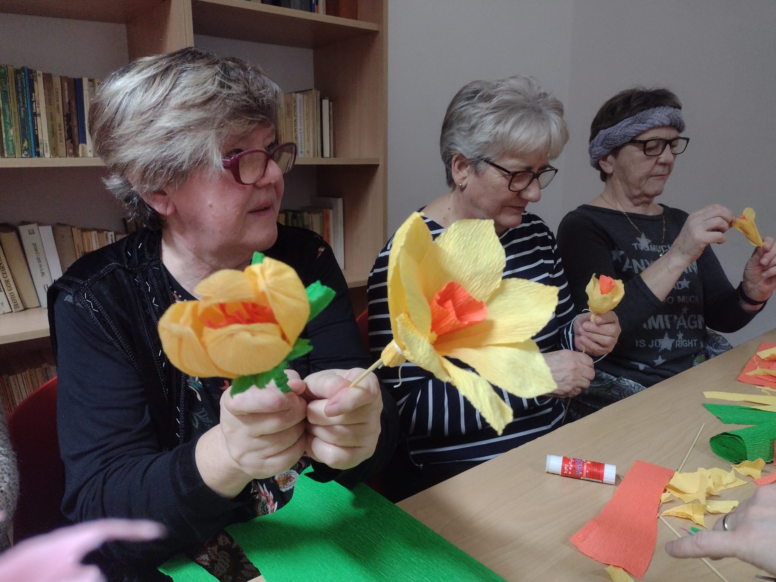 SCKW piątek, 23 lutego 2024, w Dworku Koćmierzów odbyło się wydarzenie pt. „Na ludową nutę” – spotkanie z tradycją. Rozpoczęło się ono od warsztatów rękodzielniczych, podczas których uczestnicy wykonywali kwiaty z kolorowej krepiny. Kwiaty te można wykorzystać do stworzenia własnej palmy wielkanocnej lub można je osadzić na piku i wykorzystać jako ozdobę do wazonu. Instrukcji, krok po kroku, udzielała pani Celina Chmiel, działająca w Stowarzyszeniu „Razem dla Nadbrzezia” i Nasze Sioło.