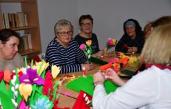Dziękujemy serdecznie podopiecznym i opiekunom z Dziennego Domu Pobytu w Sandomierzu za odwiedziny i udział w warsztatach. Było nam bardzo miło, mogąc spędzić wspólnie czas na tworzeniu kwiatów i rozmowach. Mamy nadzieję, że dzięki połączeniu autobusowemu będziemy się częściej spotykać w Dworku na różnych ciekawych warsztatach i wydarzeniach tematycznych.