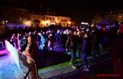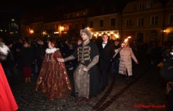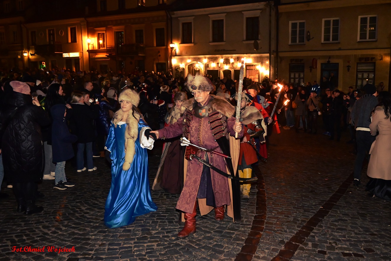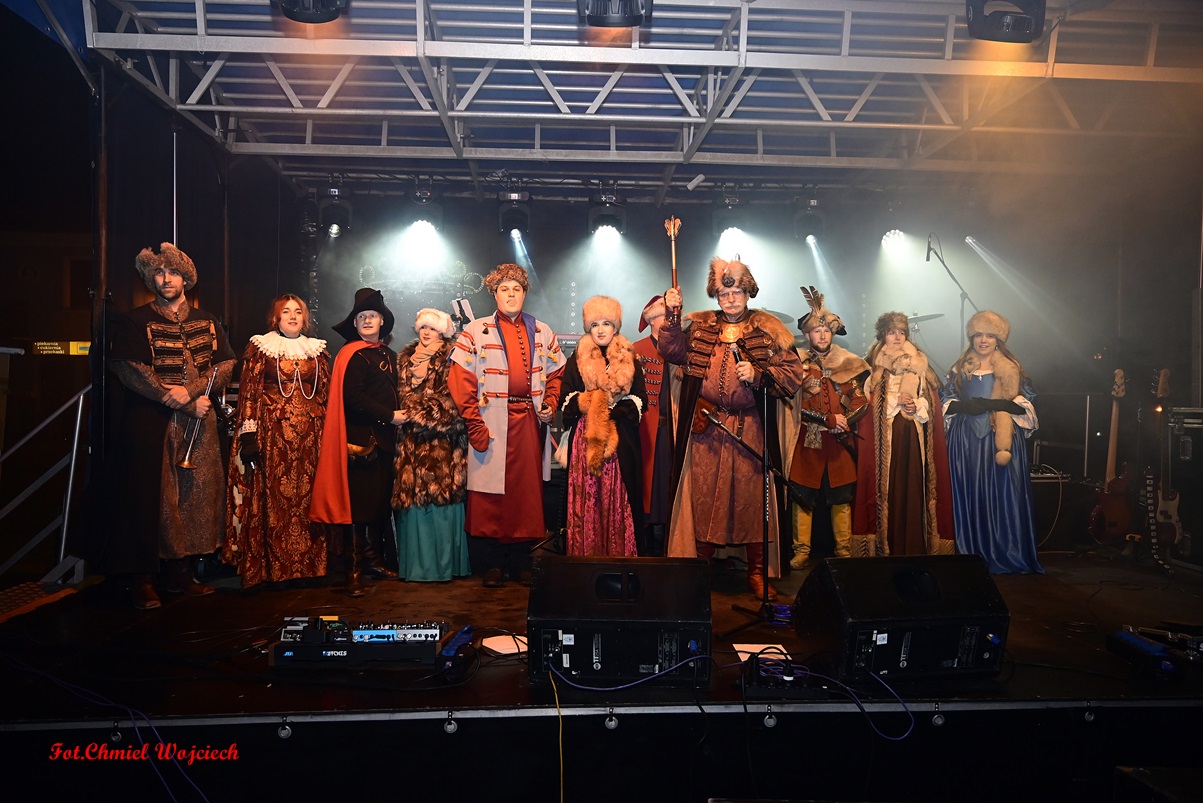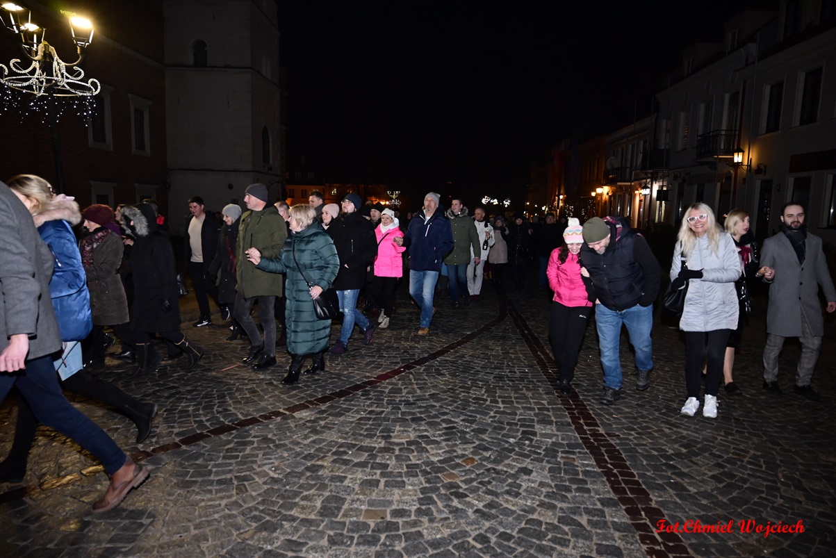 Na kilkanaście minut przed północą swoje życzenia złożyli wszystkim zgromadzonym pan Marcin Marzec, burmistrz Sandomierza, i dyrektor Sandomierskiego Centrum Kultury, pani Kamila Kremiec-Panek. O północy w niebo wystrzeliły kolorowe lasery, tworząc w powietrzu i ścianach kamienic spektakularne noworoczne iluminacje.  O tej samej godzinie nie zabrakło również tradycyjnie tańczonego poloneza- prawdziwej i unikatowej wizytówki sylwestrowego Sandomierza, która rok w rok przyciąga rzesze mieszkańców i turystów! Korowód poprowadziła jak zawsze wspaniała Chorągiew Rycerstwa Ziemi Sandomierskiej, zachwycająca bogactwem strojów, wprawą w tańcu, a także postawą i obyczajem.