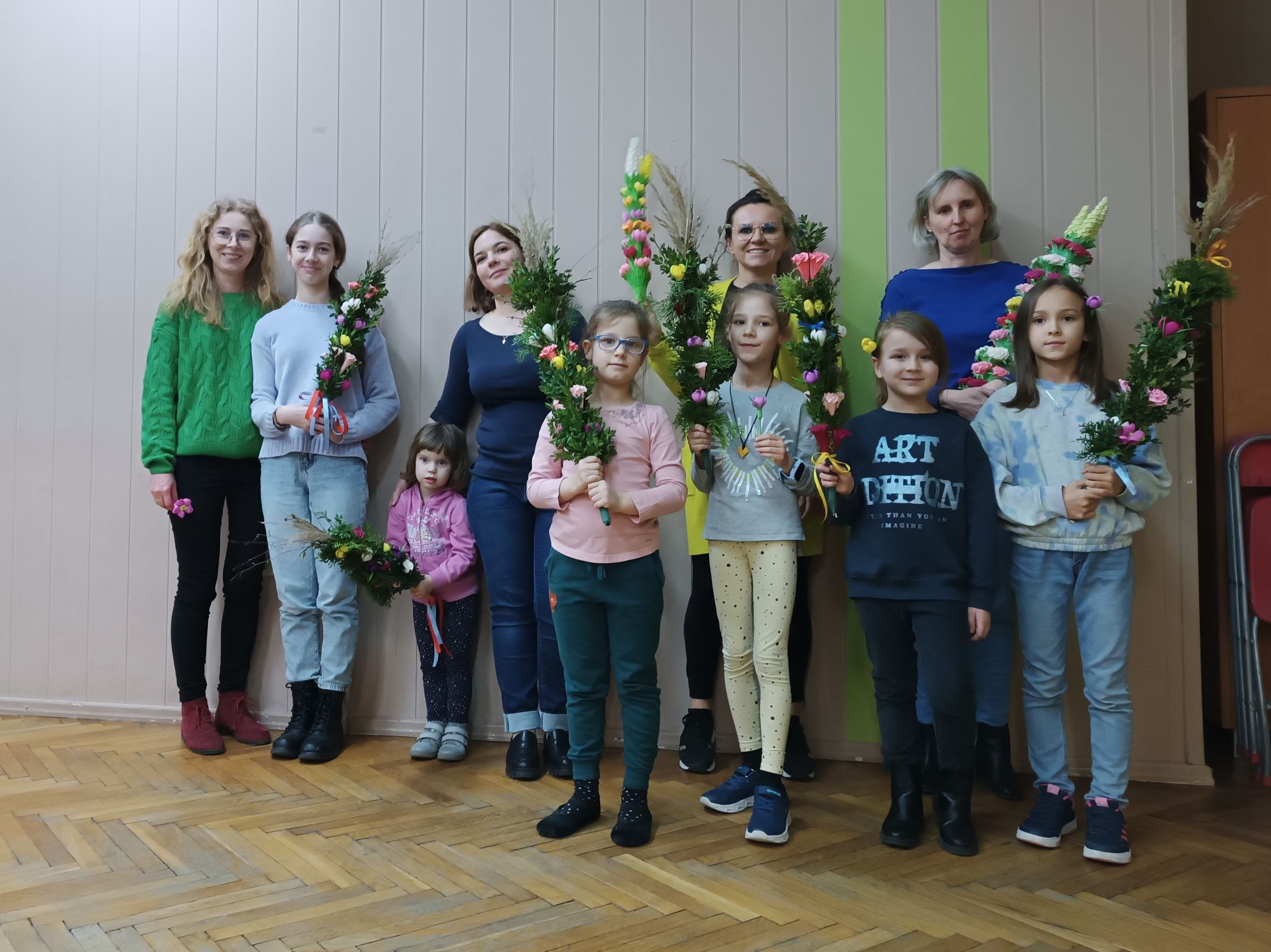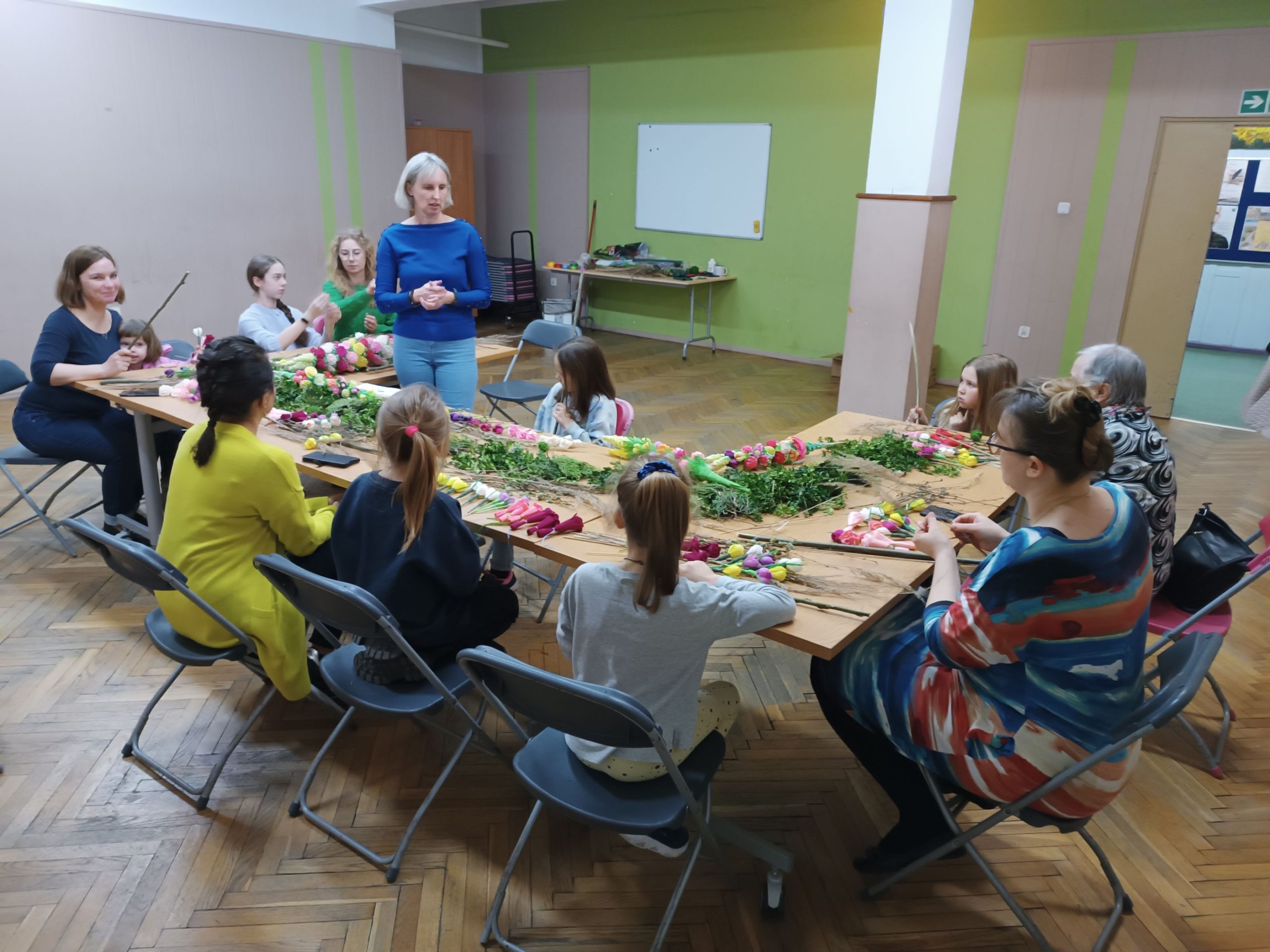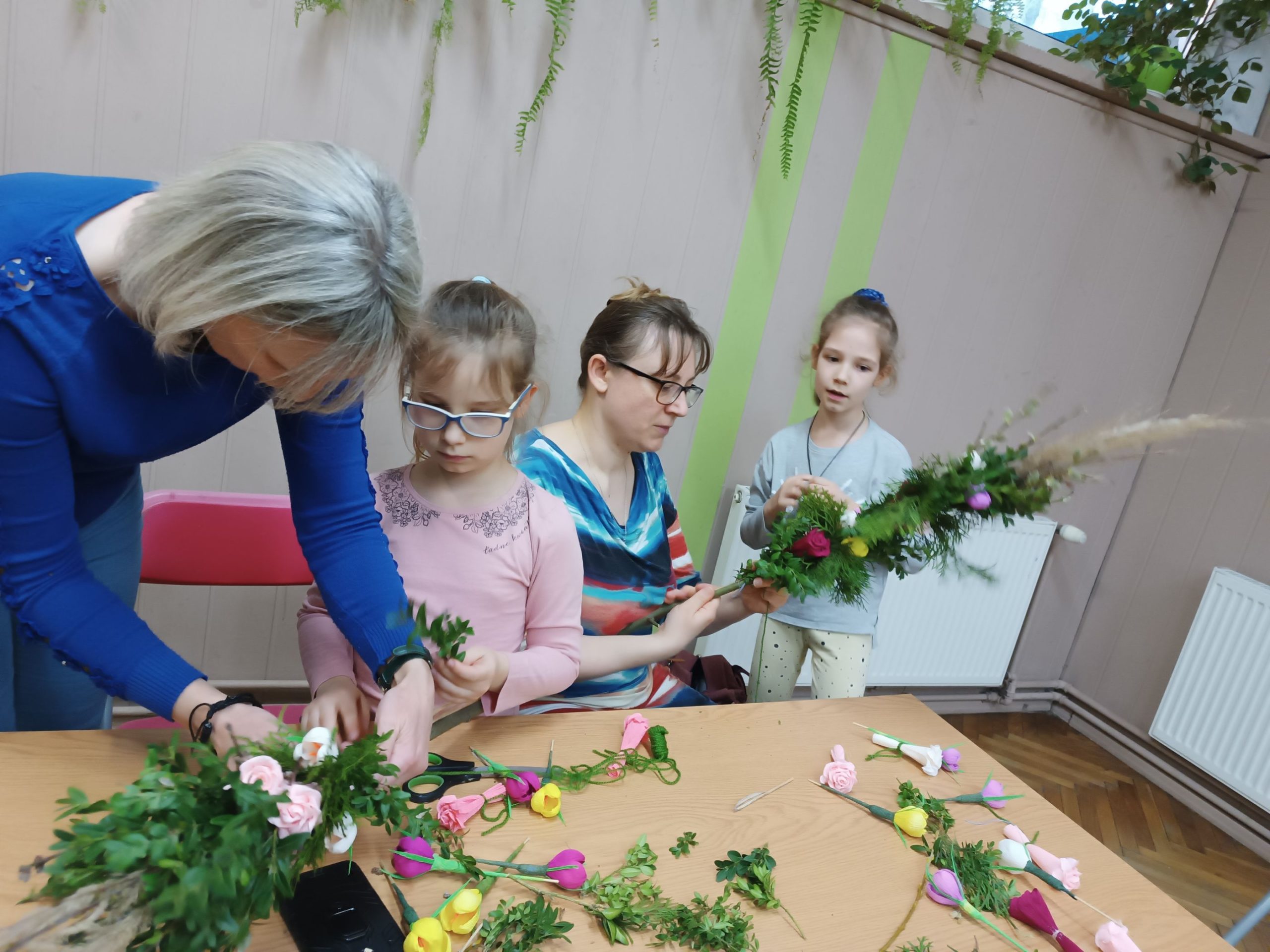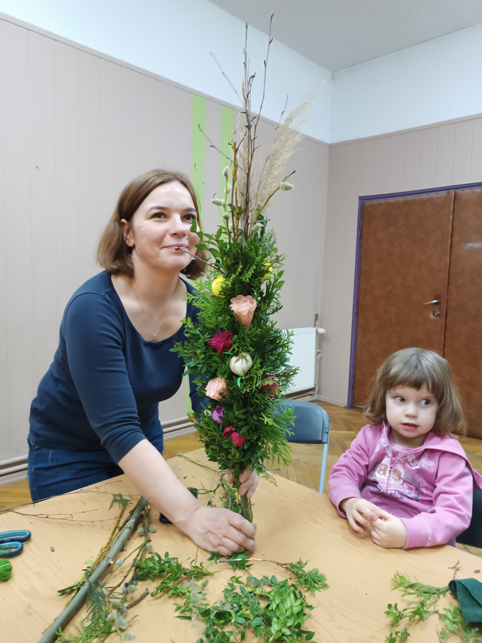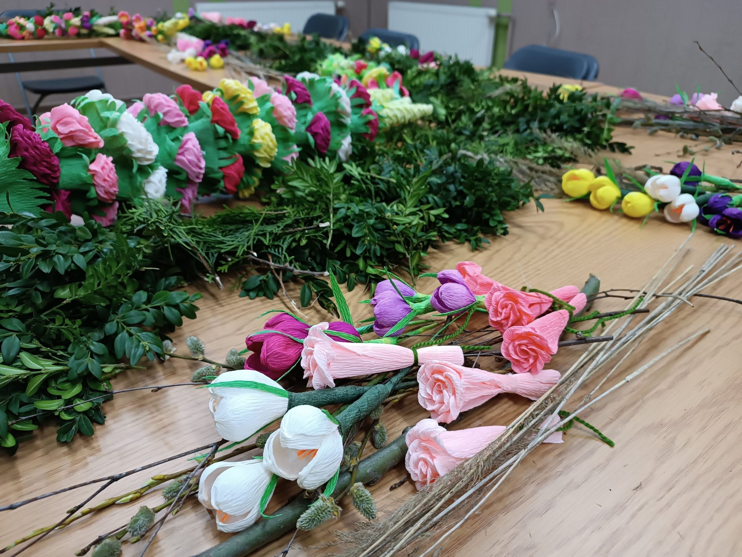 Z kolei 22 marca br. w Ośrodku Promocji Aktywności Kulturalnejpodczas rodzinnych warsztatów wielkanocnych uczestnicy mieli okazję, aby wykonać tradycyjną palmę wielkanocną. Dzieci wraz z rodzicami i dziadkami mieli okazję poznać historię i symbolikę palm oraz nauczyć się technik ich wykonania. Do stworzenia unikatowych palm używano różnorodnych materiałów: gałązki bukszpanu, wierzby i tui, trawy polne i kolorowe kwiaty z bibuły i krepiny.