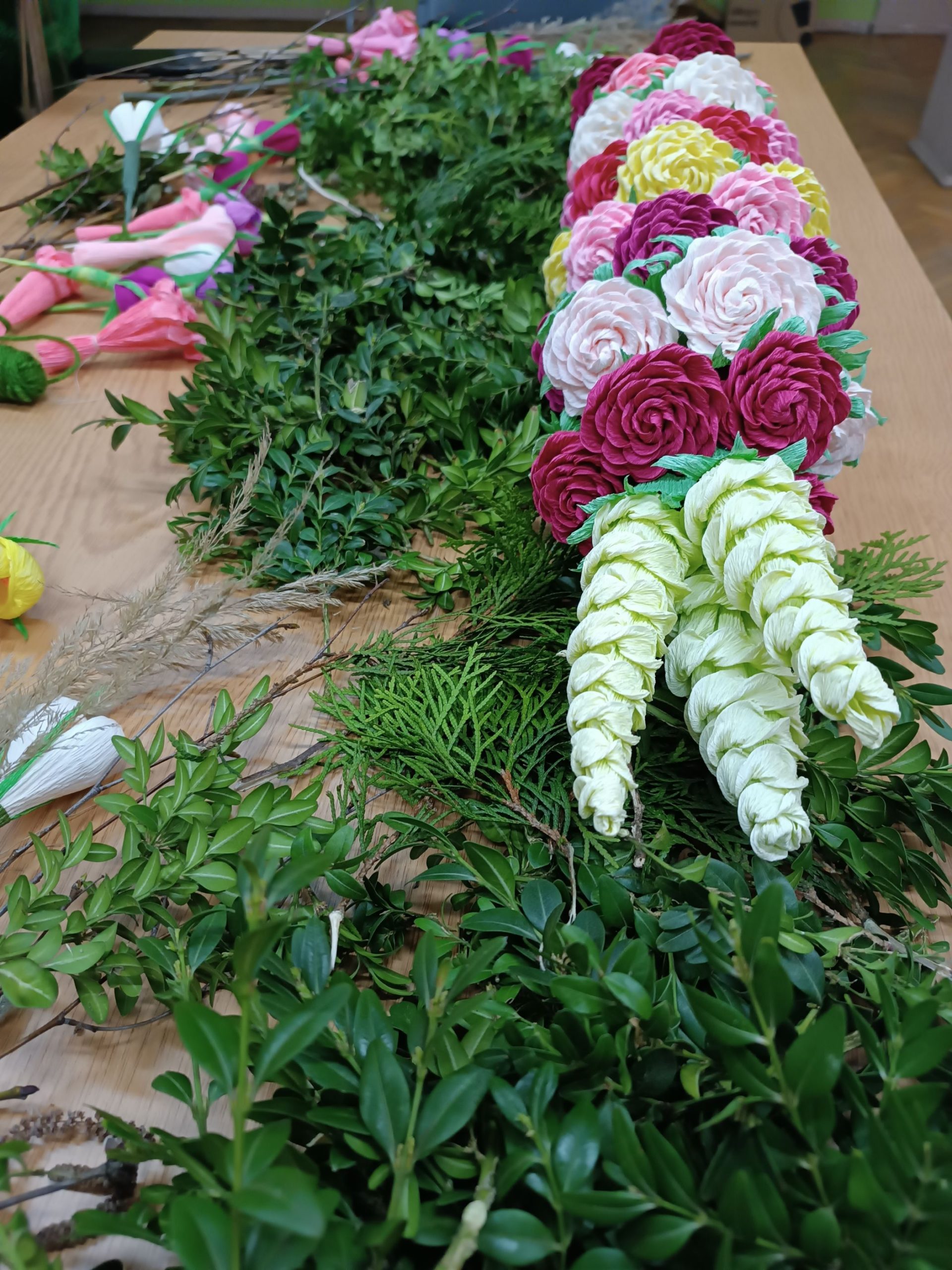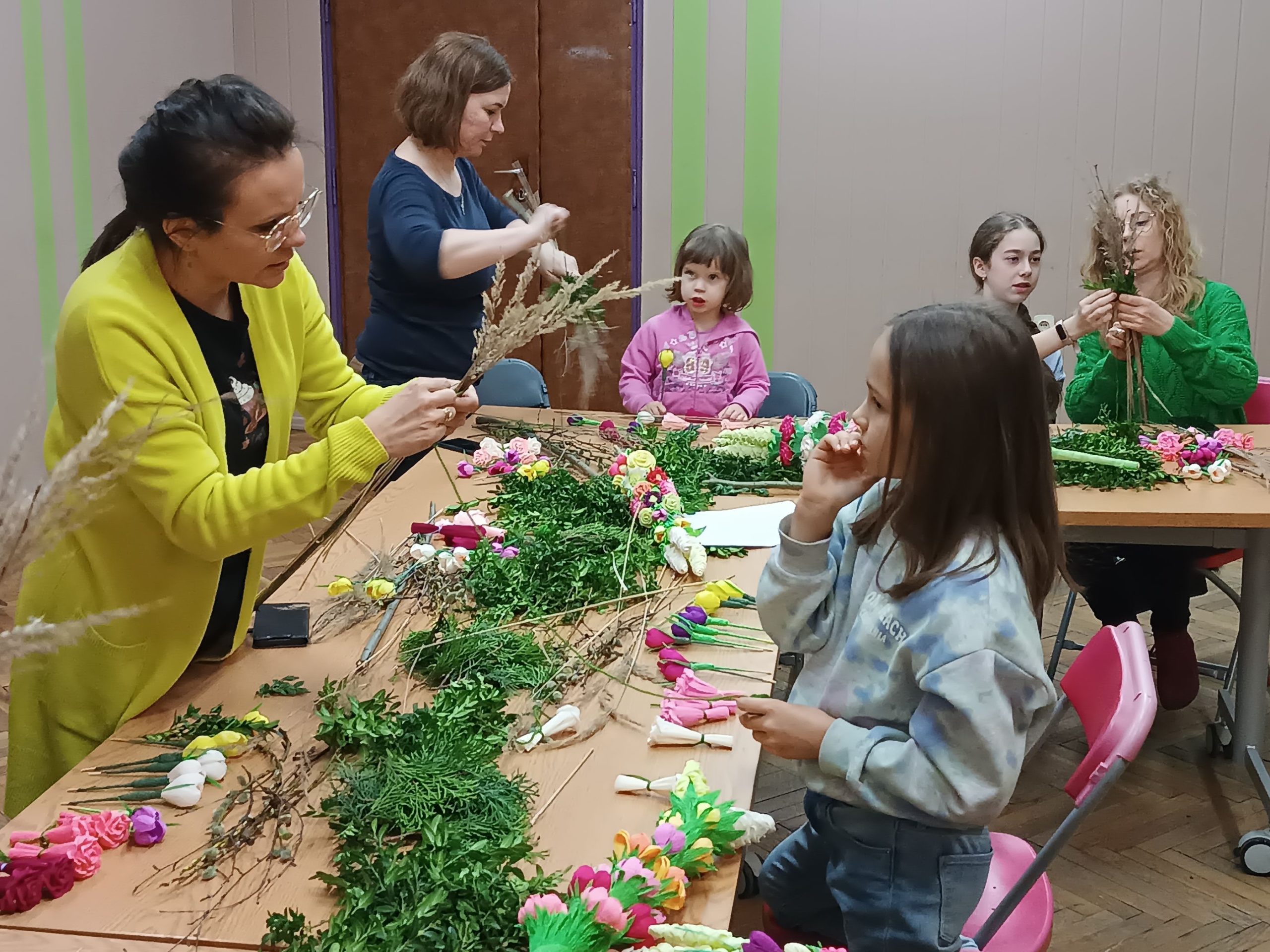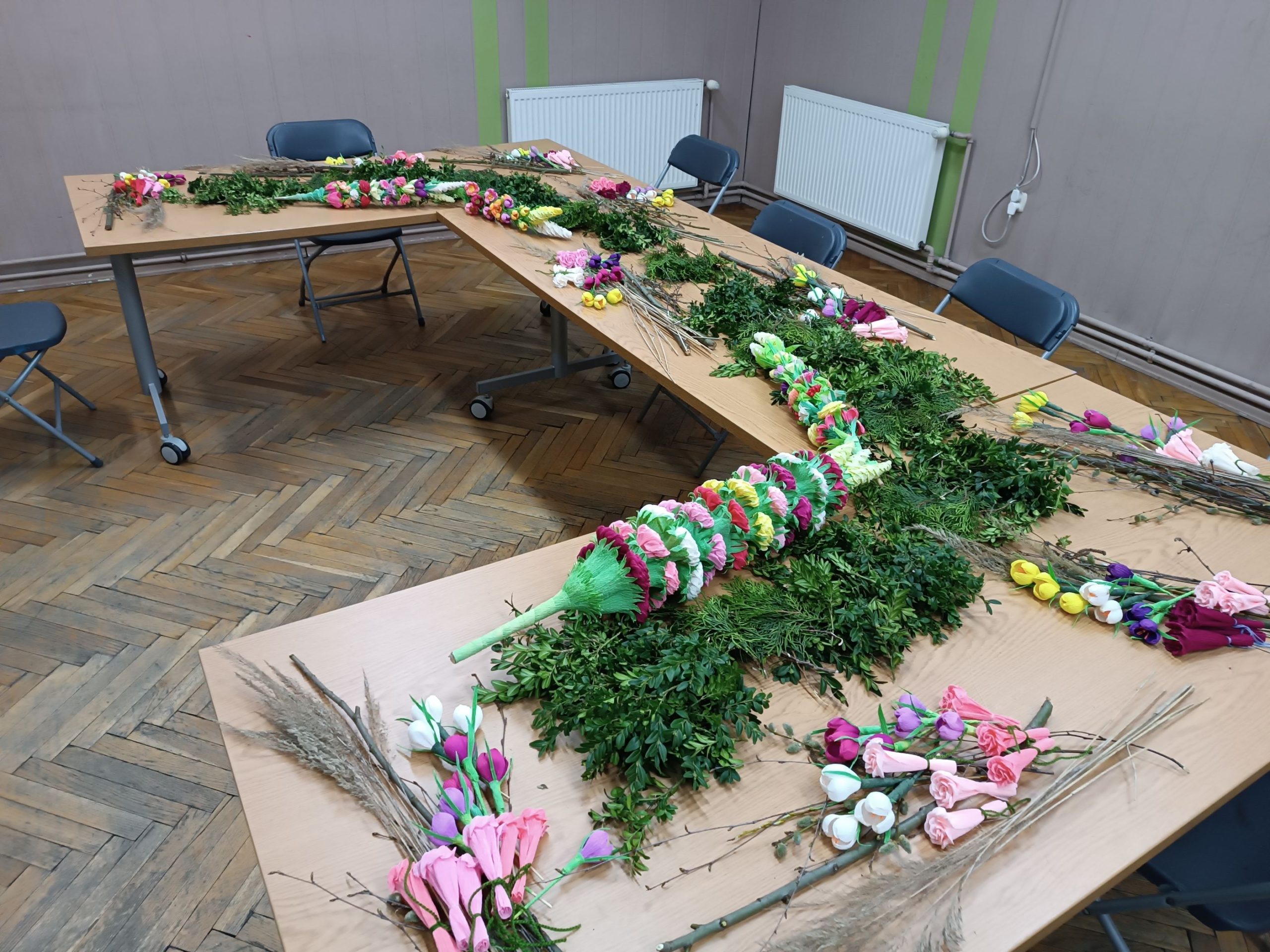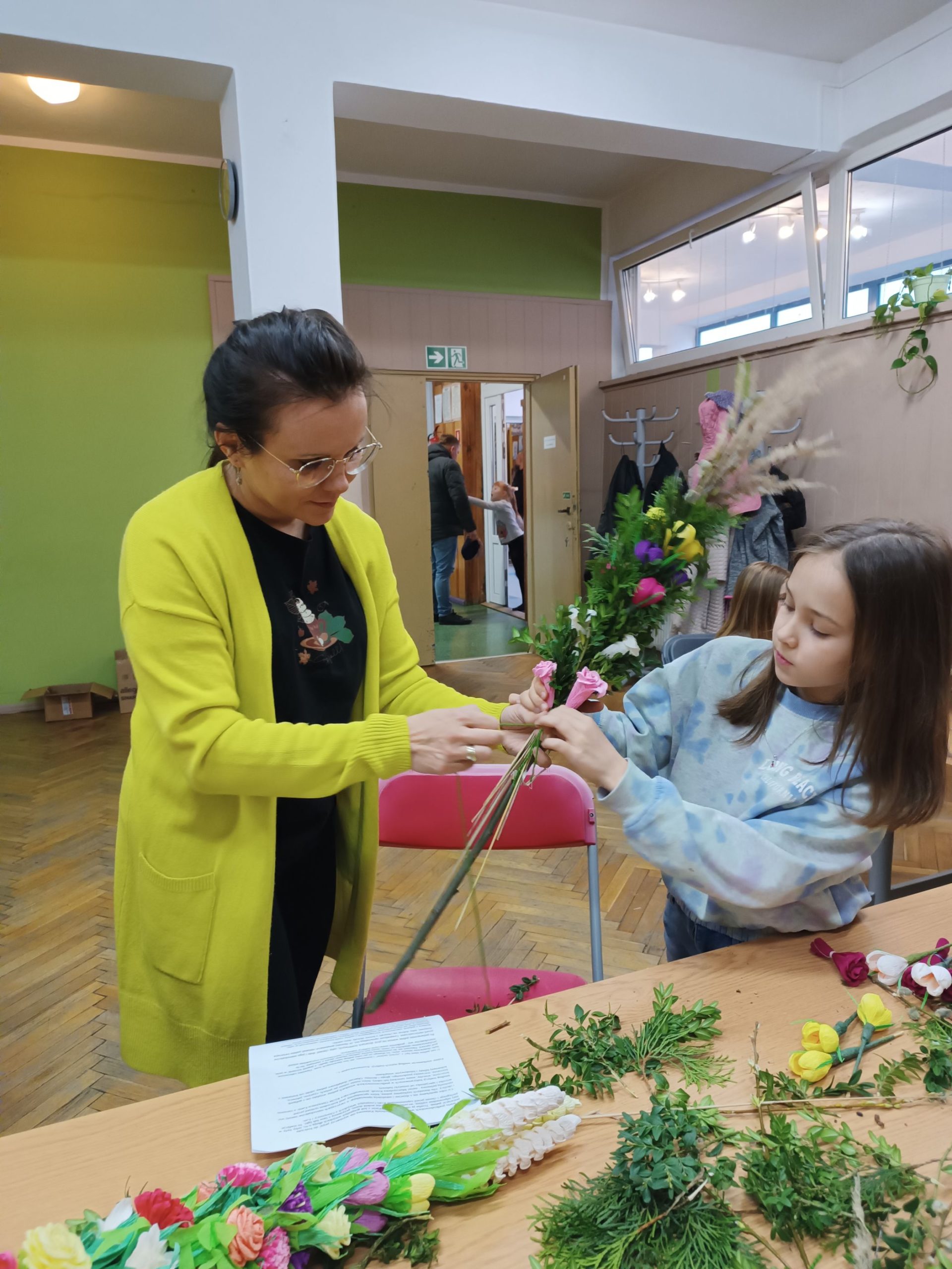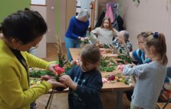 Z kolei 22 marca br. w Ośrodku Promocji Aktywności Kulturalnejpodczas rodzinnych warsztatów wielkanocnych uczestnicy mieli okazję, aby wykonać tradycyjną palmę wielkanocną. Dzieci wraz z rodzicami i dziadkami mieli okazję poznać historię i symbolikę palm oraz nauczyć się technik ich wykonania. Do stworzenia unikatowych palm używano różnorodnych materiałów: gałązki bukszpanu, wierzby i tui, trawy polne i kolorowe kwiaty z bibuły i krepiny.