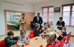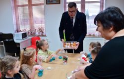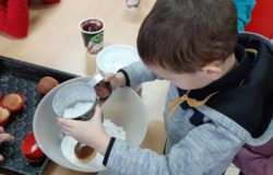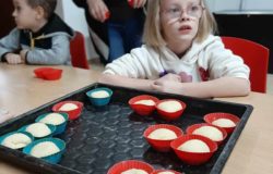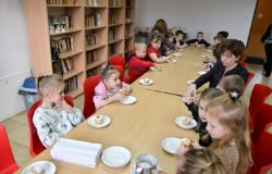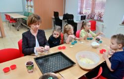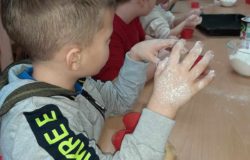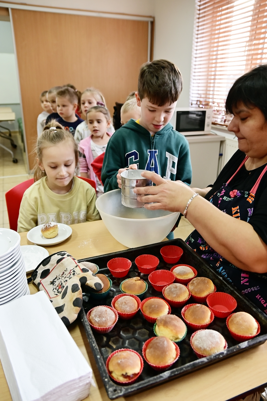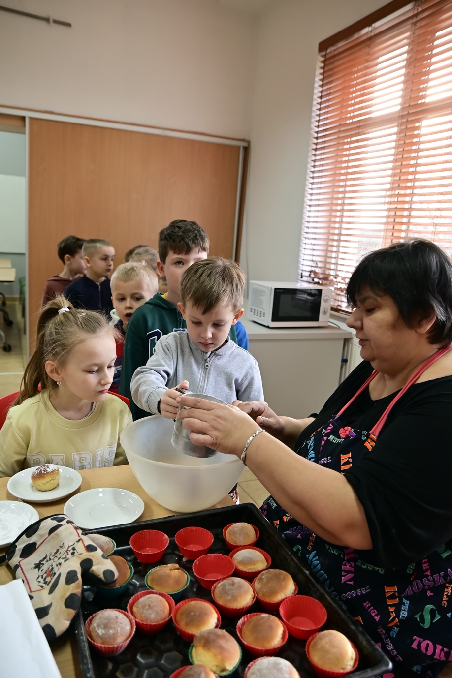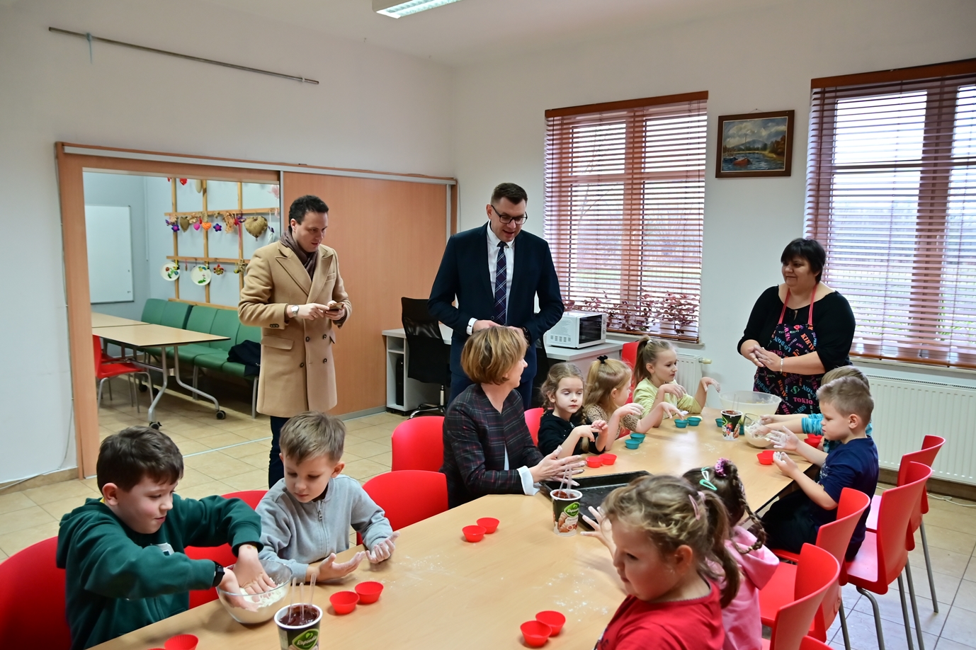 Nie inaczej było w Dworek Koćmierzów, gdzie od samego rana trwały warsztaty pieczenia pączków. W Dworku gościliśmy dwie grupy Przedszkolaków z Przedszkola nr 5 w Sandomierz, które dotarły do nas nowo otwartą linią autobusową nr 6! Gościem specjalnym porannych warsztatów był Burmistrz miasta Sandomierza – pan Marcin Marzec.
