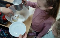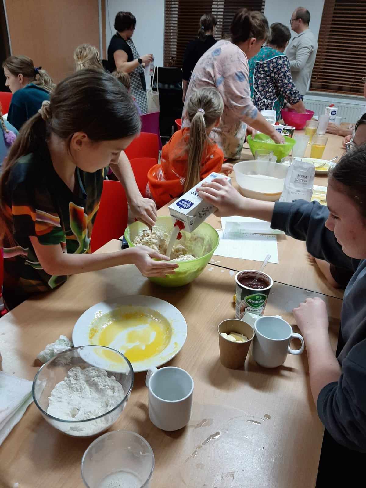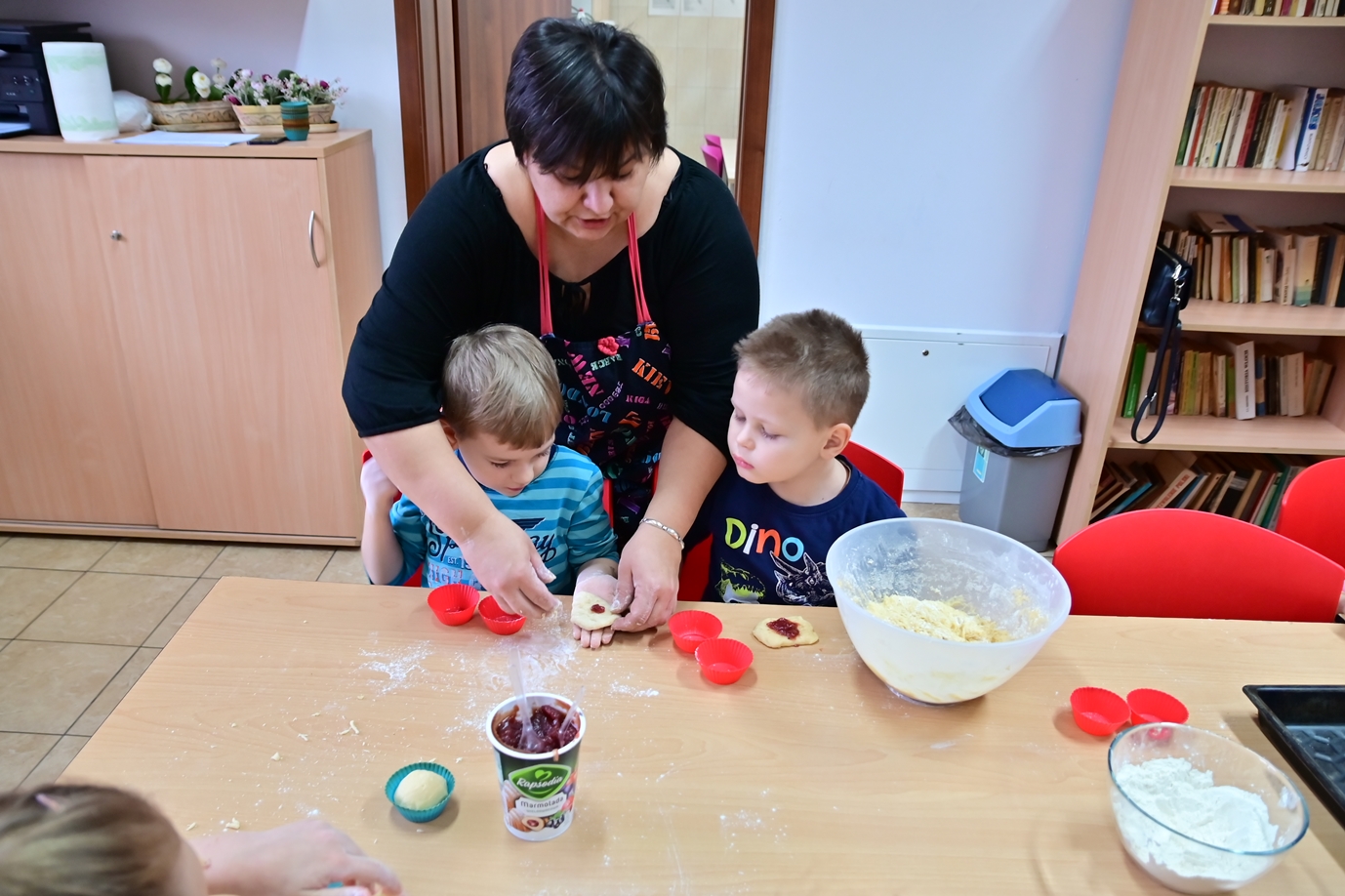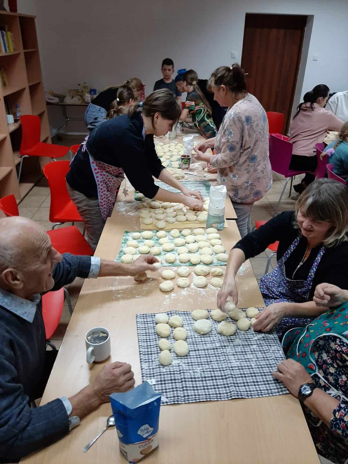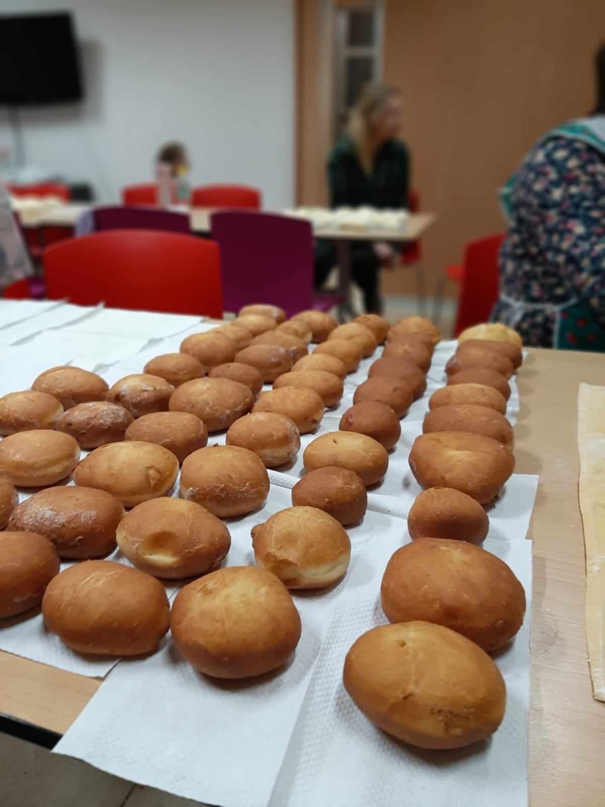 Wieczorem z kolei odbyły się rodzinne, międzypokoleniowe warsztaty „tradycyjnego” smażenia pączków. Spotkanie upłynęło w miłej i słodkiej atmosferze, wśród rozmów i niecierpliwego wyczekiwania na wyrośnięcie ciasta drożdżowego 🙂