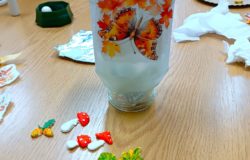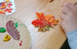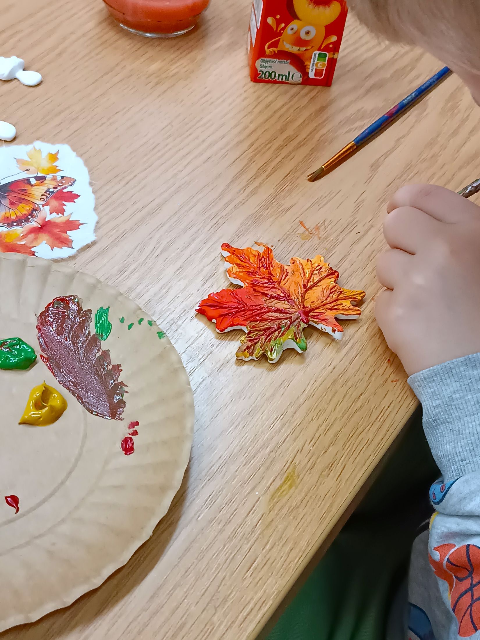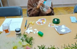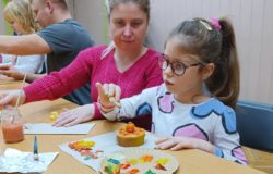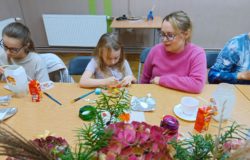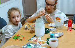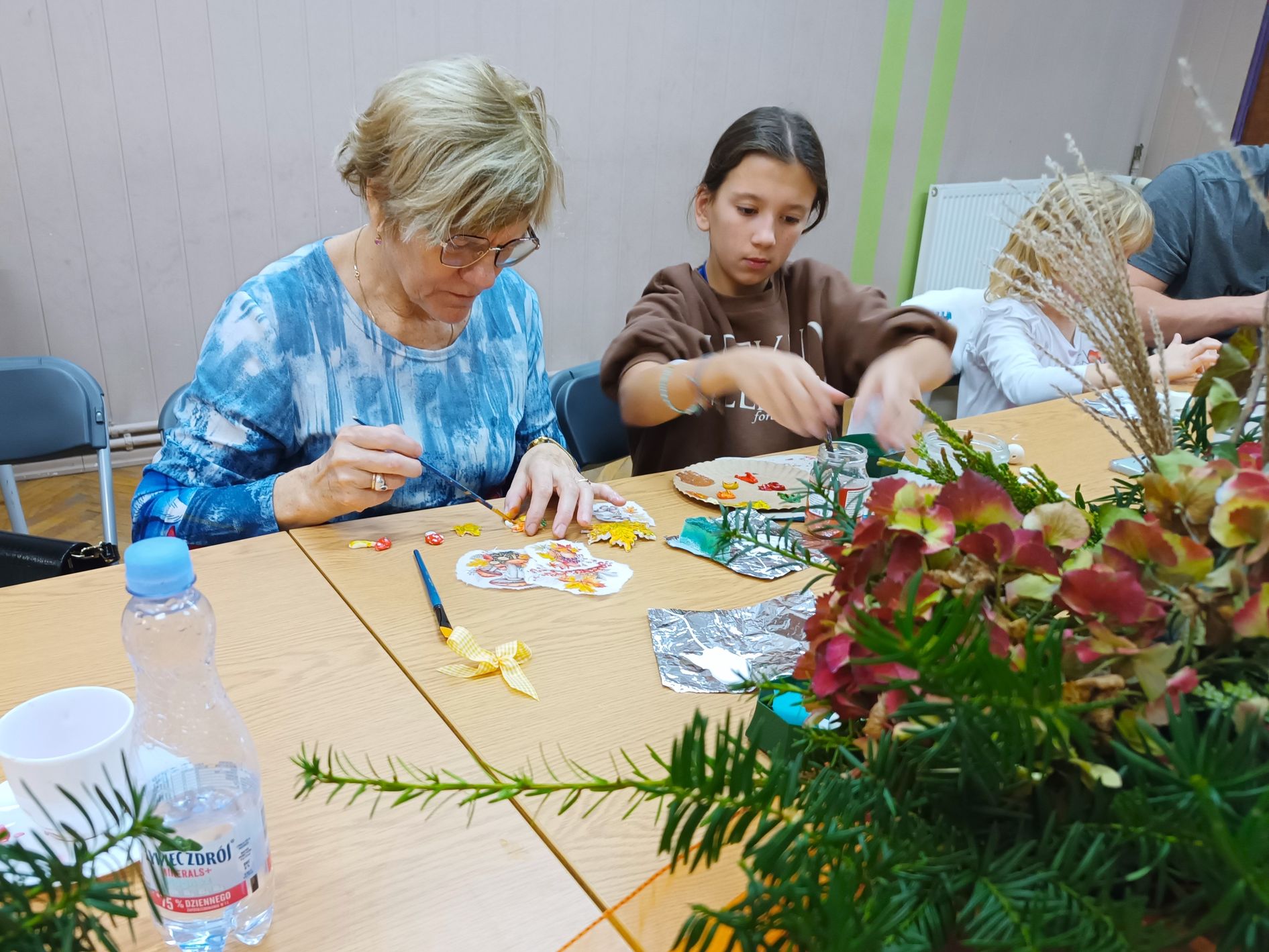 Podczas zajęć uczestnicy poznali różne techniki zdobnicze, pracowali z papierem i farbami, rozwijając zarówno umiejętności plastyczne, jak i kreatywność.