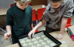 W czwartek, 13 lutego 2025 roku, w Dworku Koćmierzów odbyły się wyjątkowe rodzinne walentynkowe warsztaty kulinarne pt. „Z miłości do słodkości”. Wydarzenie zgromadziło miłośników słodkich wypieków, którzy pod okiem doświadczonej instruktorki – Pani Danusi, przygotowywali kruche ciasteczka w kształcie serca, dekorowane królewskim lukrem oraz czekoladową i błękitną posypką.