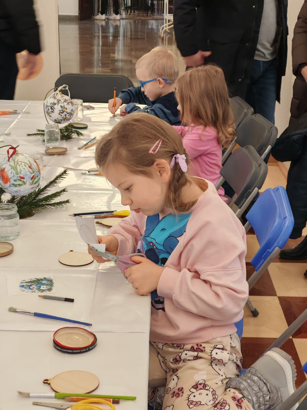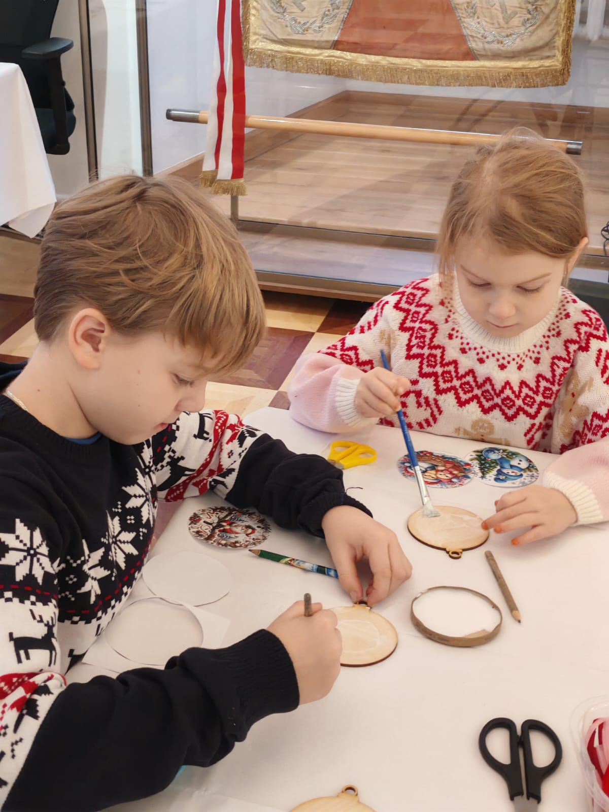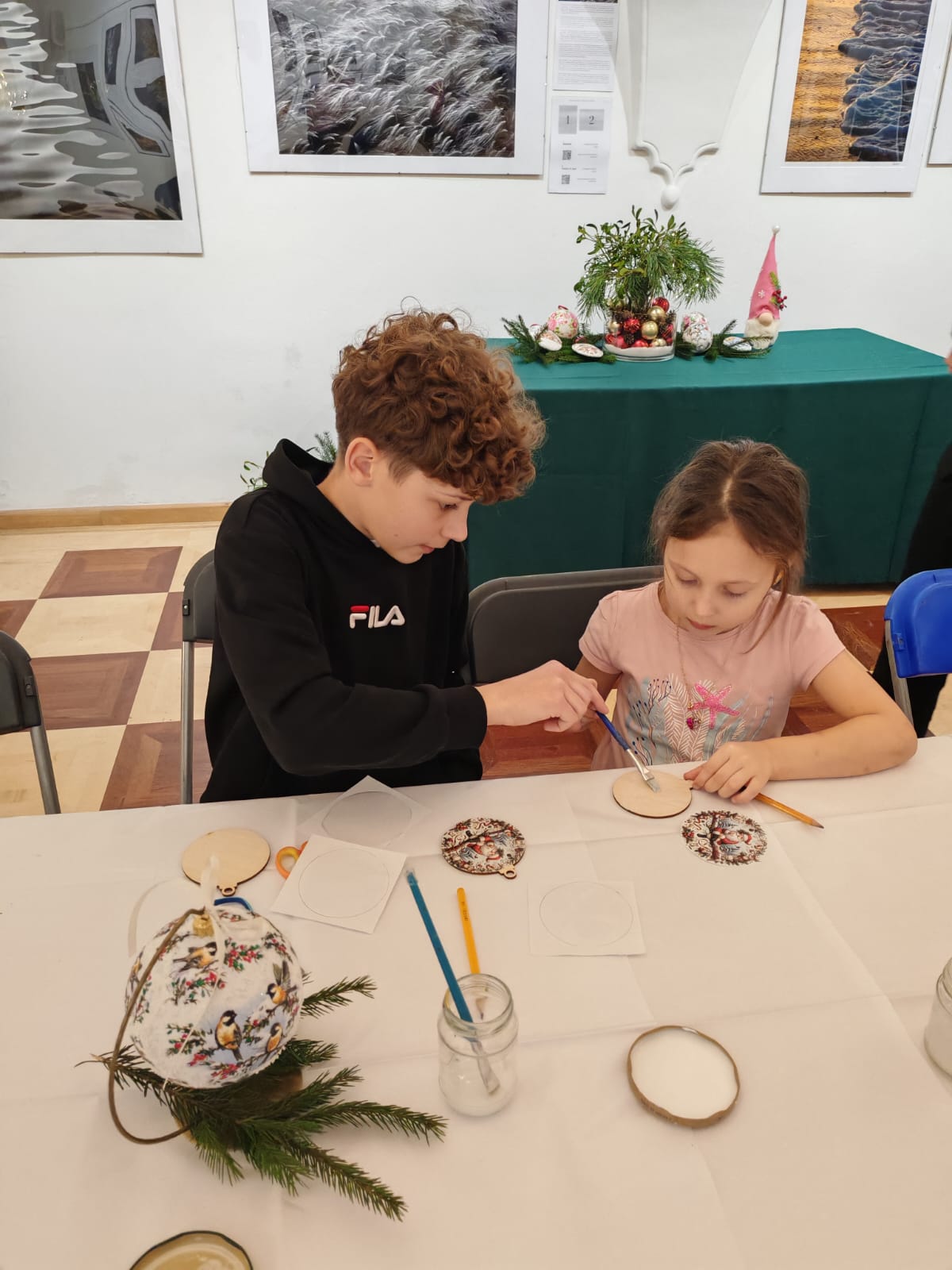 W Sali Ekspozycyjnej Ratusza odbyły się warsztaty pt. „Świąteczna Fabryka Bombek”, podczas których uczestnicy tworzyli drewniane dekoracje świąteczne w technice decoupage. Zajęcia pozwoliły na rozwijanie kreatywności oraz przygotowanie unikatowych ozdób choinkowych.