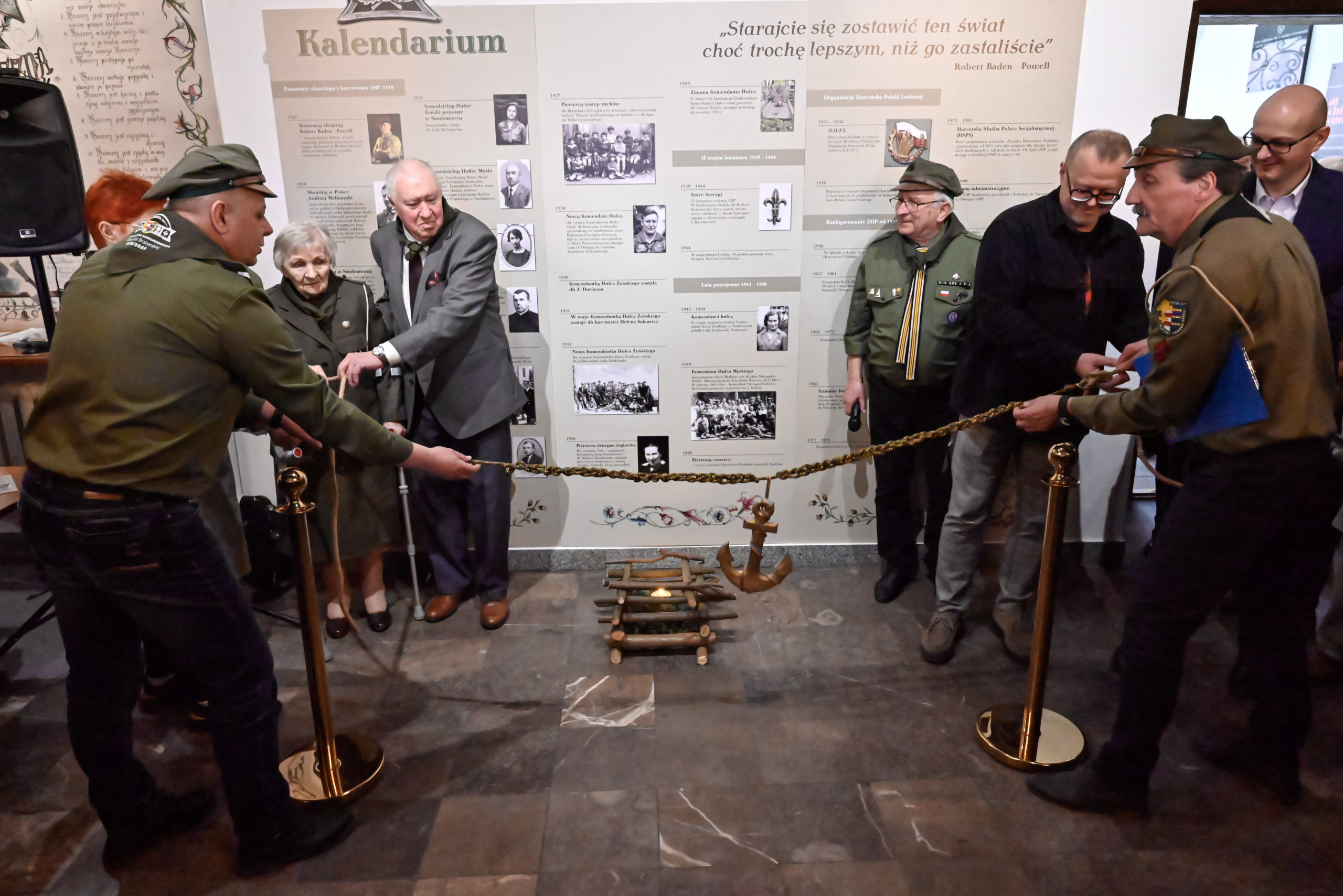 Wystawa rozpoczyna się planszą-kalendarium harcerstwa, na której pokazano znane i zasłużone dla harcerstwa osoby. Wspominamy druhny i druhów: Bełcikowską. Hadama, Kołczykiewiczówną, Kozikowskiego, Kolasową, druha Wolskiego, Sobieraja i Orawca.