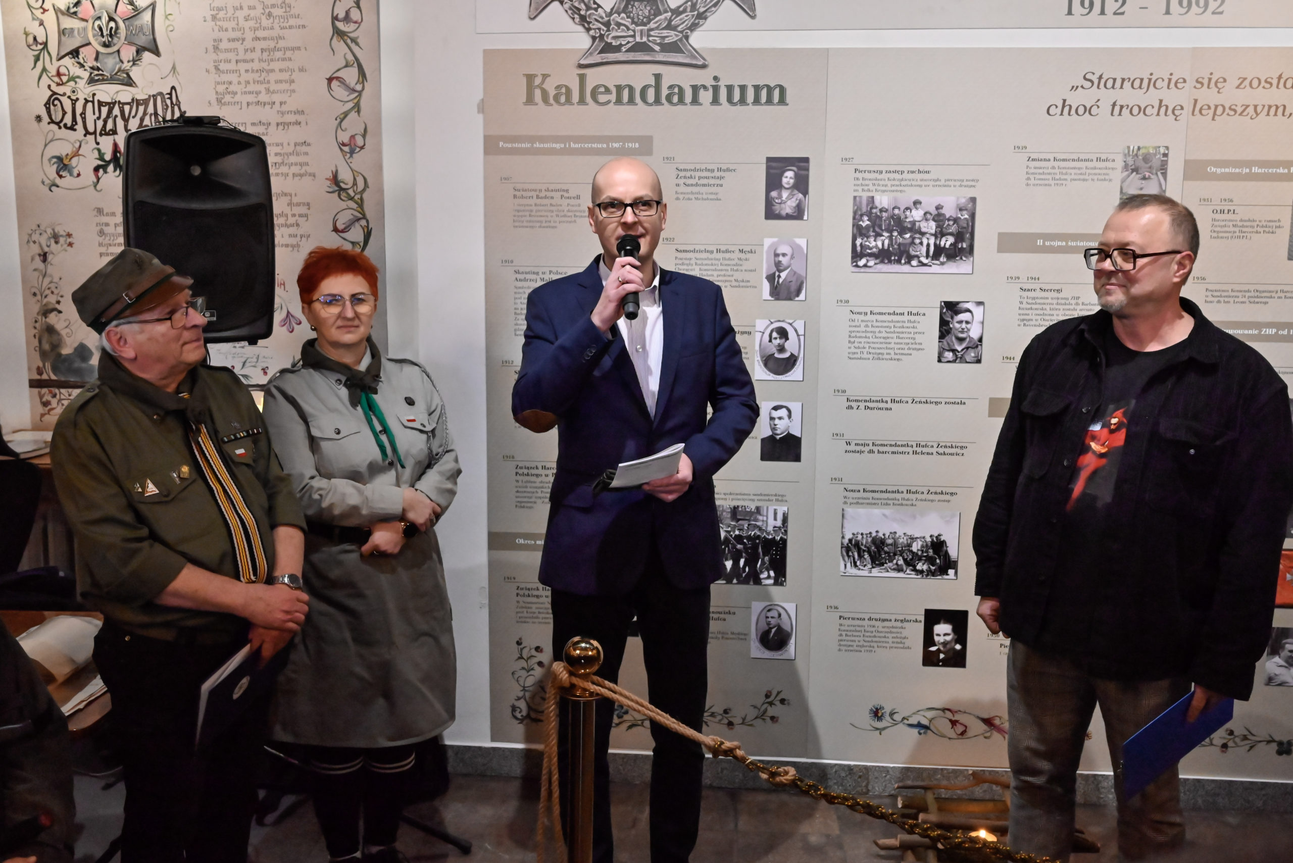 Wernisaż został poprzedzony wartościowym spotkaniem społeczności harcerskiej braci w Ratuszu, podczas którego mogliśmy wysłuchać wystąpień poświęconych historii hufca ZHP w Sandomierzu i jego wybitnym działaczom.