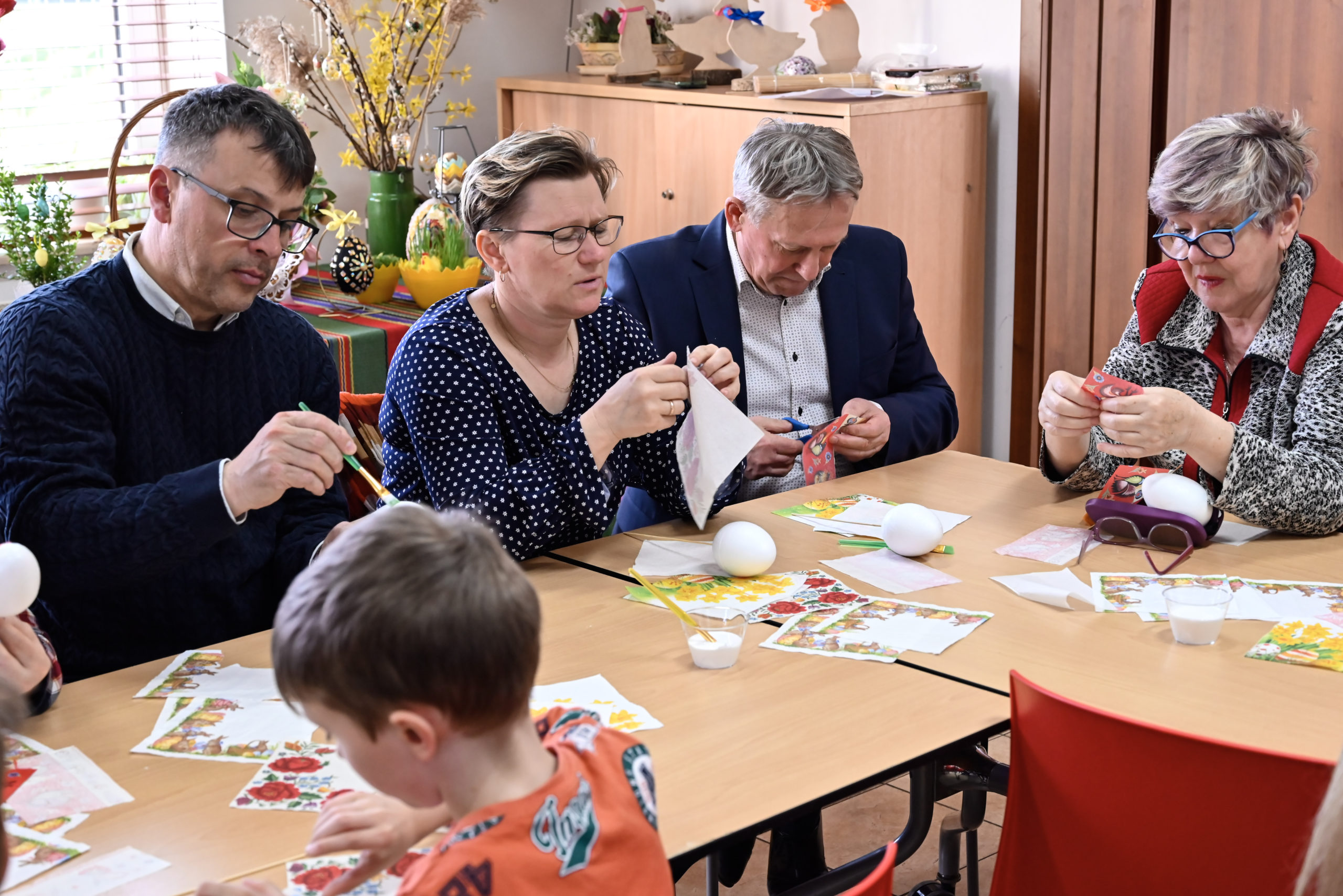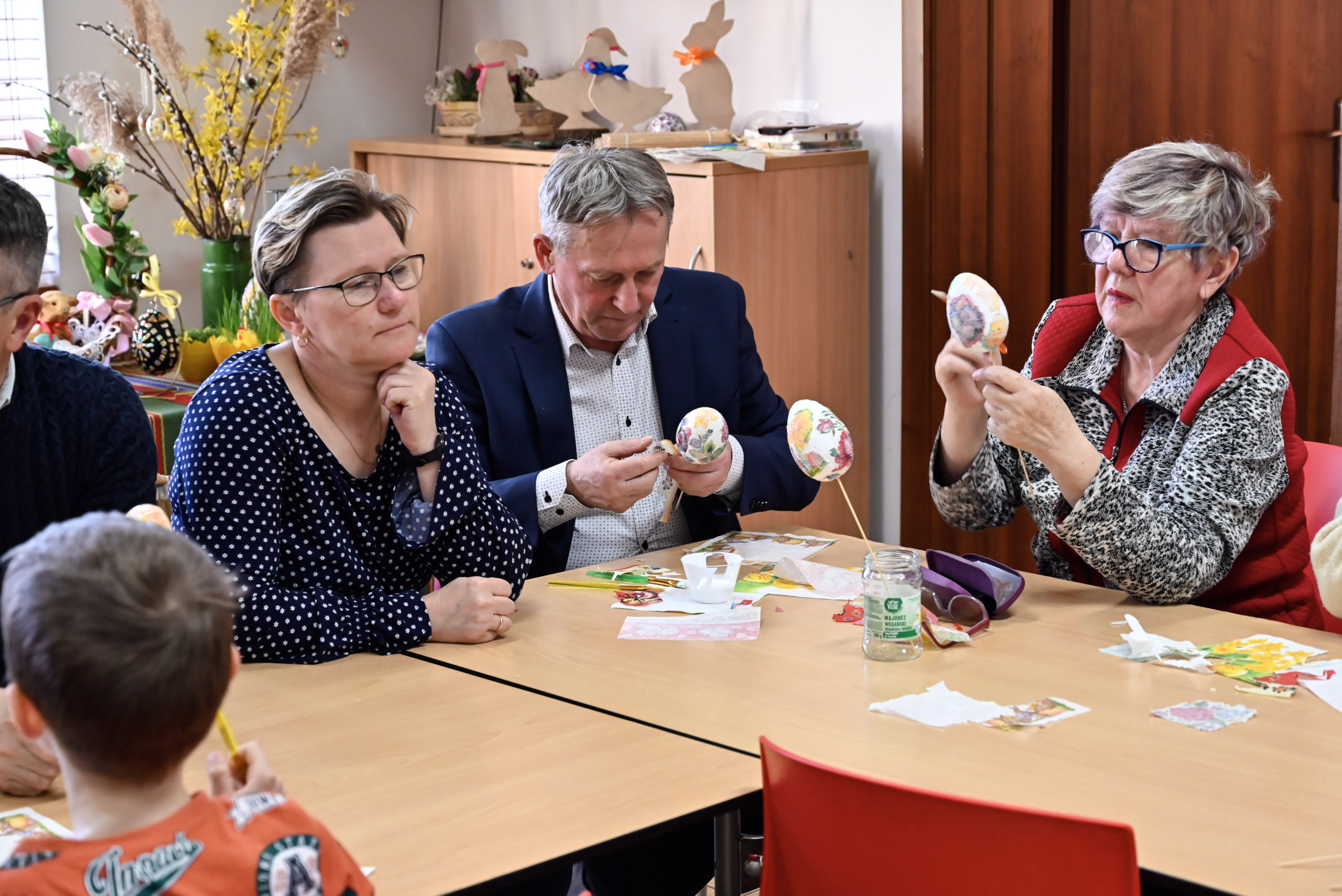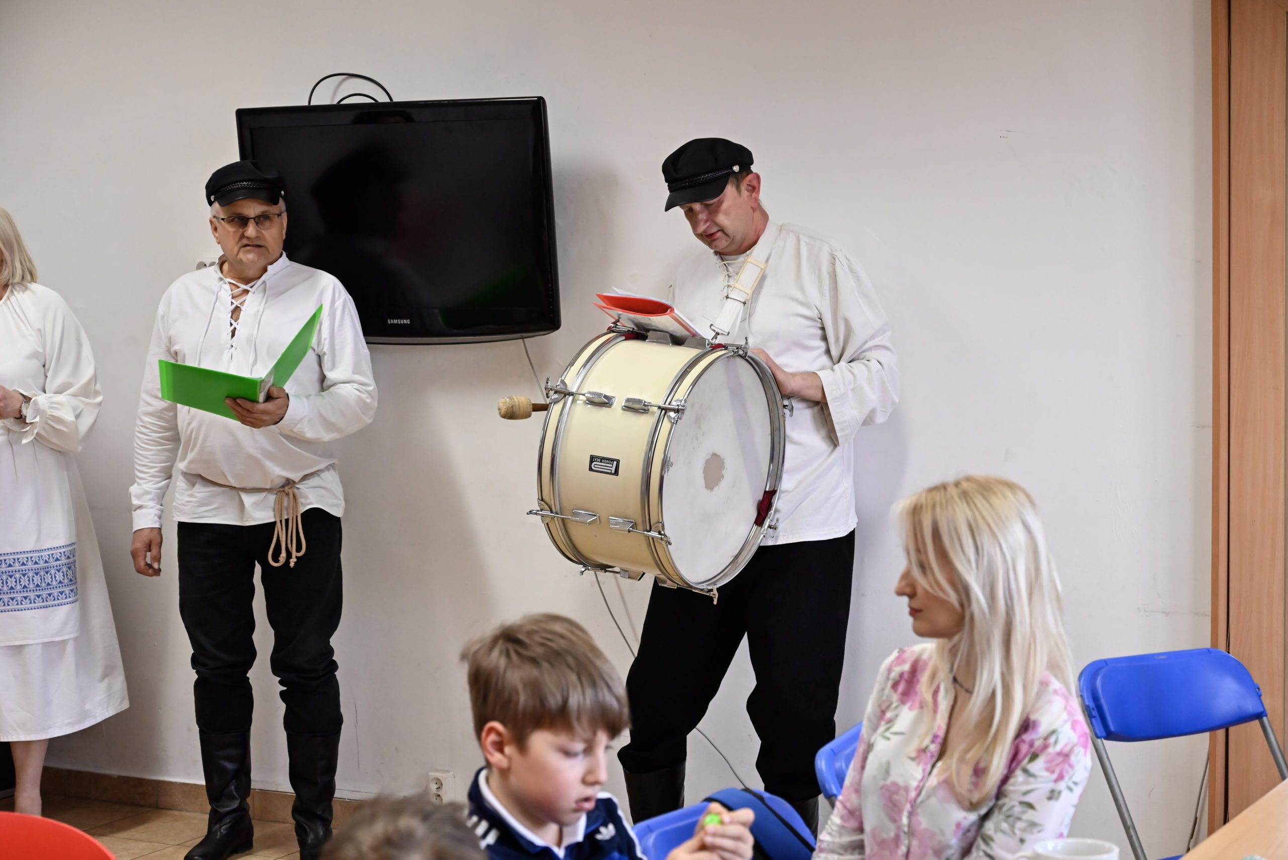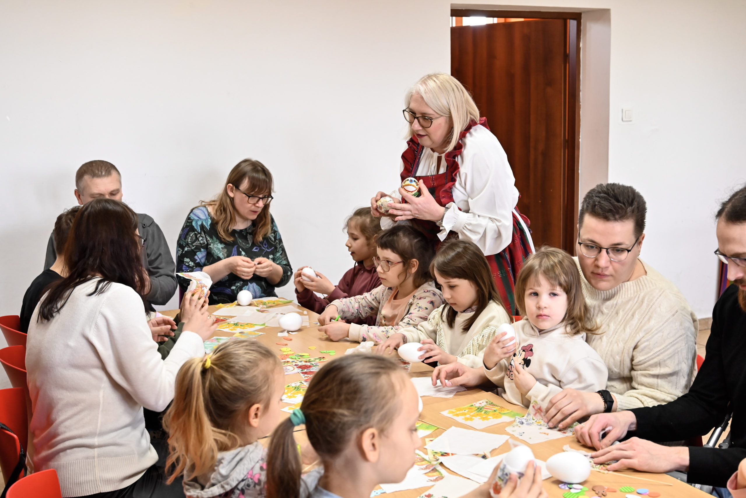 W świątecznej atmosferze uczestnicy tworzyli kolorowe jajka metodą decoupage, ozdabiali muffinki, a wszystko to odbywało się przy tradycyjnej muzyce, wspólnym poczęstunku i rozmowach. Nie zabrakło też ludowych przyśpiewek i opowieści, którymi uraczyli nas członkowie stowarzyszeń Razem dla Nadbrzezia i NASZE SIOŁO.