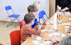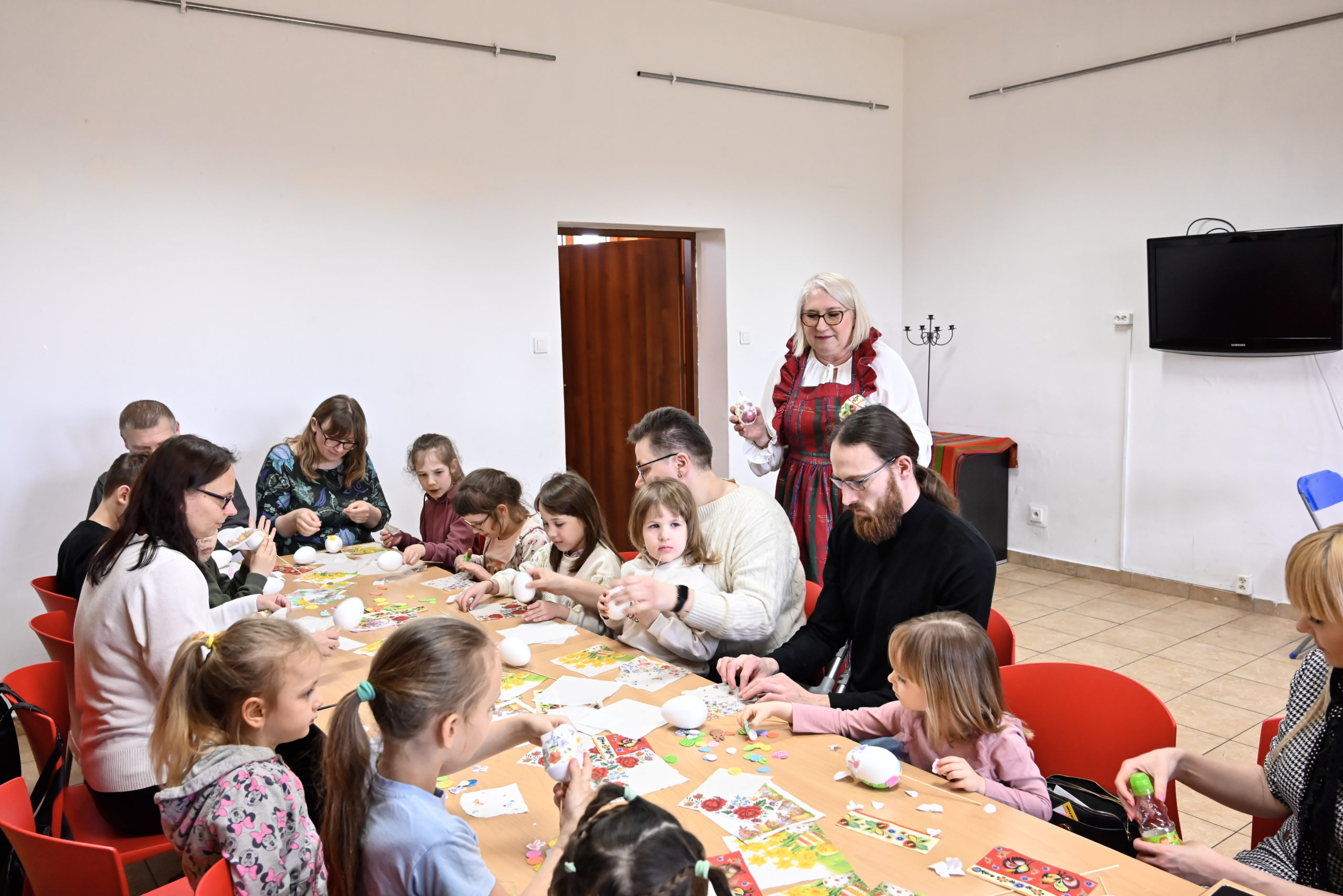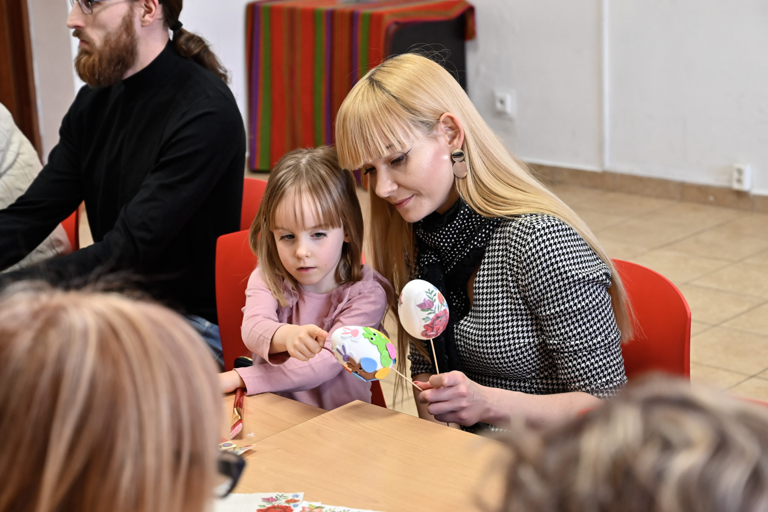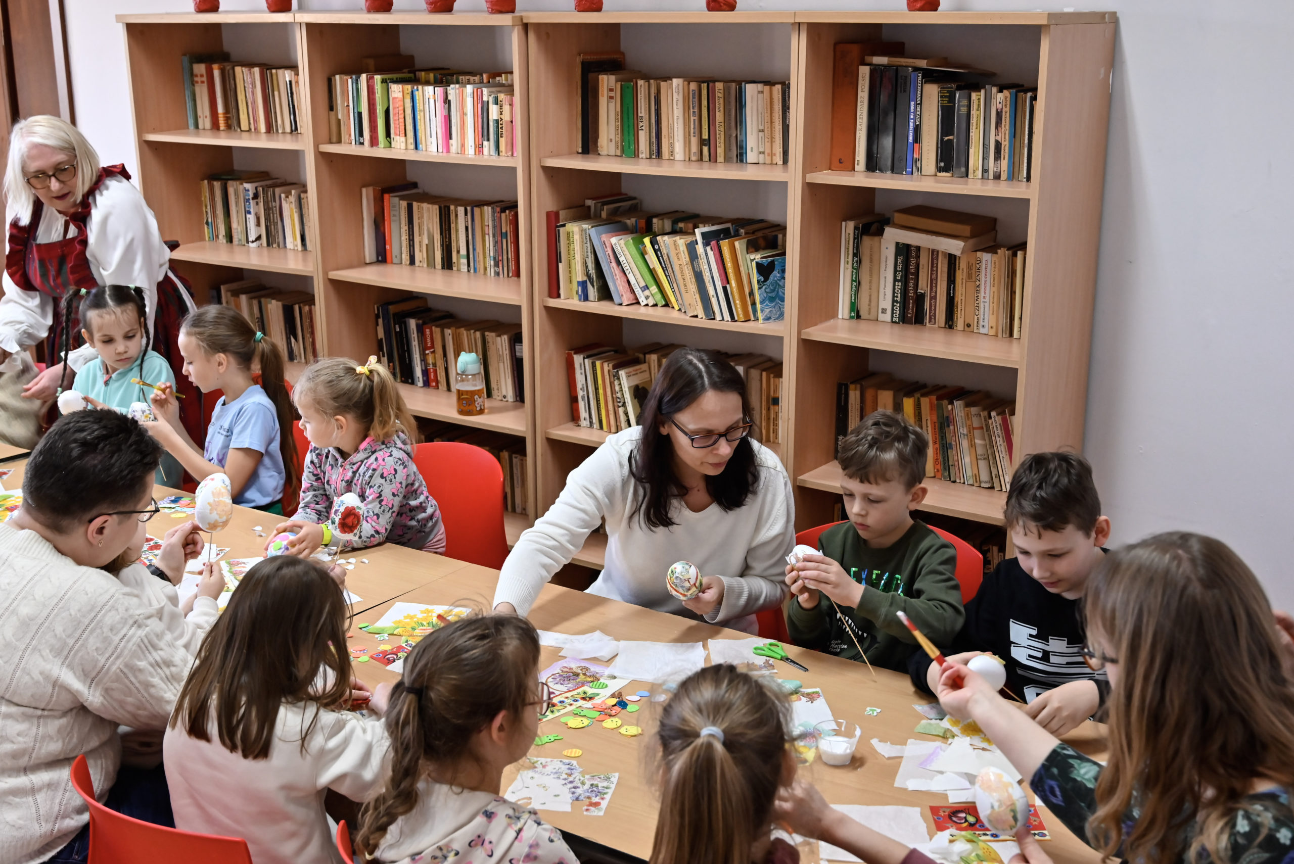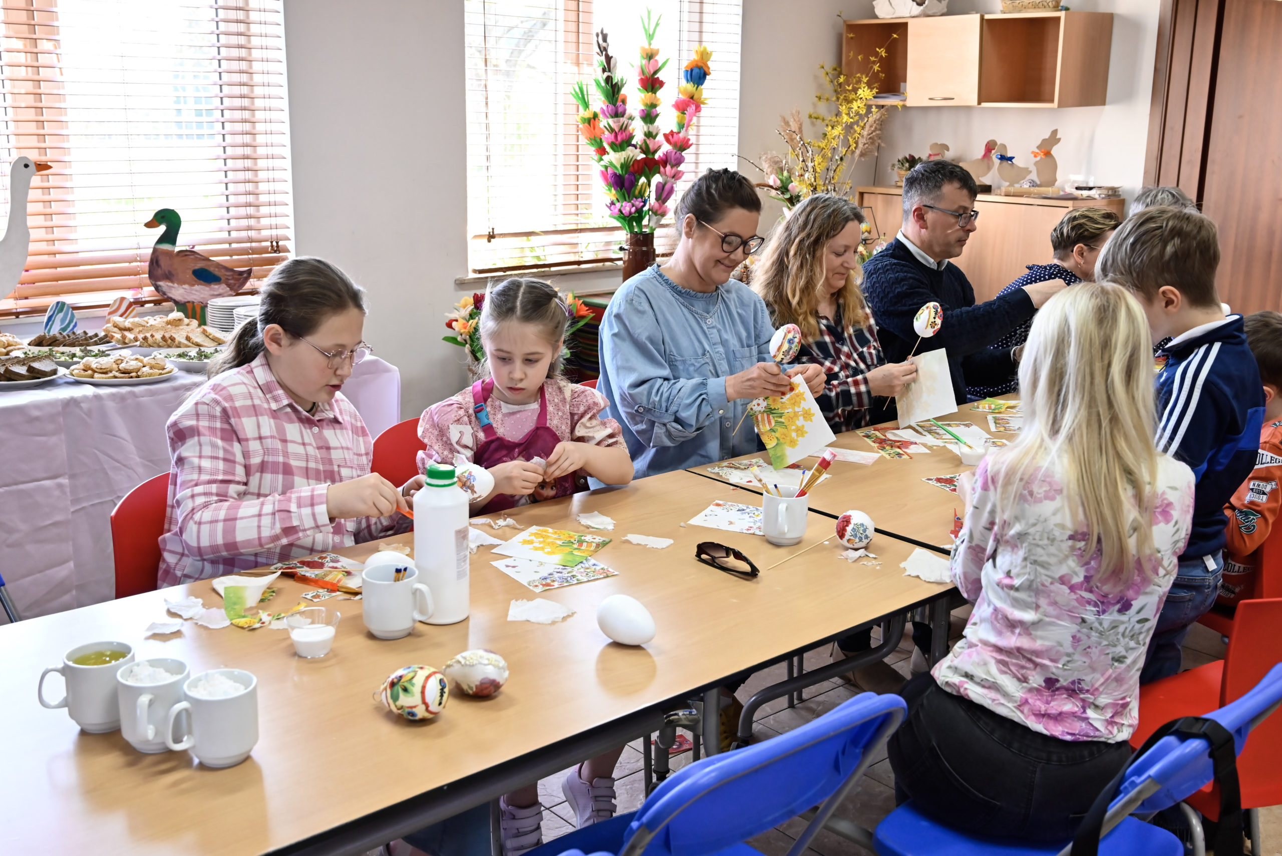 W świątecznej atmosferze uczestnicy tworzyli kolorowe jajka metodą decoupage, ozdabiali muffinki, a wszystko to odbywało się przy tradycyjnej muzyce, wspólnym poczęstunku i rozmowach. Nie zabrakło też ludowych przyśpiewek i opowieści, którymi uraczyli nas członkowie stowarzyszeń Razem dla Nadbrzezia i NASZE SIOŁO.
