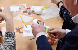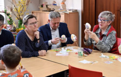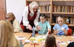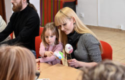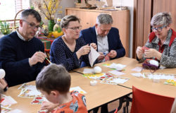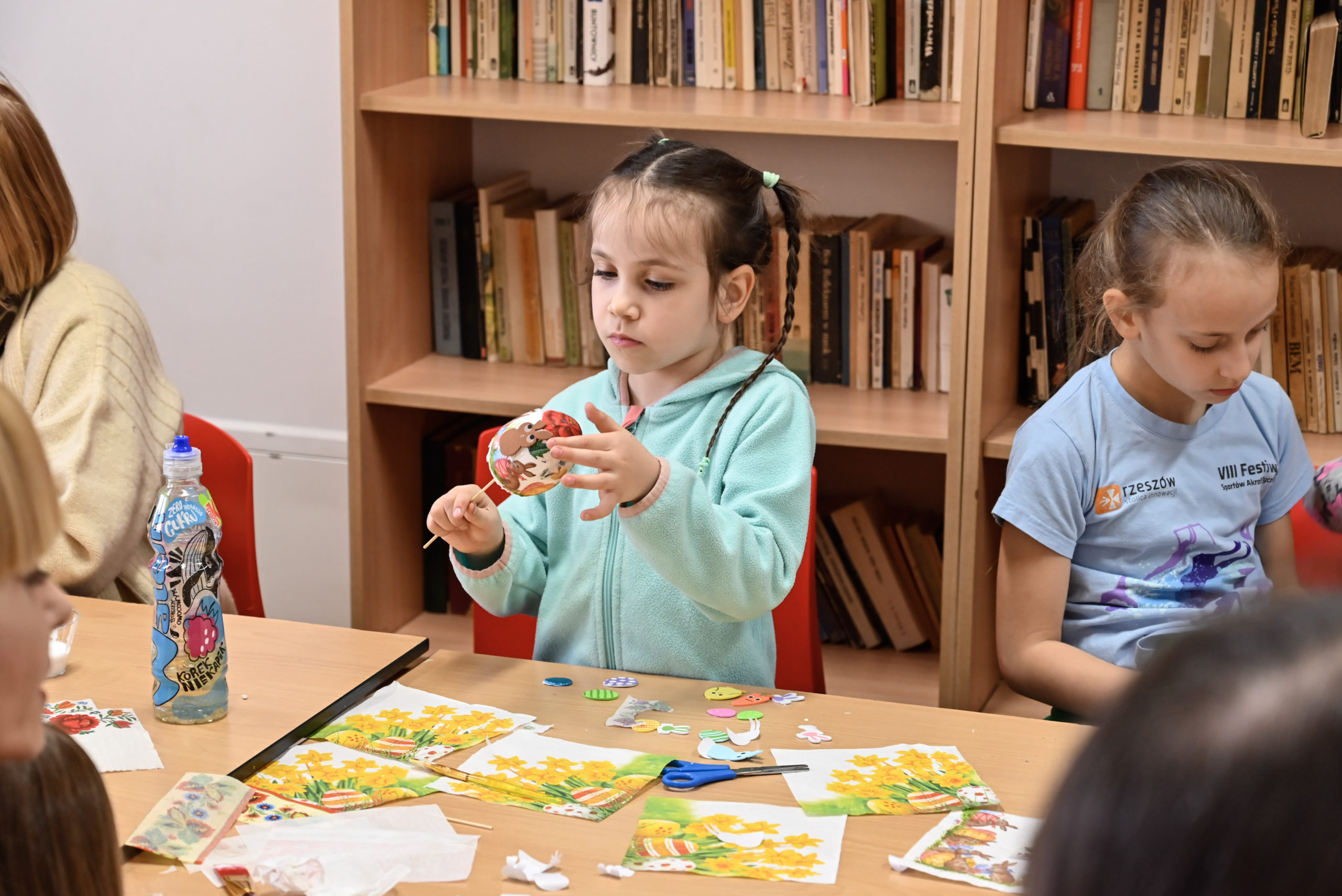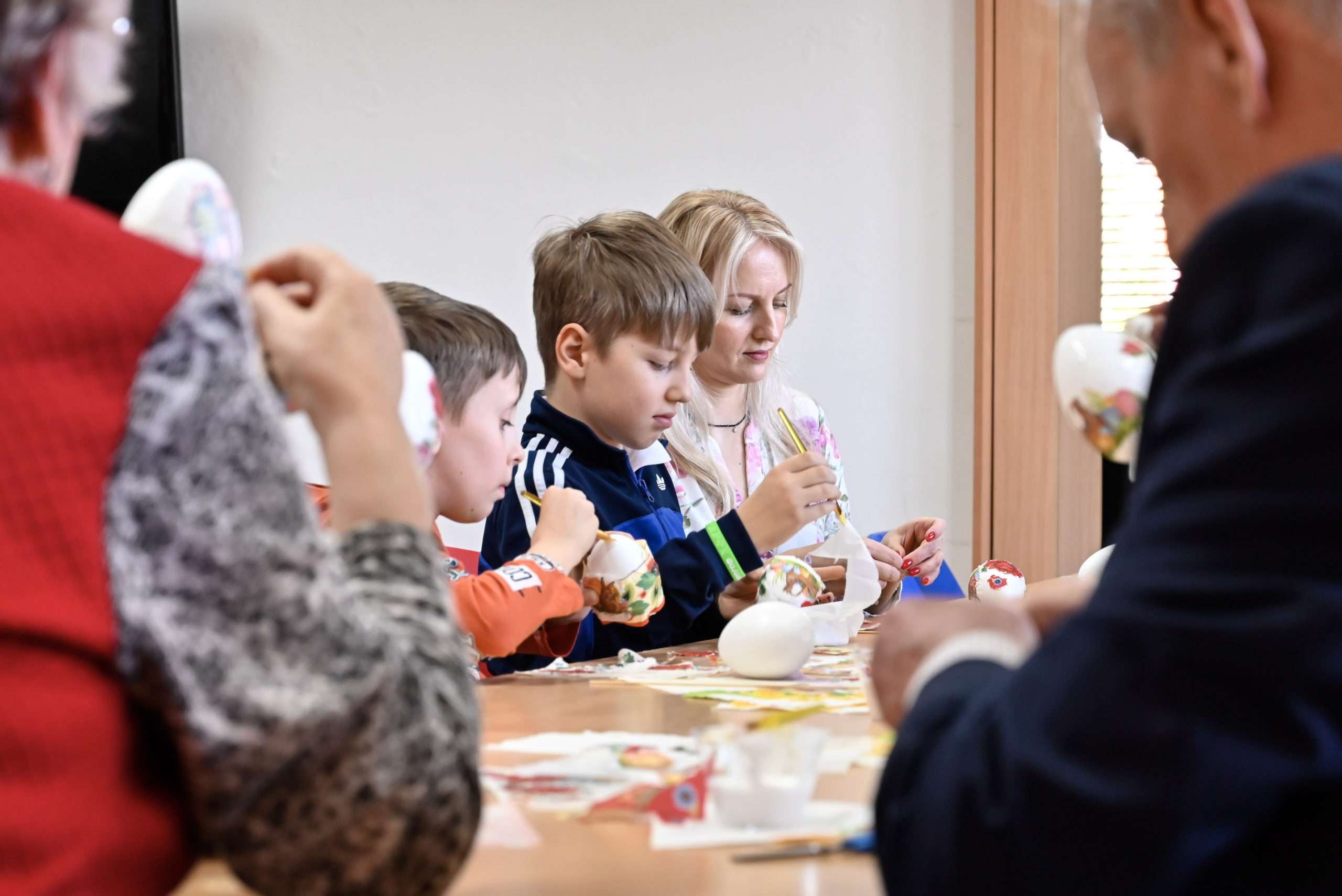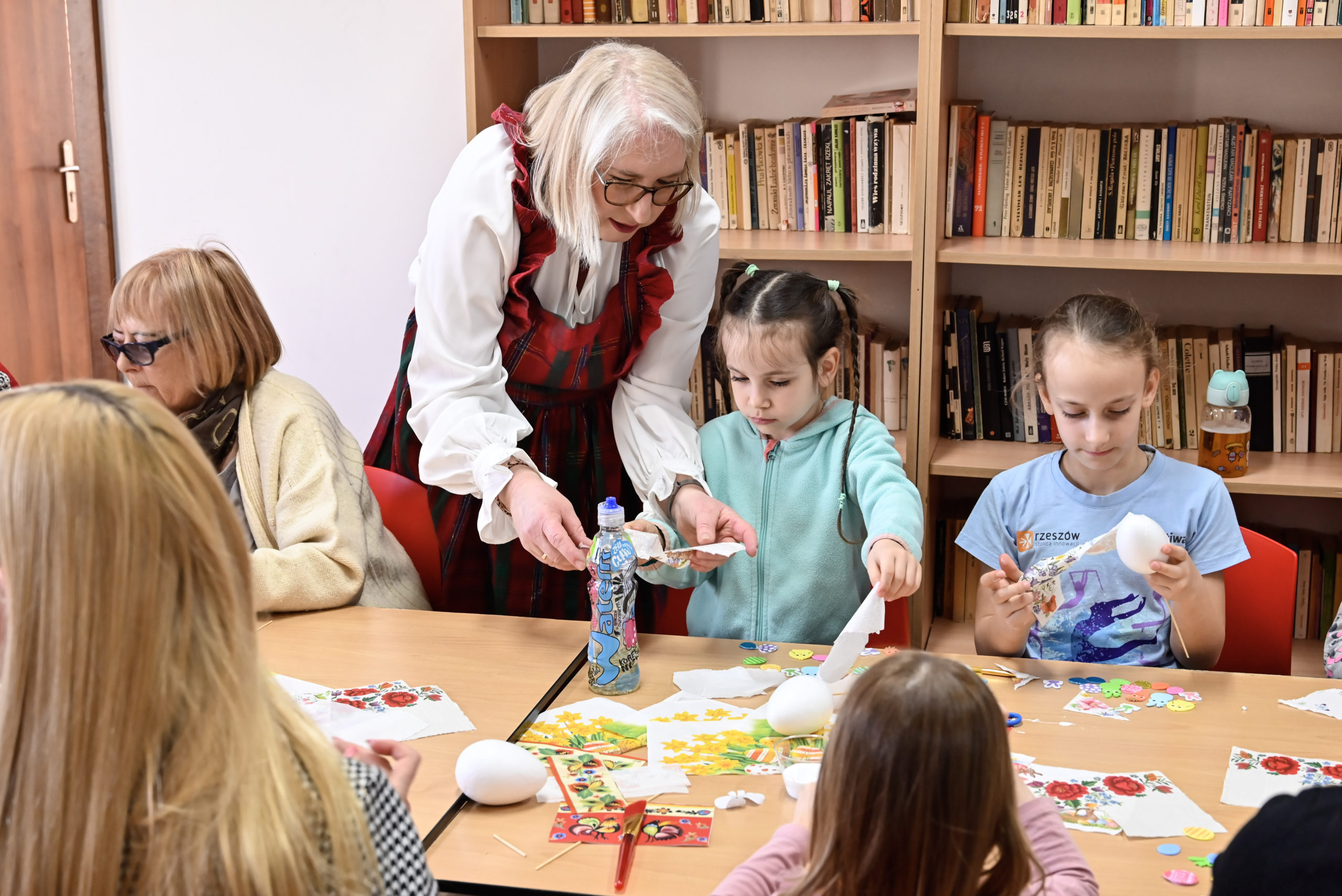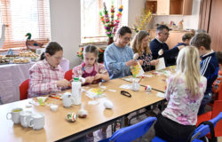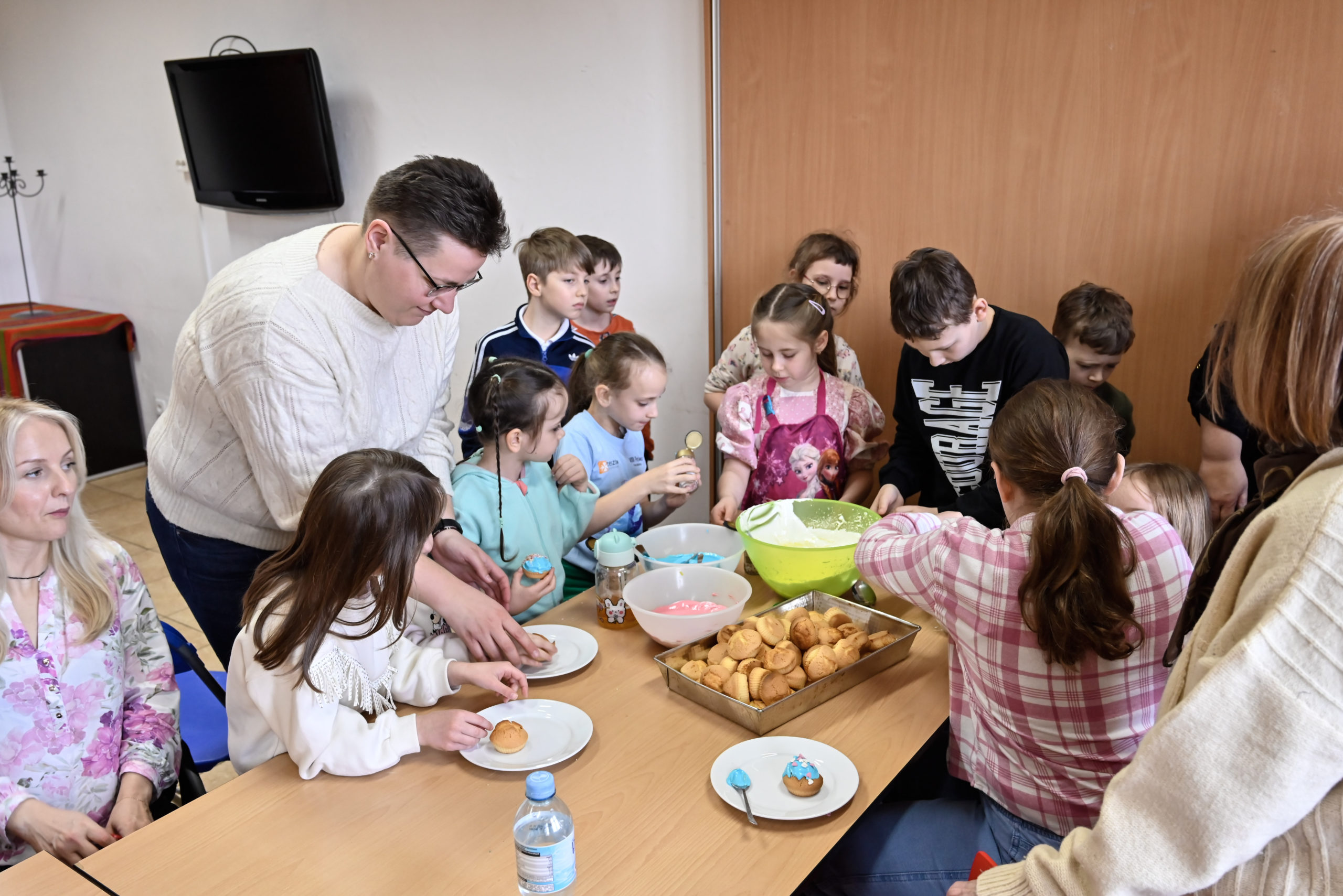 W świątecznej atmosferze uczestnicy tworzyli kolorowe jajka metodą decoupage, ozdabiali muffinki, a wszystko to odbywało się przy tradycyjnej muzyce, wspólnym poczęstunku i rozmowach. Nie zabrakło też ludowych przyśpiewek i opowieści, którymi uraczyli nas członkowie stowarzyszeń Razem dla Nadbrzezia i NASZE SIOŁO.