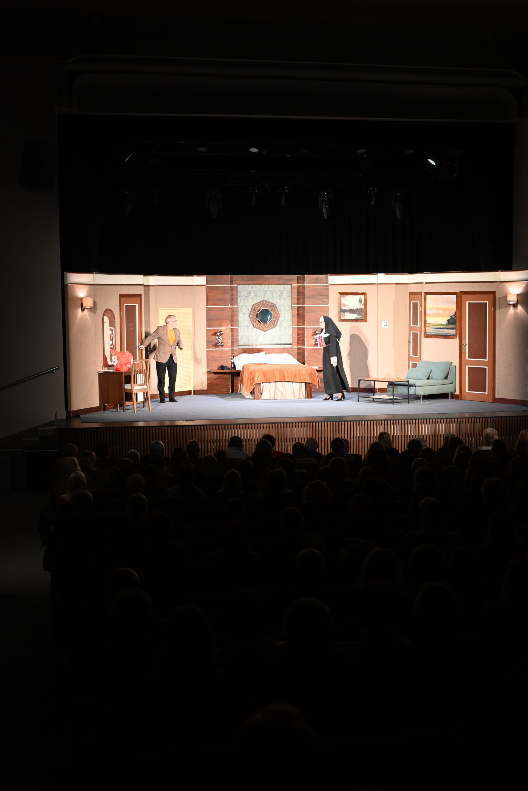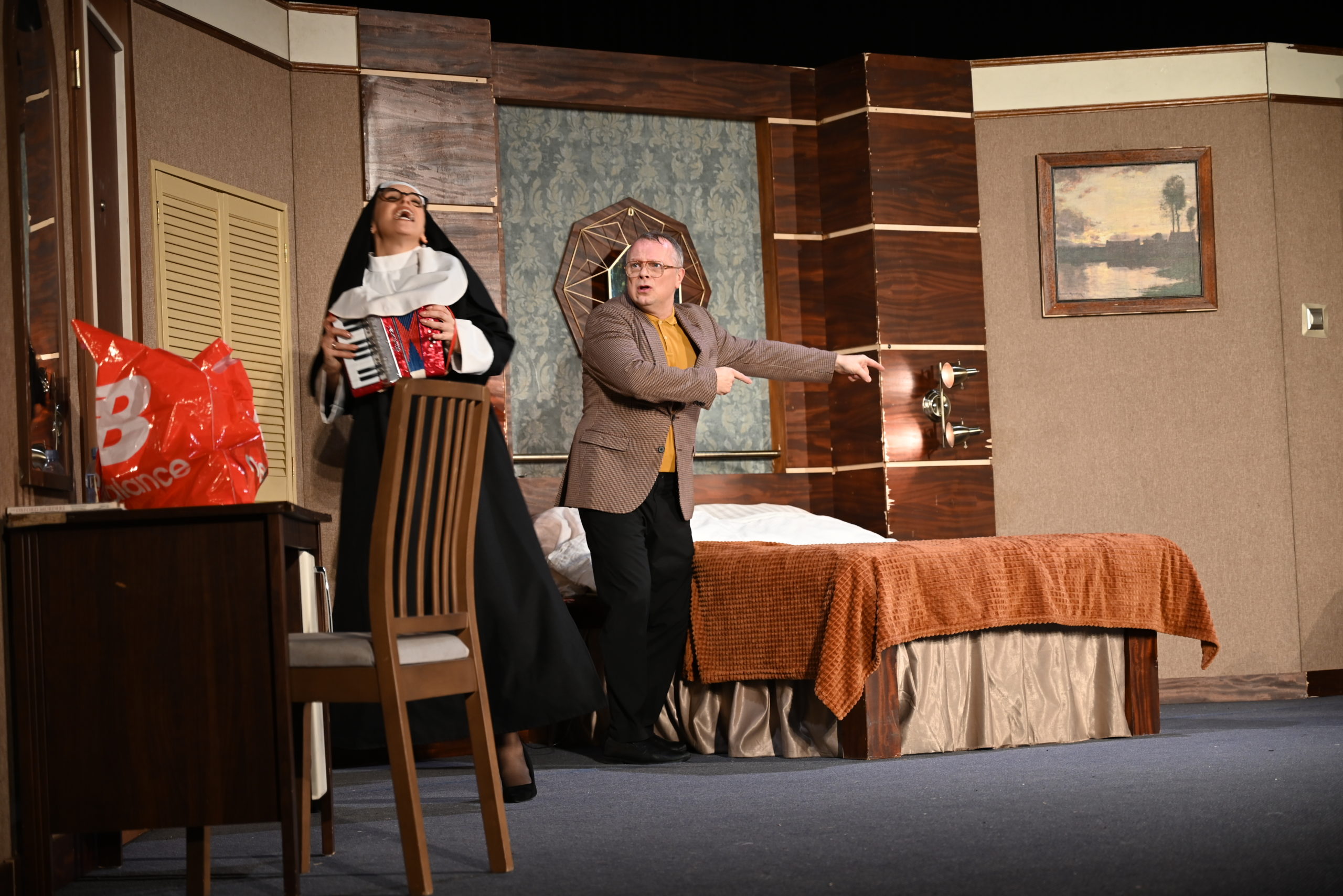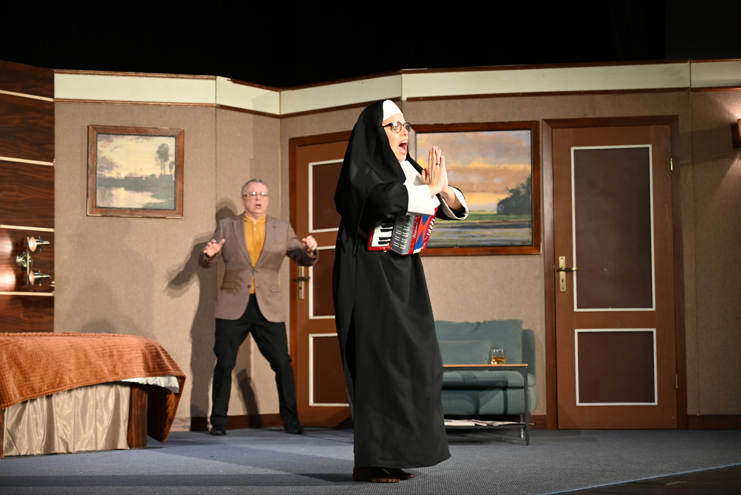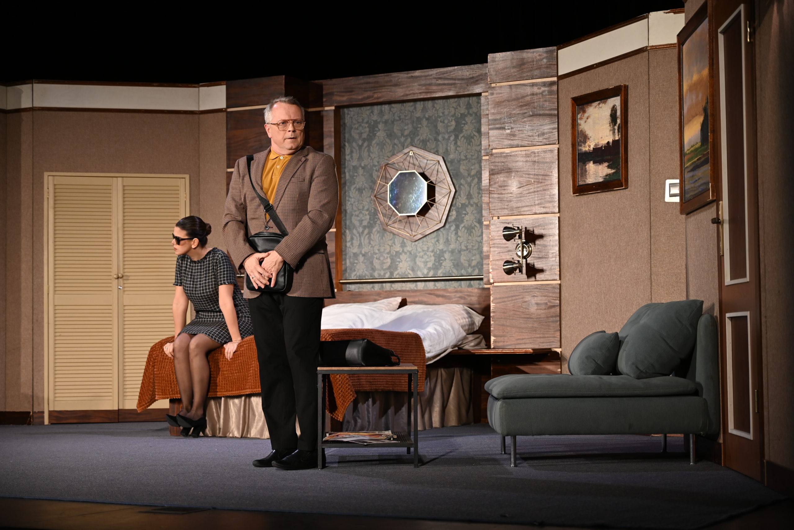 Spektakl „Odjechana farsa” w Katolickim Domu Kultury Świętego Józefa w Sandomierzu wywołał prawdziwą eksplozję śmiechu i emocji! Dwoje aktorów, Monika Mazur i Piotr Szwedes, w brawurowy sposób wcieliło się w dziesięć różnych postaci, tworząc dynamiczną i pełną absurdalnych zwrotów akcji historię w jednym, niewielkim pokoju hotelowym.