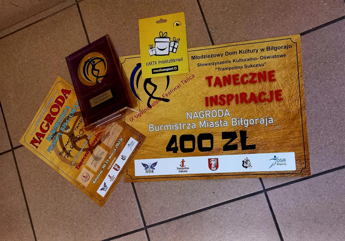 Z wielką dumą informujemy, że Formacja Taneczna PARADOX, działająca w Ośrodku Promocji Aktywności Kulturalnej, po raz kolejny odniosła sukces – w piątek, 31. marca 2023, tancerki z FT Paradox S i FT Paradox wzięły udział w IX. Ogólnopolskim Festiwalu Tańca „Taneczne Inspiracje” w Biłgoraju i zdobyły nagrodę specjalną burmistrza miasta Biłgoraja. Jury doceniło choreografię p. Moniki Magdy pt. „Rozdział”, którą wykonały tancerki z FT Paradox.