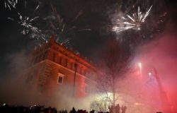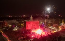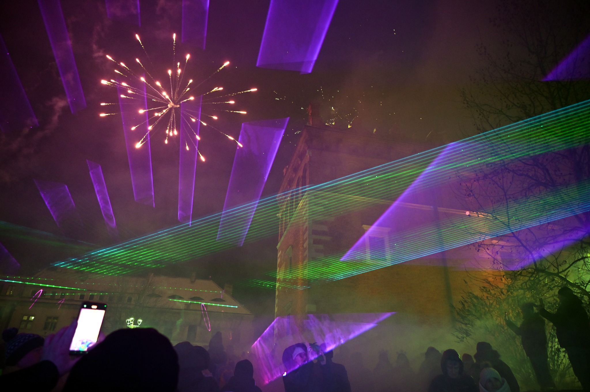 Punktualnie o północy Rynek rozświetliło widowisko laserowe połączone z efektami ognia, przygotowane przez Visual Sensation Laser Shows & Technologies Jarosław Nadolny. Nowoczesny spektakl, będący alternatywą dla tradycyjnych fajerwerków, stworzył niezwykłą oprawę powitania Nowego Roku.