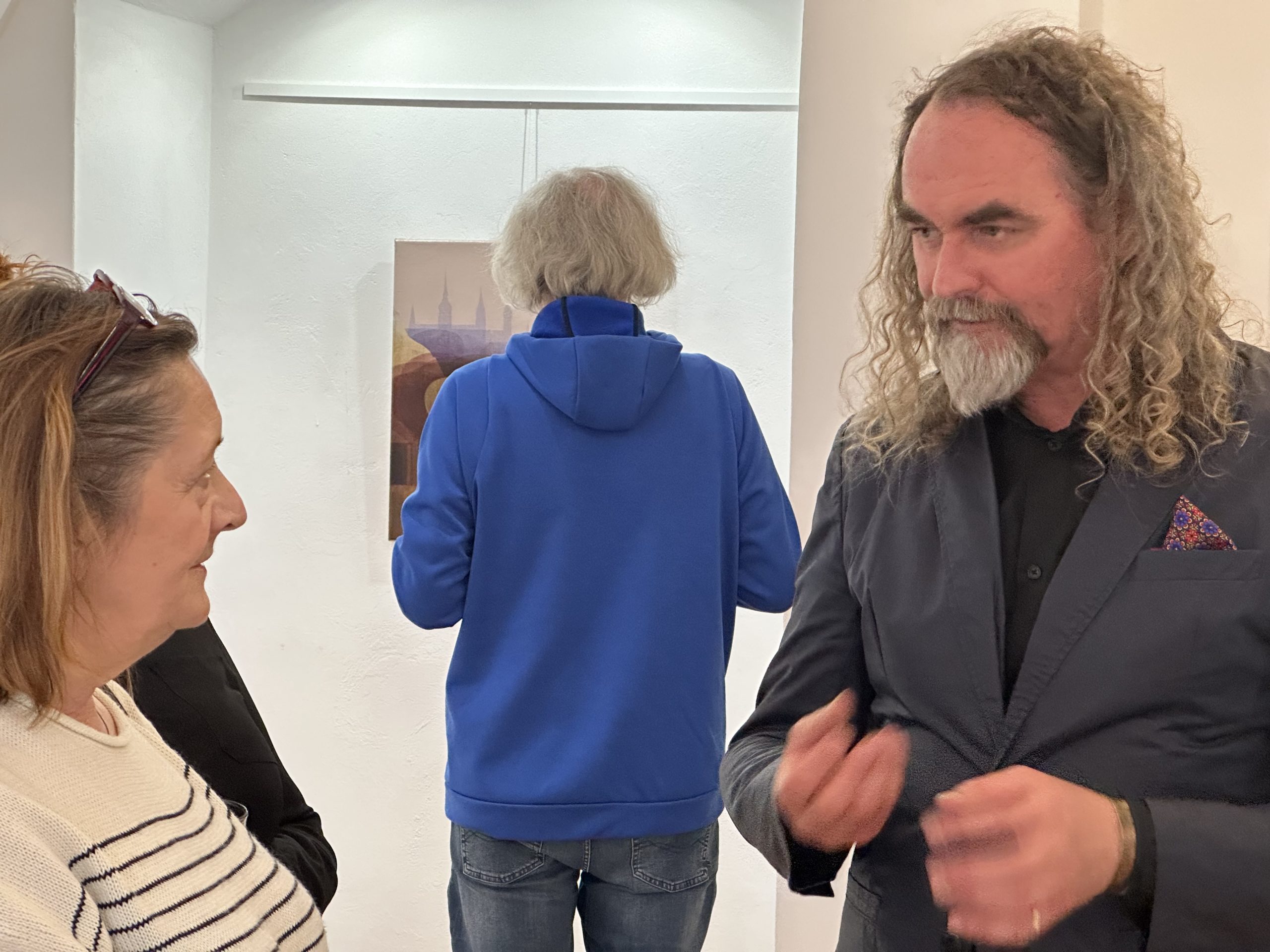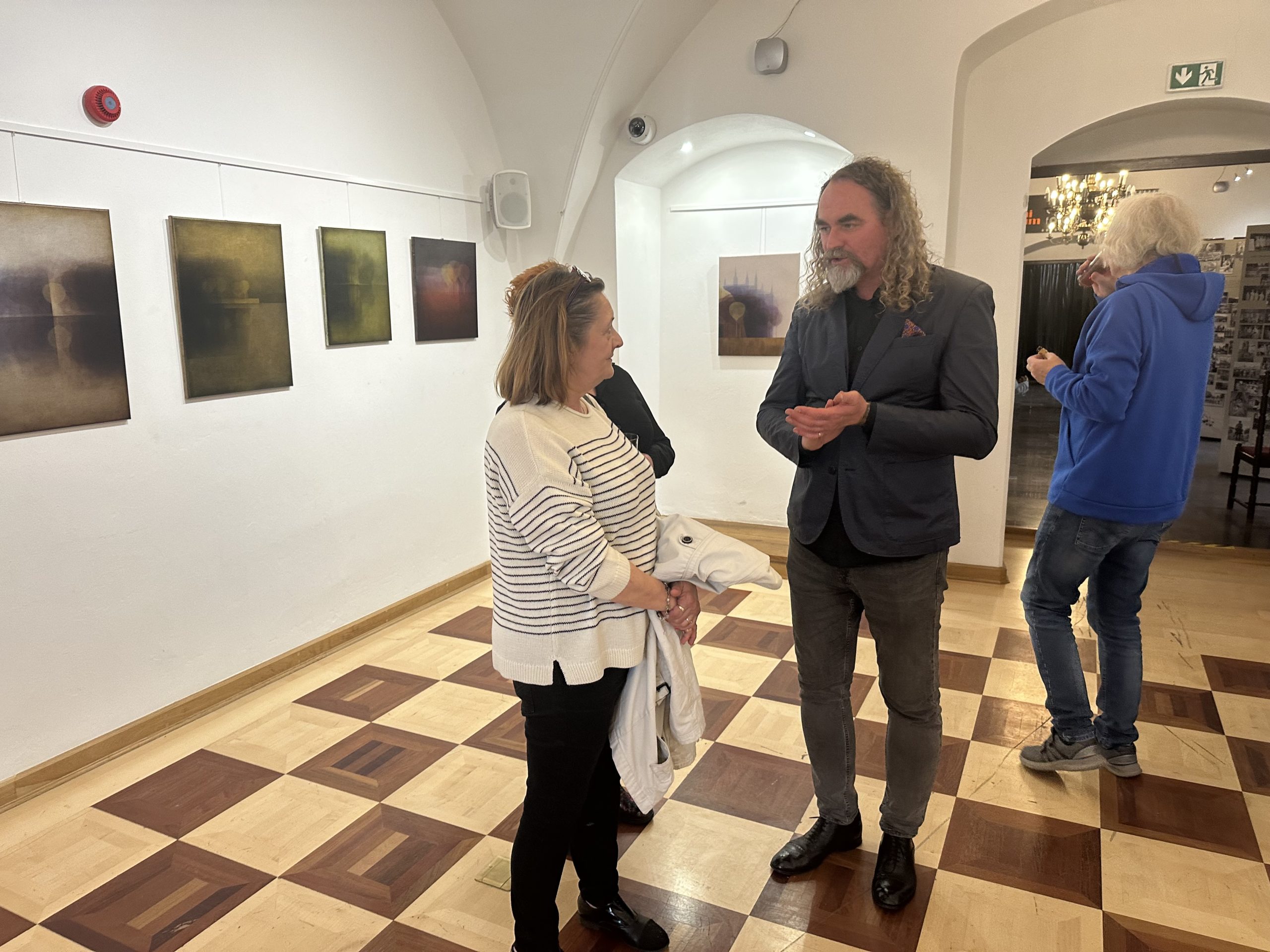 20 maja 2025 roku Sala Ekspozycyjna Ratusza w Sandomierzu stała się przestrzenią wyjątkowego spotkania ze sztuką. Podczas wernisażu wystawy malarstwa Pawła Wyborskiego pt. „Z wody i powietrza – pejzaże metafizyczne” uczestnicy mieli okazję nie tylko podziwiać subtelną, pełną ciszy i światła twórczość artysty, ale także wysłuchać jego opowieści o emocjach, technice i inspiracjach.
