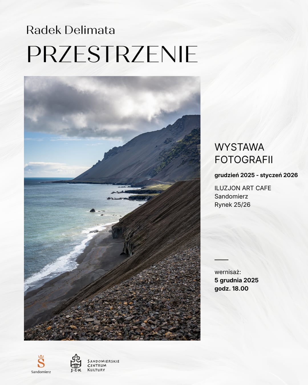 Serdecznie zapraszamy na wernisaż wystawy fotografii Radka Delimaty pt. „Przestrzenie”, który odbędzie się w piątek, 5 grudnia 2025, o godz. 18:00. Spotykamy się w kameralnych wnętrzach Iluzjon Art Cafe.