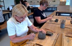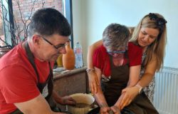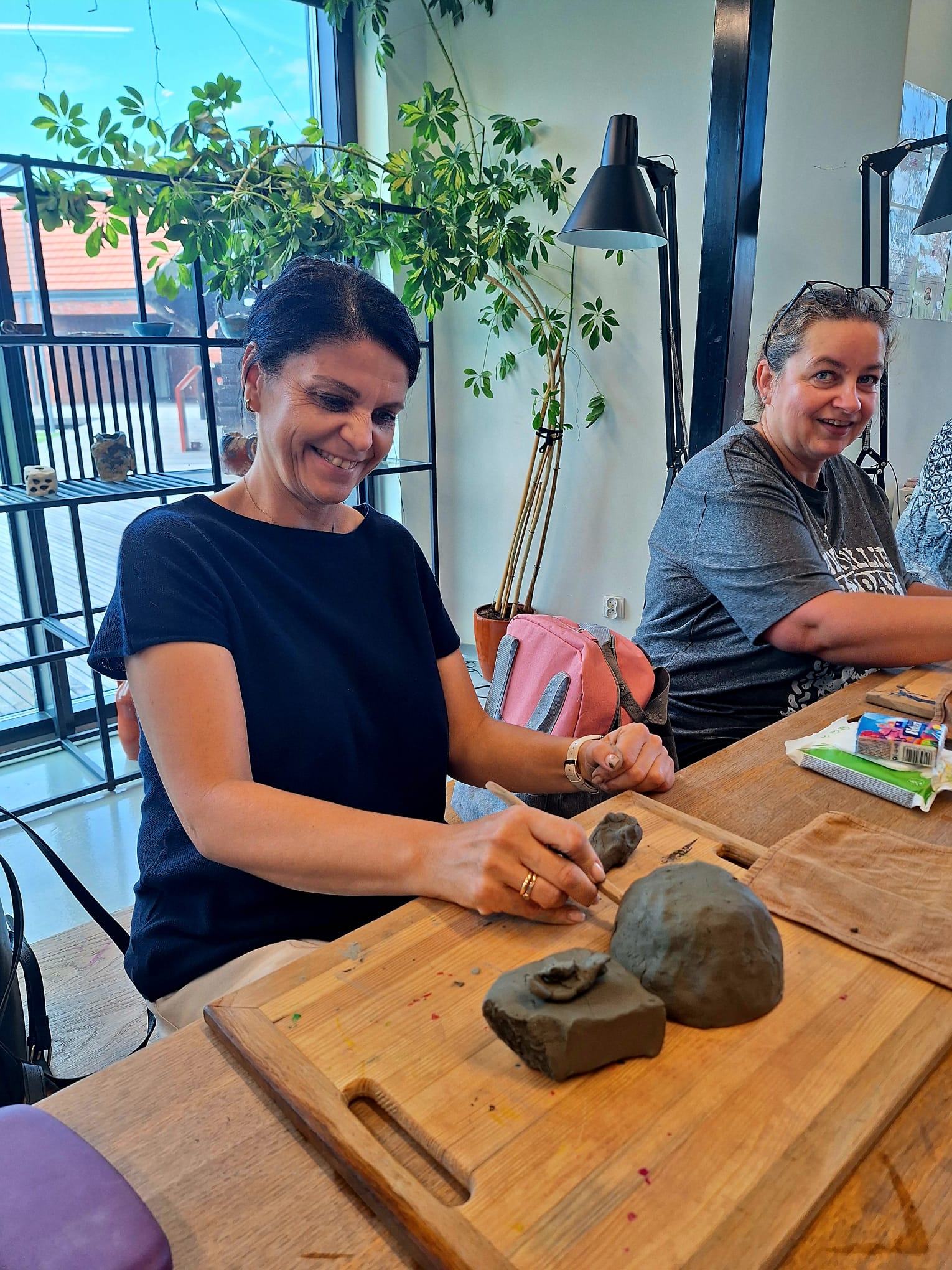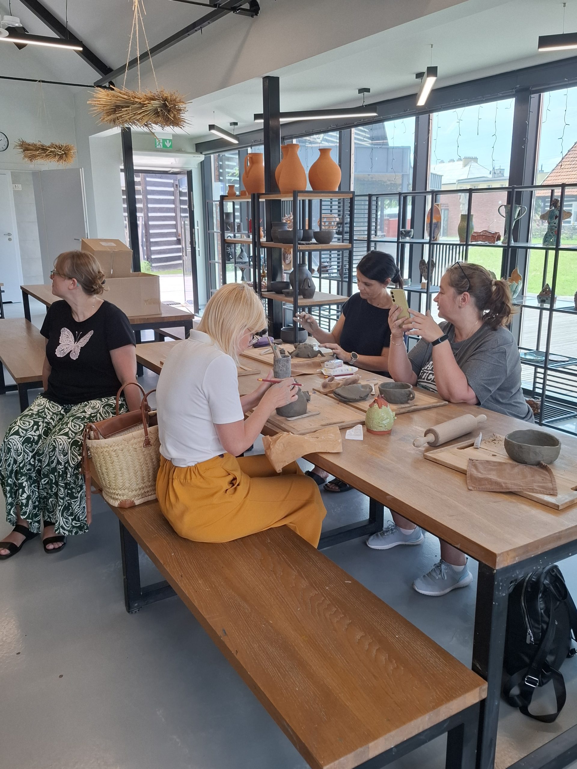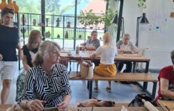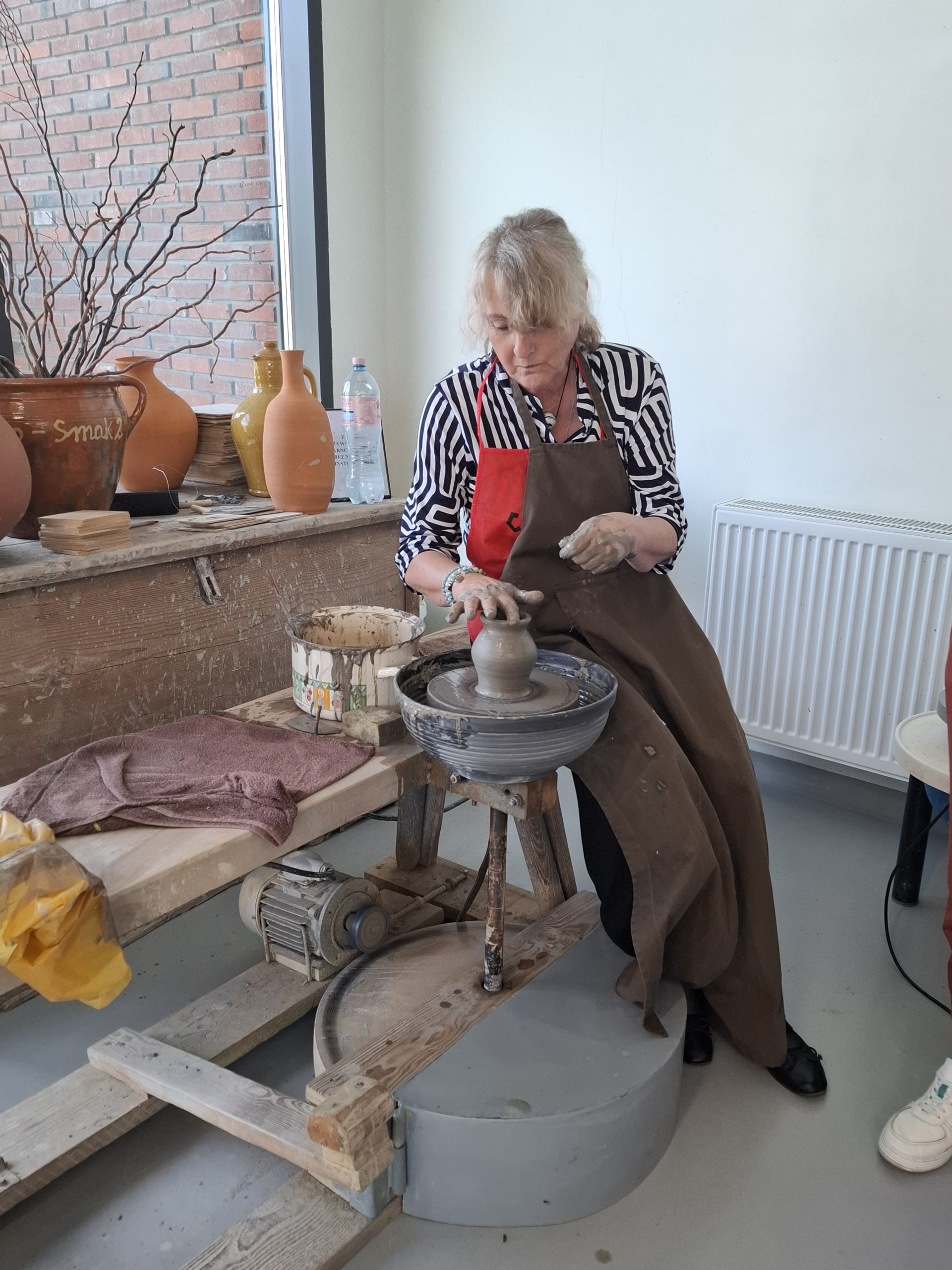 Ten dzień był prawdziwą ucztą dla zmysłów i wyobraźni! Wizyta studyjna rozpoczęła się od pełnej emocji gry terenowej, która pozwoliła lepiej poznać historię tego miejsca oraz nazwy poszczególnych wyrobów ceramicznych, stosowanych dawniej na wsi. Zaraz potem, pod czujnym okiem pana Janusza – mistrza garncarskiego fachu, uczestnicy poznali tajniki pracy na kole garncarskim i samodzielnie lepili przedmioty z gliny.