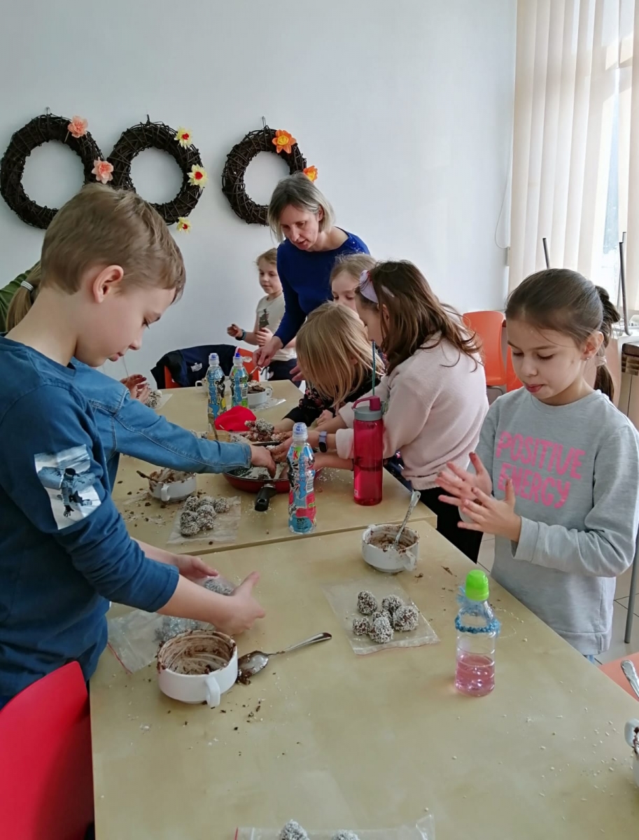 Dużym zainteresowaniem cieszyły się warsztaty plastyczne, których tematem były trójwymiarowe kompozycje: śnieżny krajobraz z pingwinem oraz kartka walentynkowa. Z wielkim entuzjazmem spotkały się także animacje teatralne, turniej gier planszowych oraz eksperymenty naukowe. Nie zabrakło także warsztatów kulinarnych, podczas których dzieci samodzielnie wykonały niezwykły deser – pyszne „śnieżne kule”.