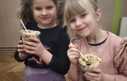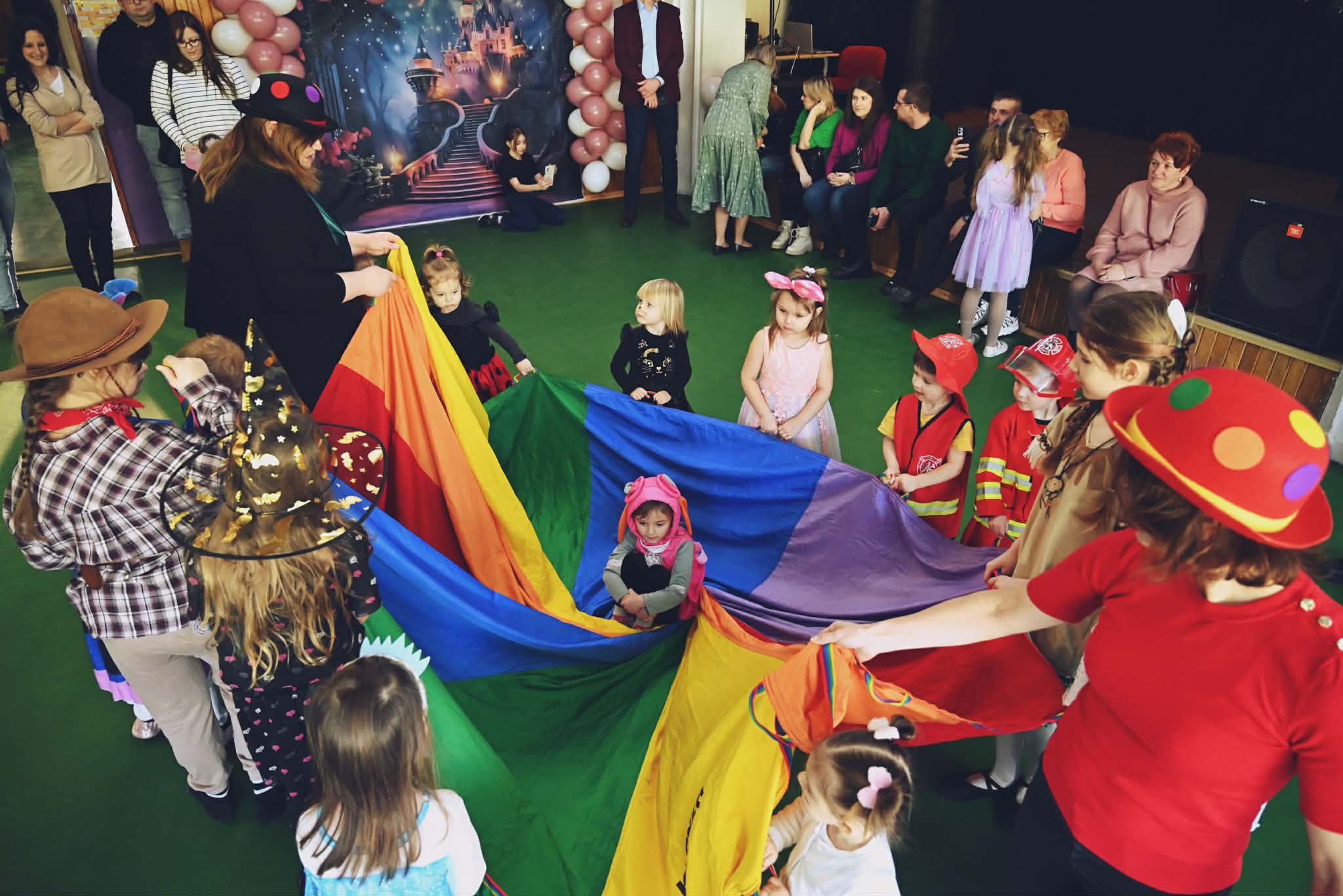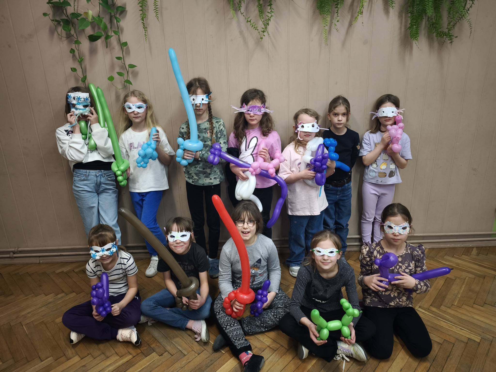Środa upłynęła pod znakiem kreatywności i smaków. Mali kucharze przygotowywali deserki z mascarpone, artyści budowali papierowe domki, a pomiędzy zajęciami nie brakowało zabaw ruchowych i śmiechu. Z kolei piątek przyniósł prawdziwie karnawałową atmosferę – animacje, modelowanie balonów oraz własnoręcznie wykonywane maski sprawiły dzieciom ogromną radość.