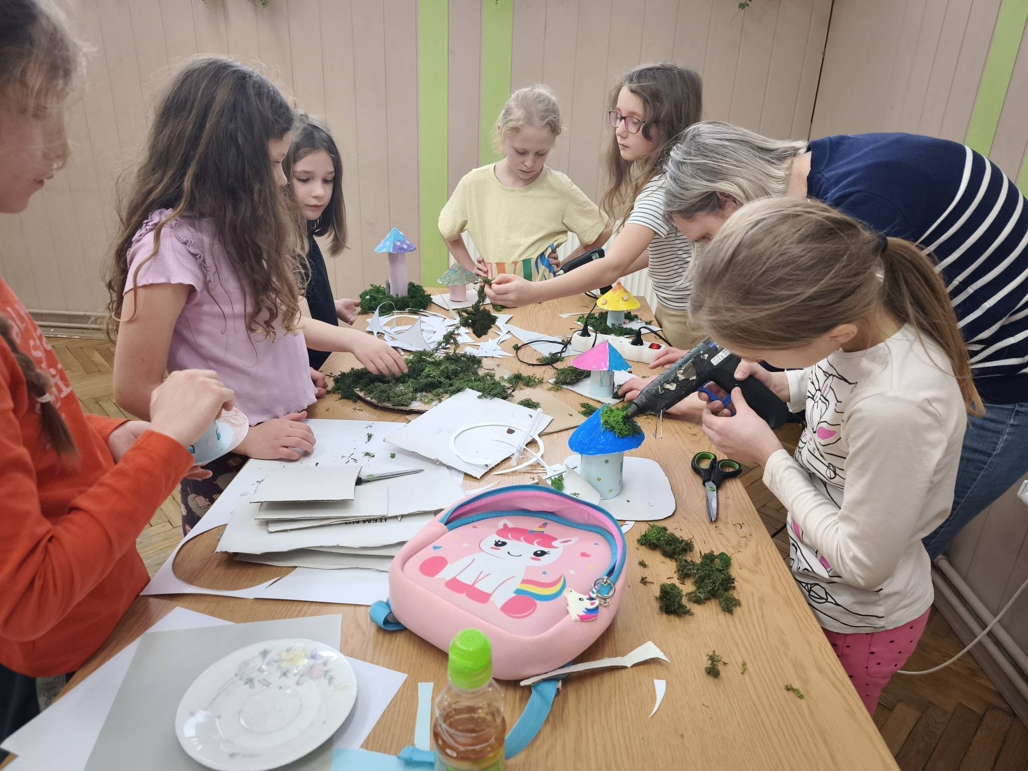 Nie zabrakło także propozycji filmowych i plastycznych. Podczas warsztatów animacji poklatkowej „Ruchome Obrazki”, prowadzonych przez Bartłomieja Misiudę, dzieci wcieliły się w role reżyserów i animatorów, tworząc własne światy z papieru, filcu i plasteliny.